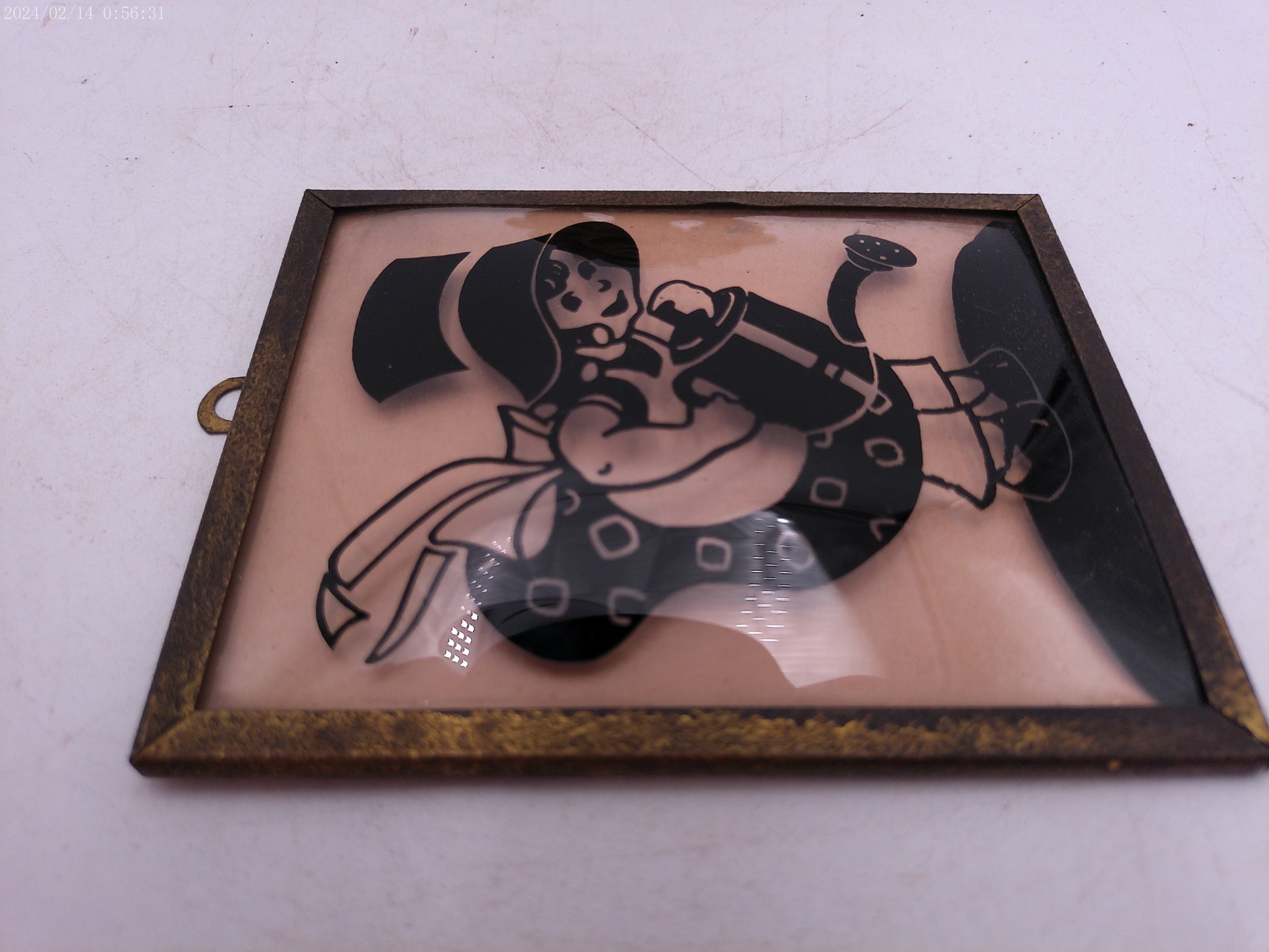 Glass Convex Silhouette Framed Child Watering Plants B512