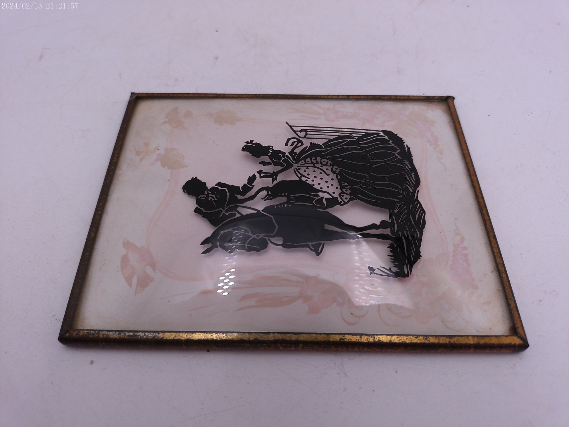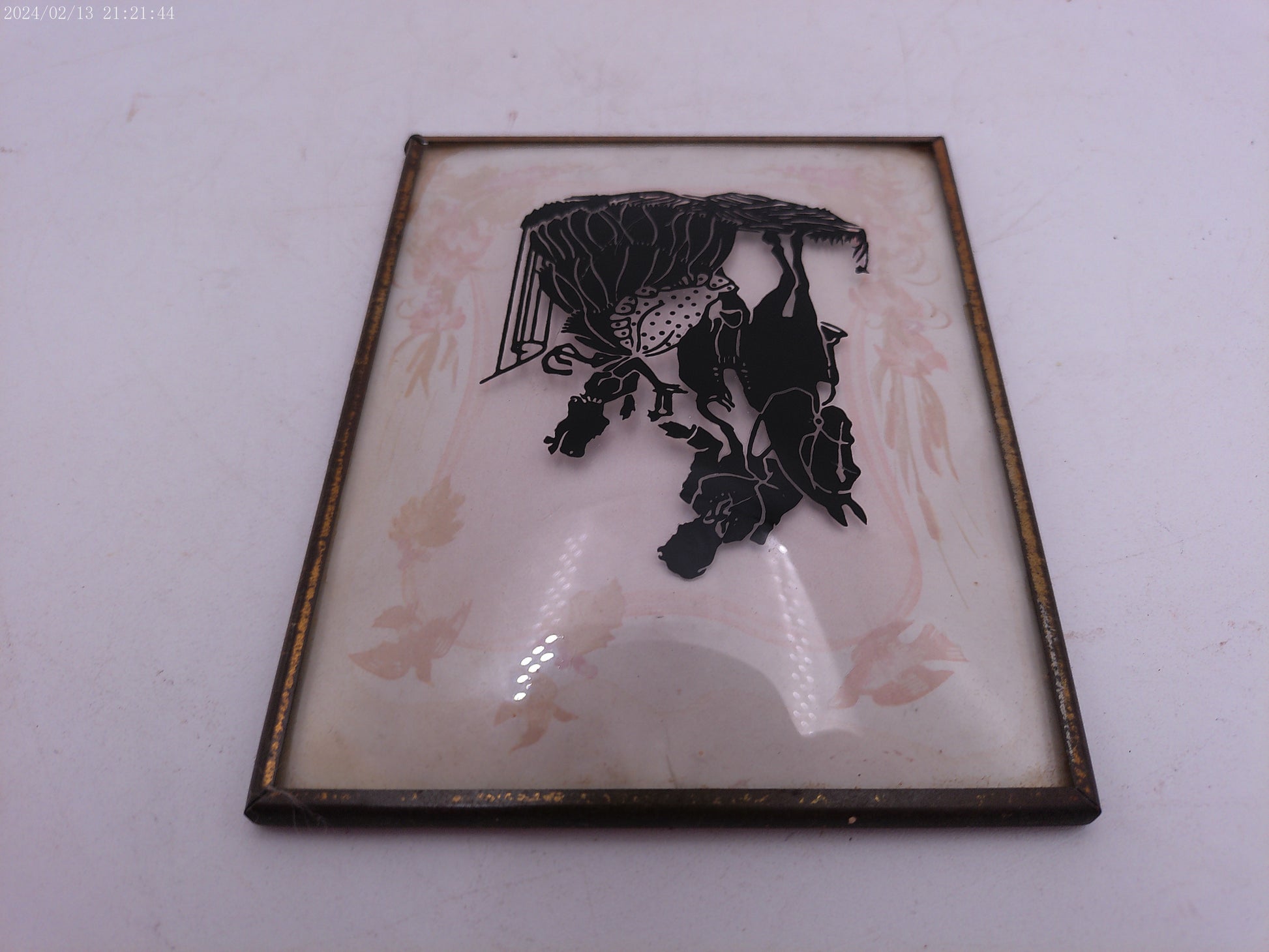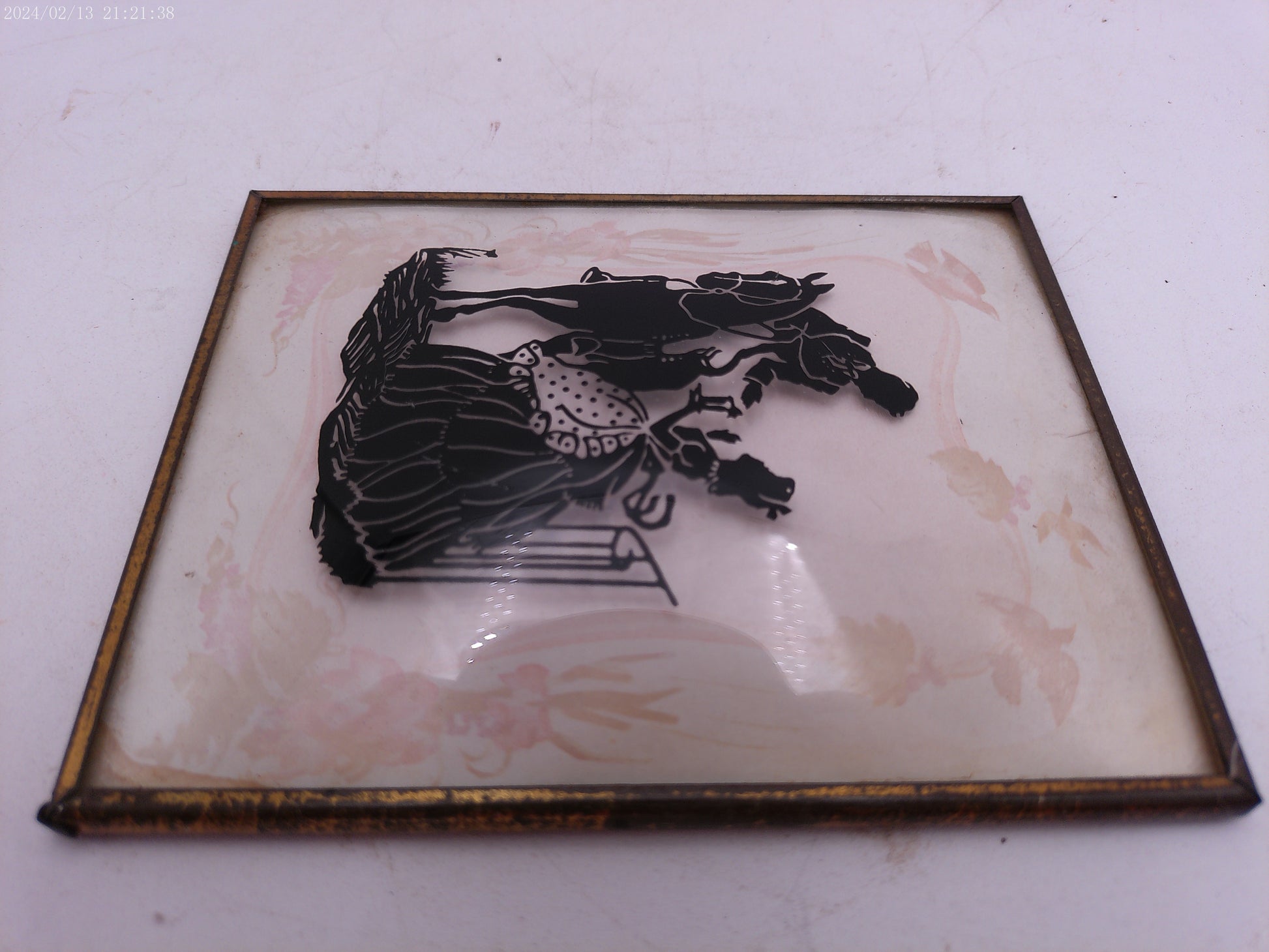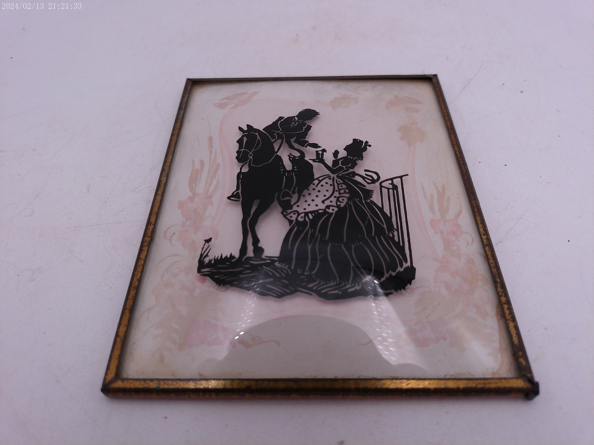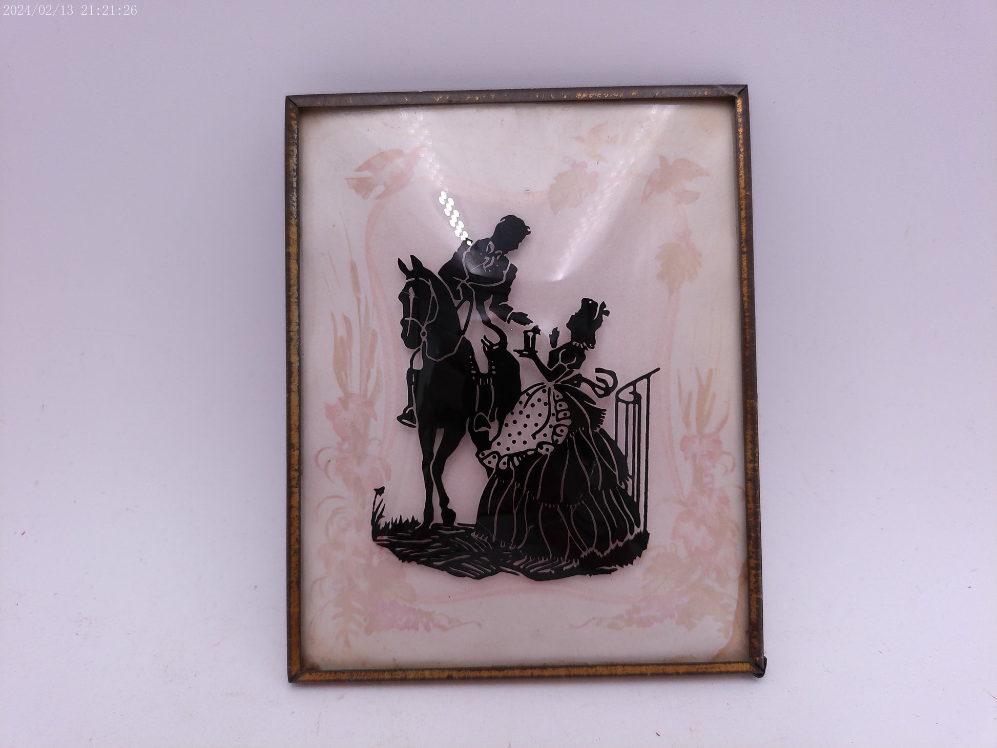 Glass Convex Silhouette Framed Lady meets Man on Horse B213