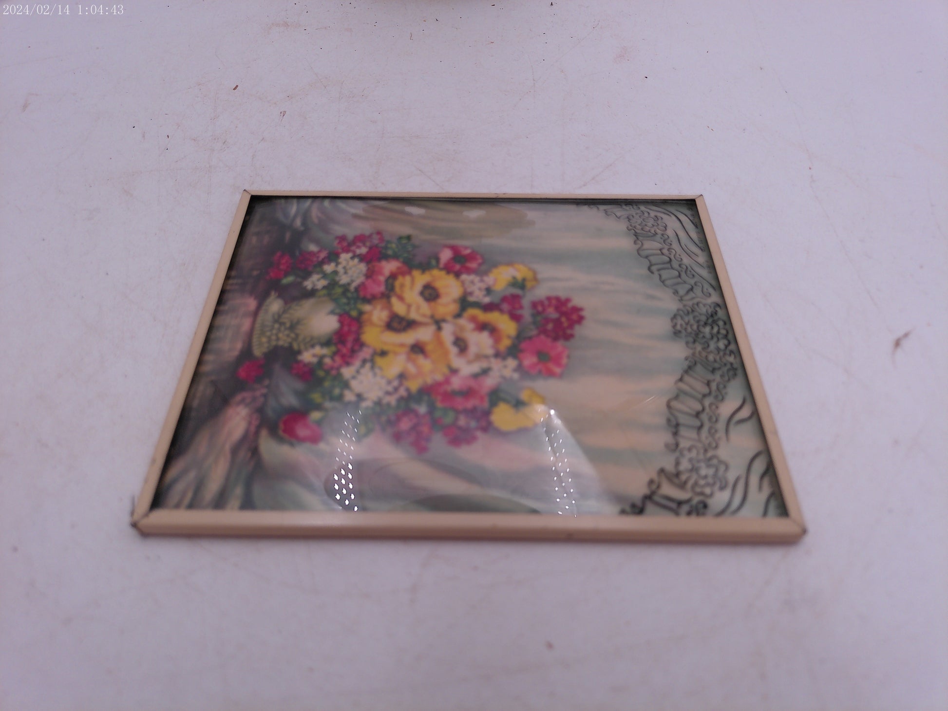 Glass Convex Silhouette Framed Picture Beautiful Basket of Flowers B518