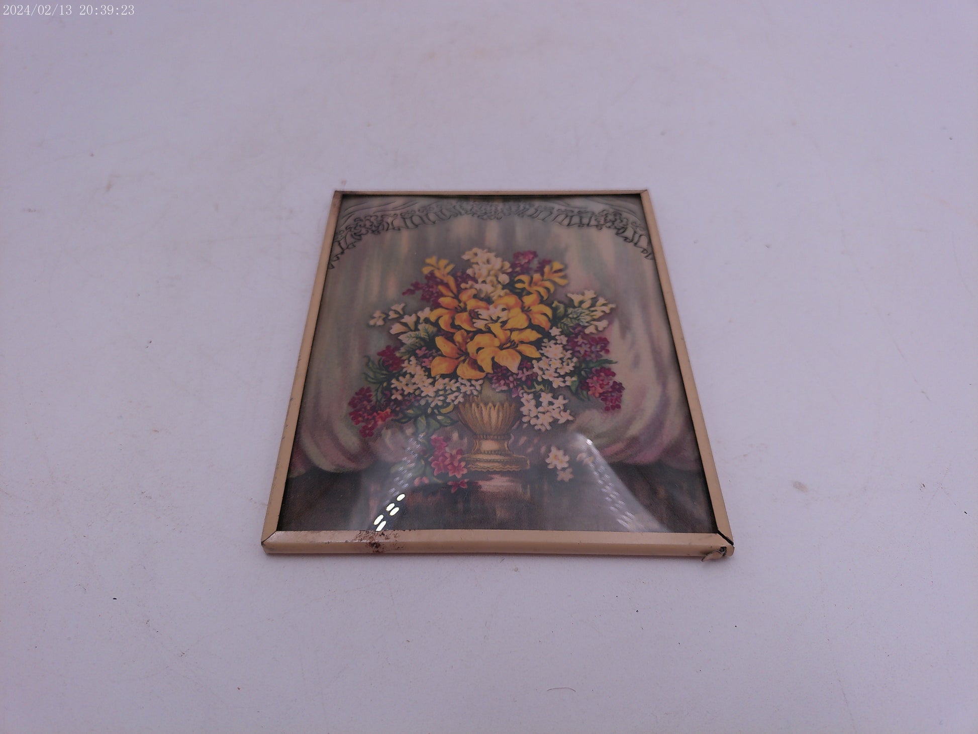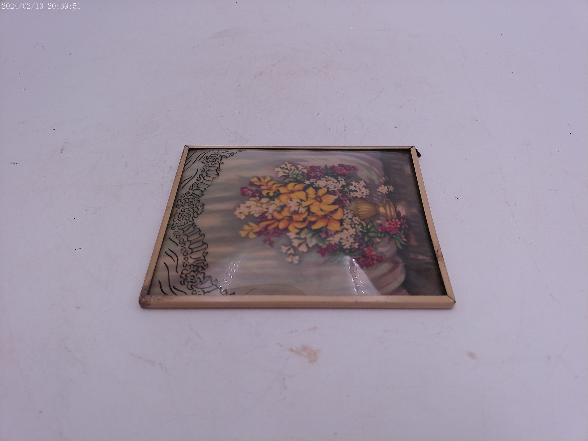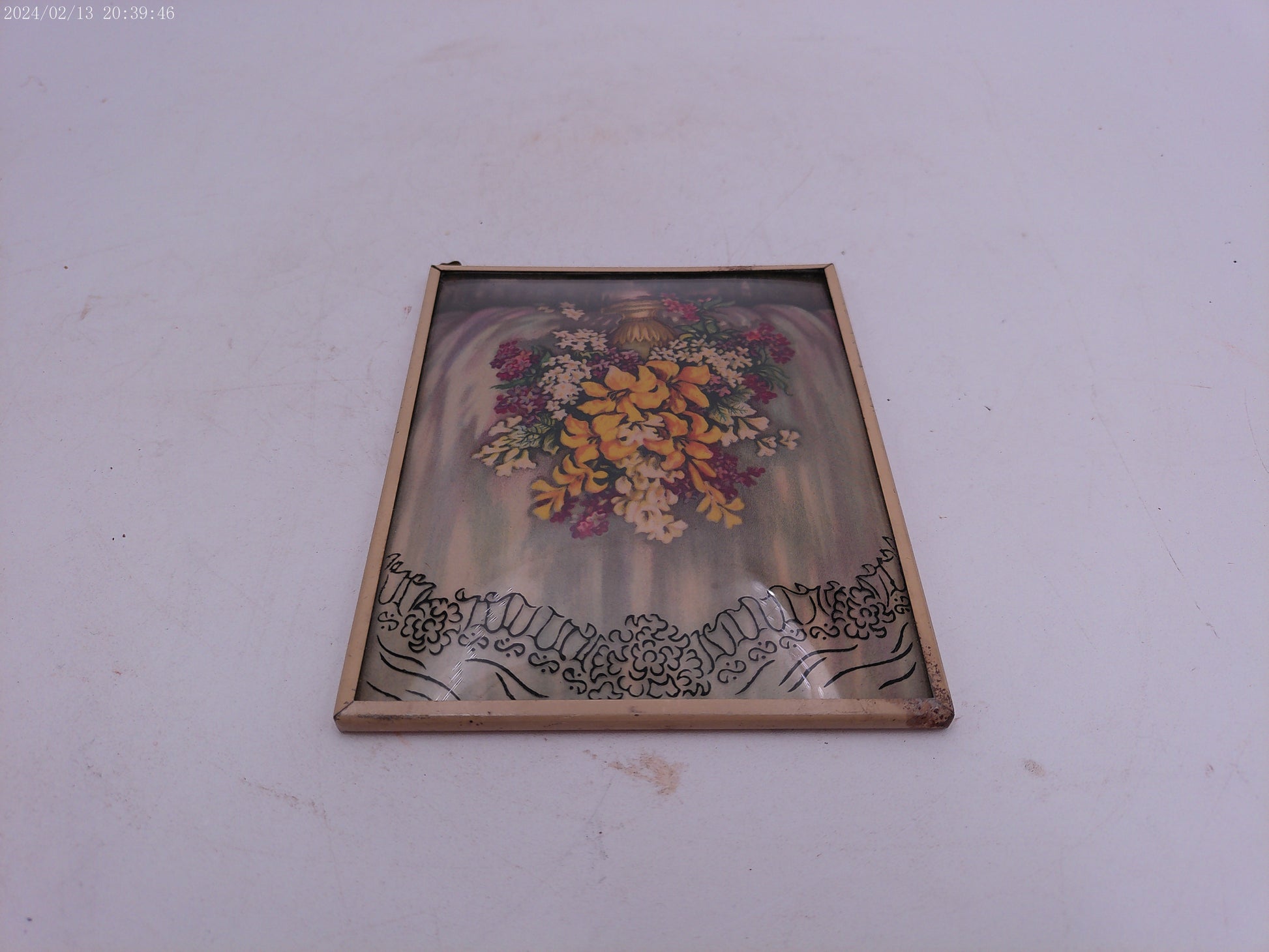 Glass Convex Silhouette Framed Picture Beautiful Flowers in vase Metal Frame B21