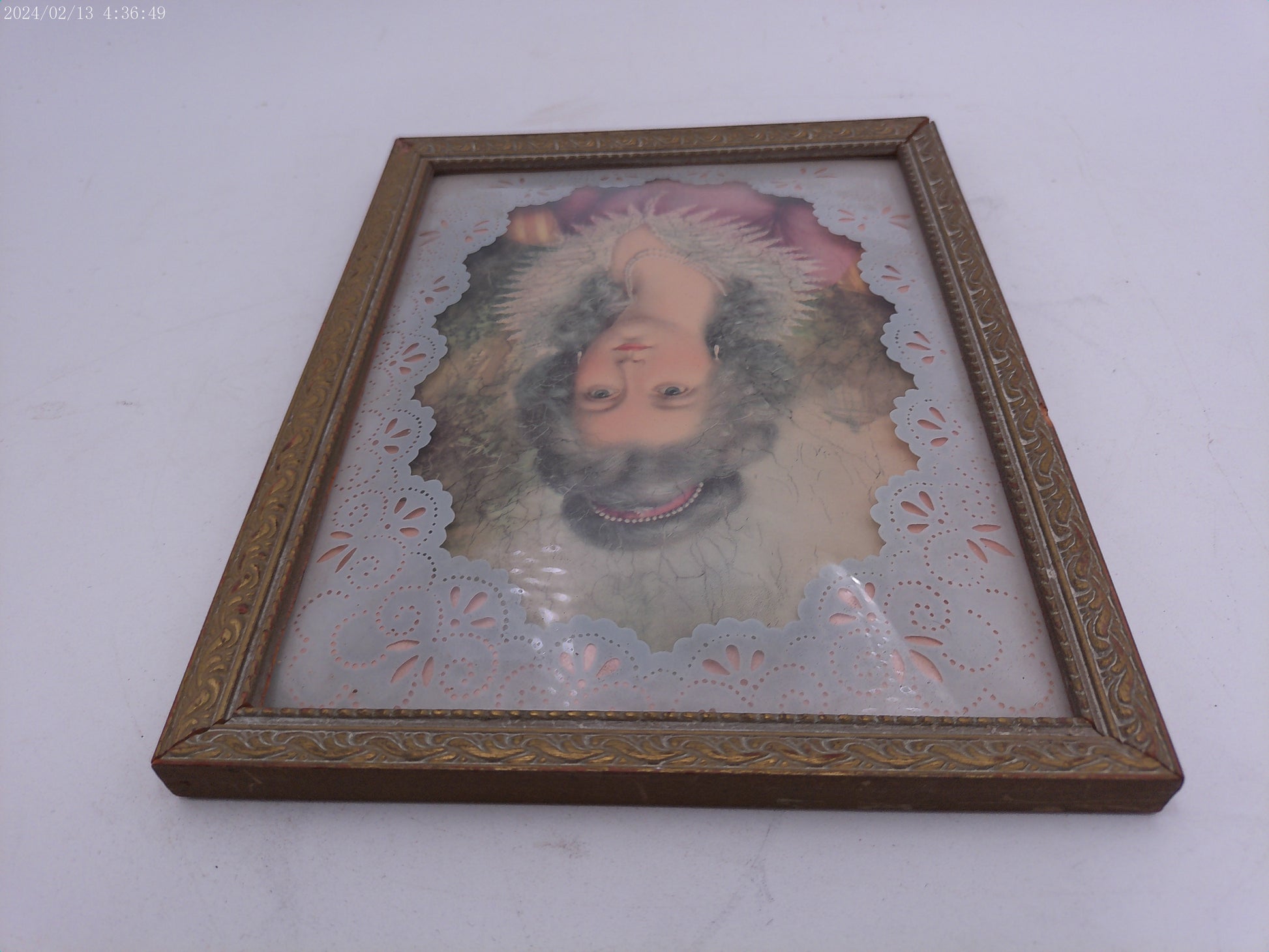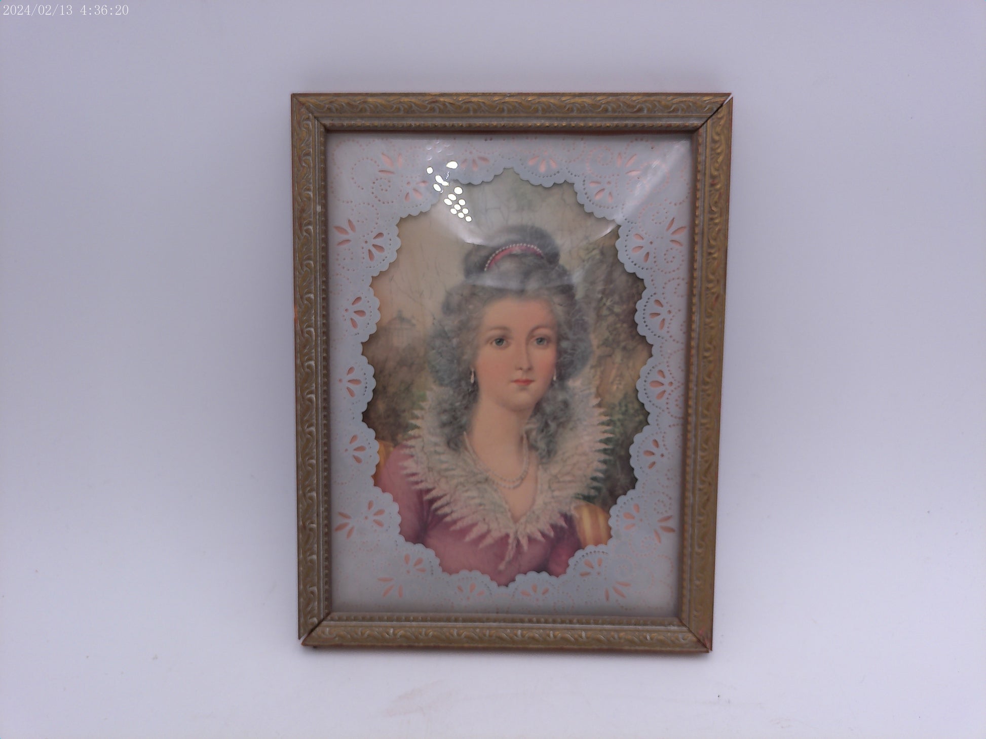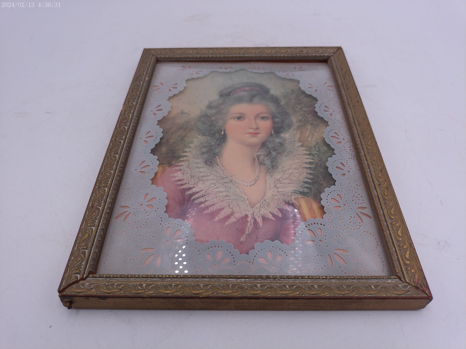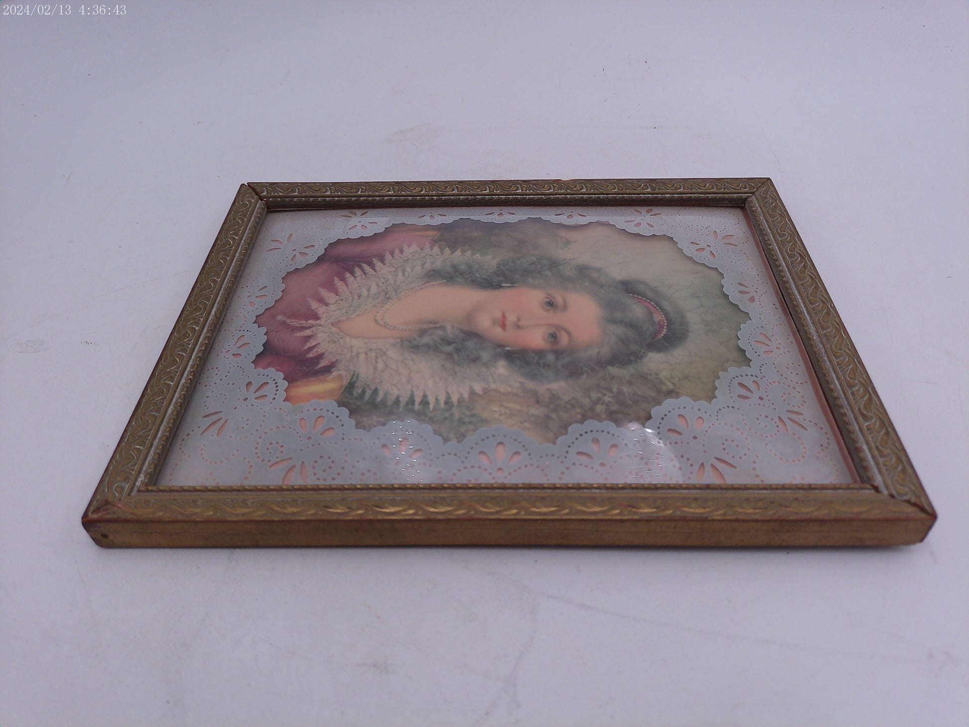 Glass Convex Silhouette Framed Picture Beautiful Lady Vintage B18