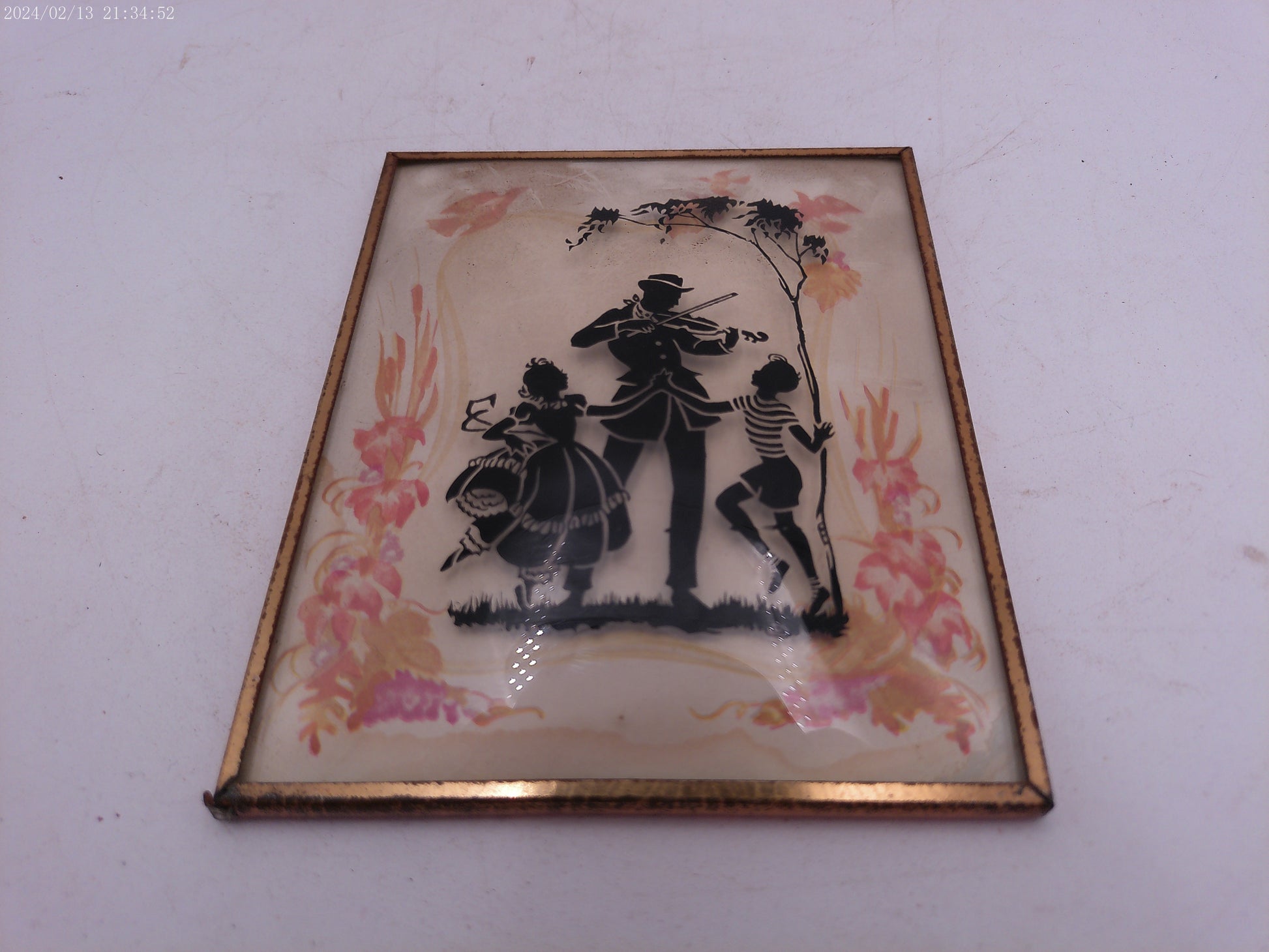 Glass Convex Silhouette Framed Picture Children Dancing B222