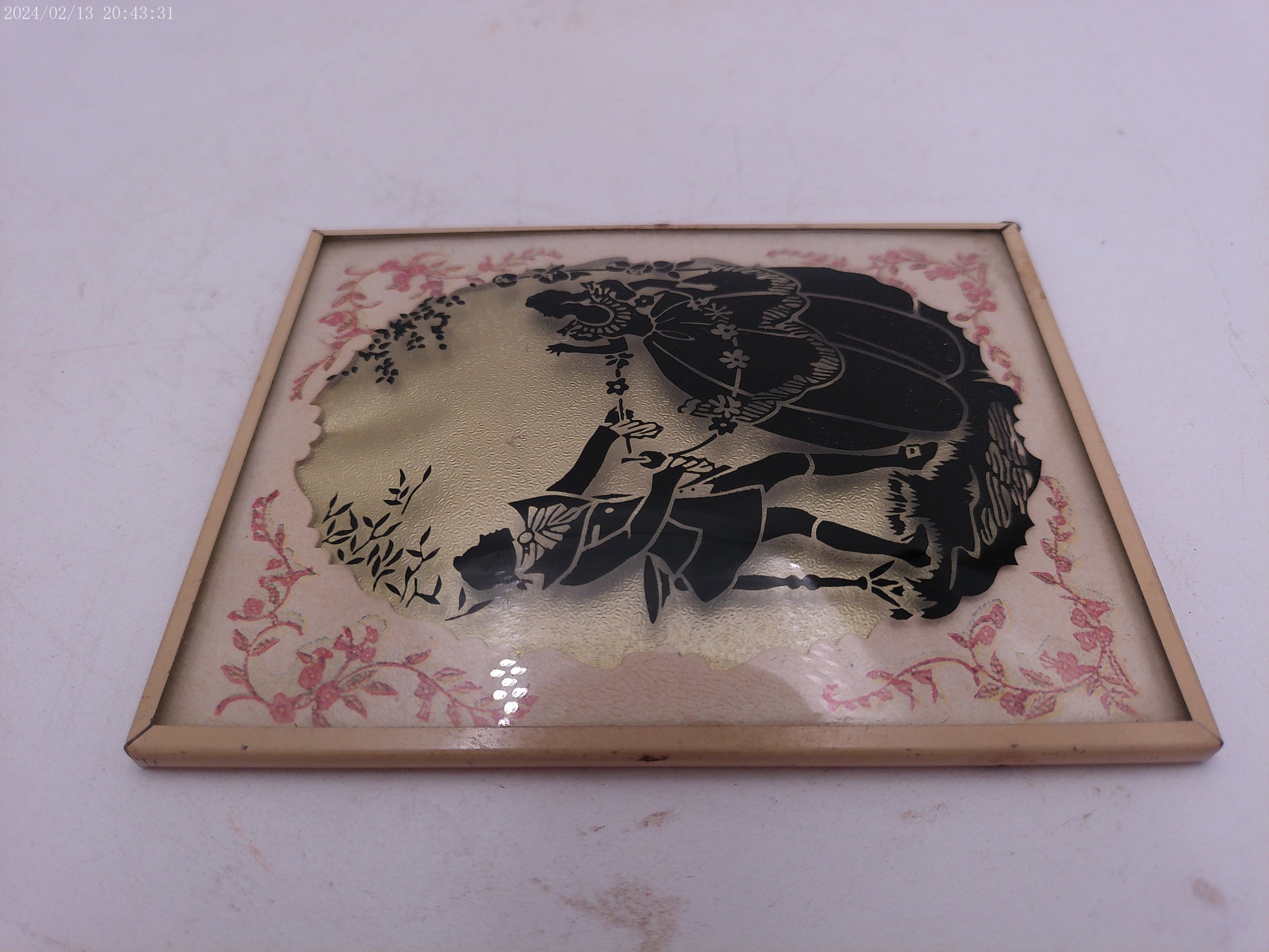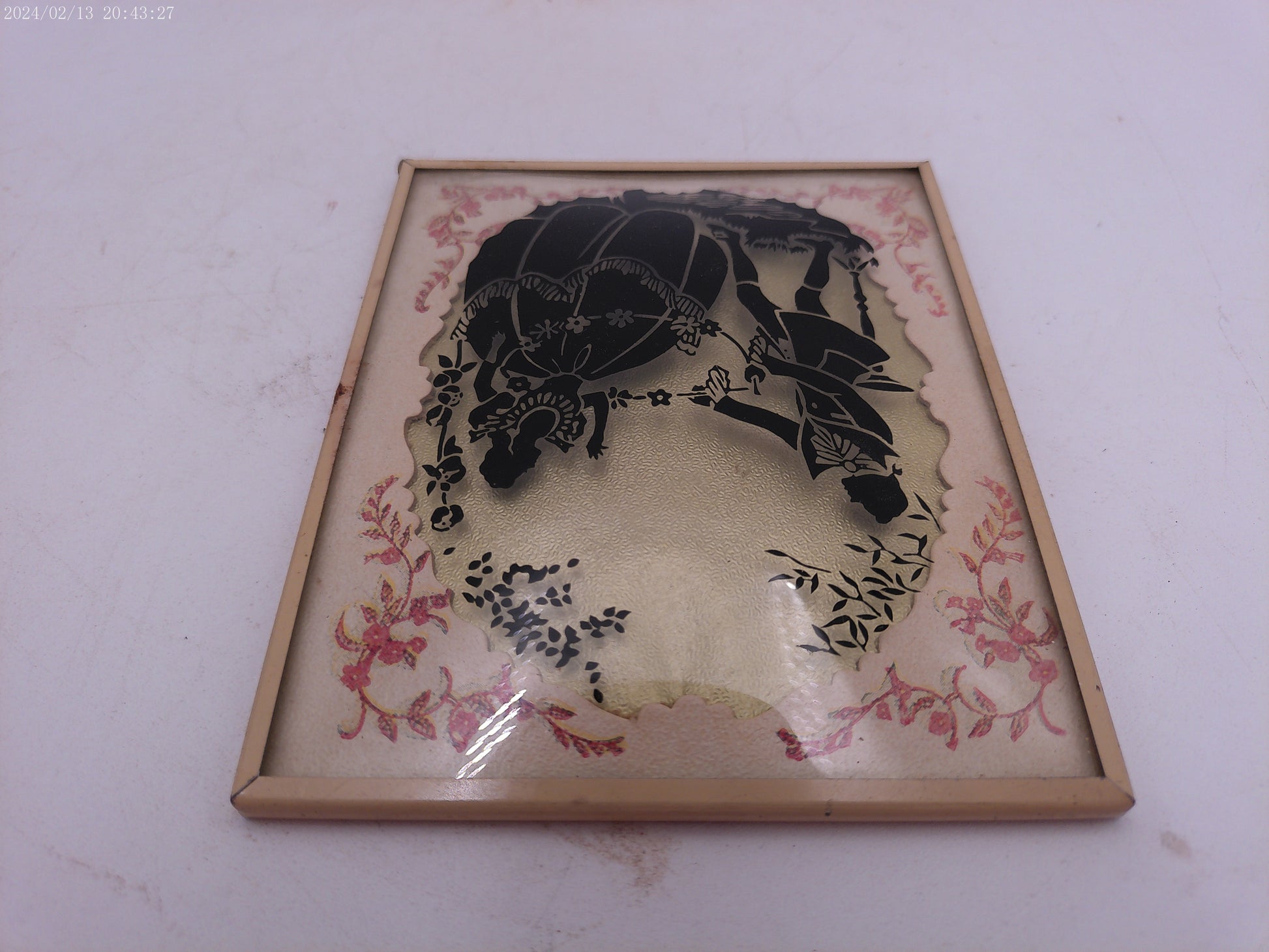 Glass Convex Silhouette Framed Picture Couple Dancing B25