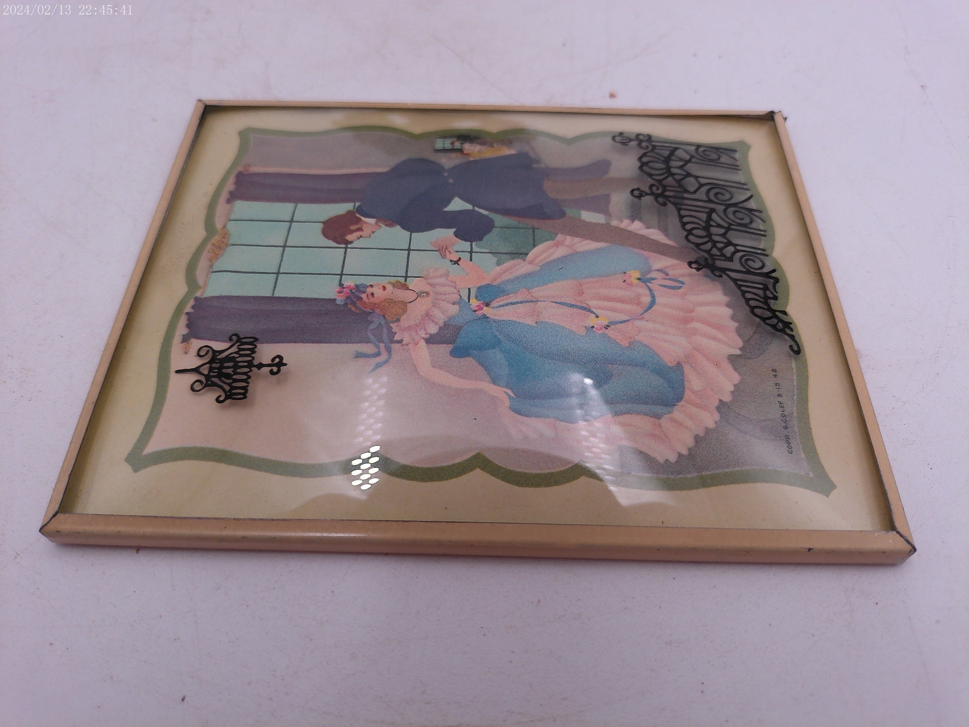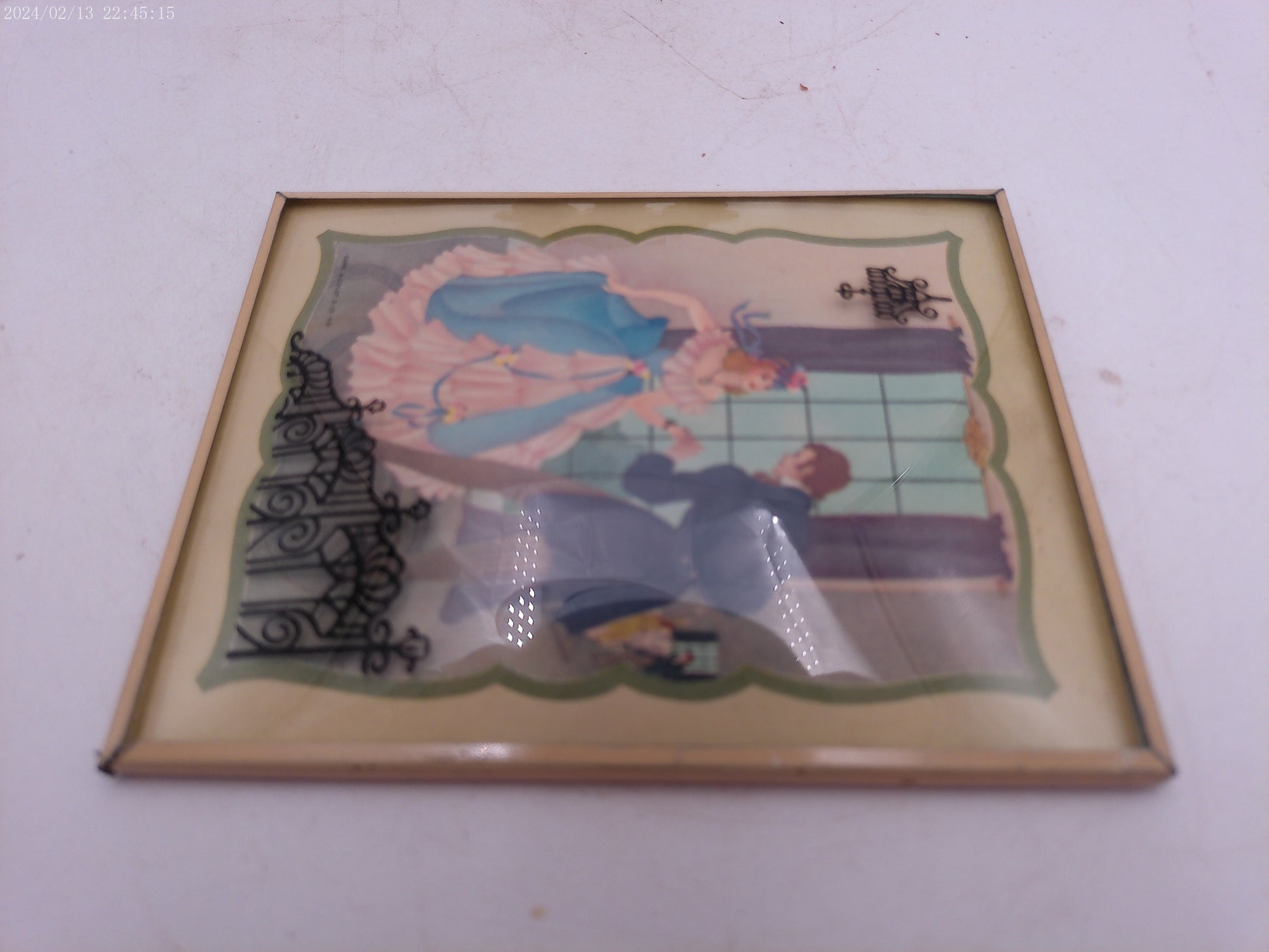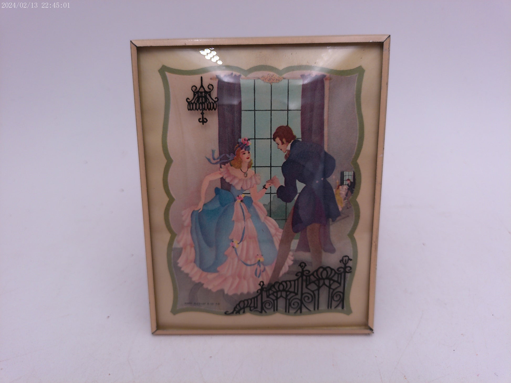 Glass Convex Silhouette Framed Picture Couple Holding Hands B44