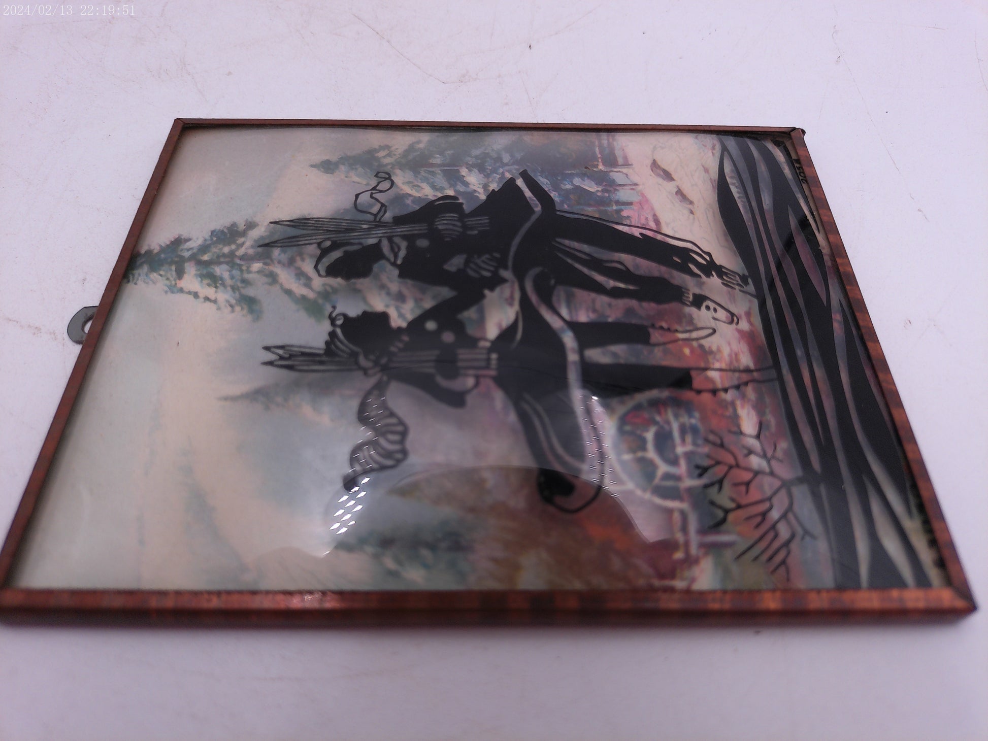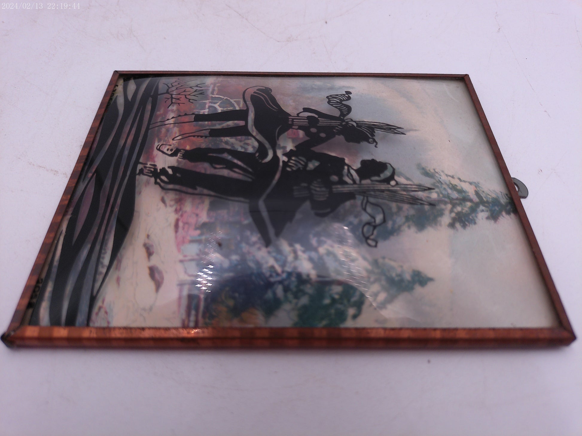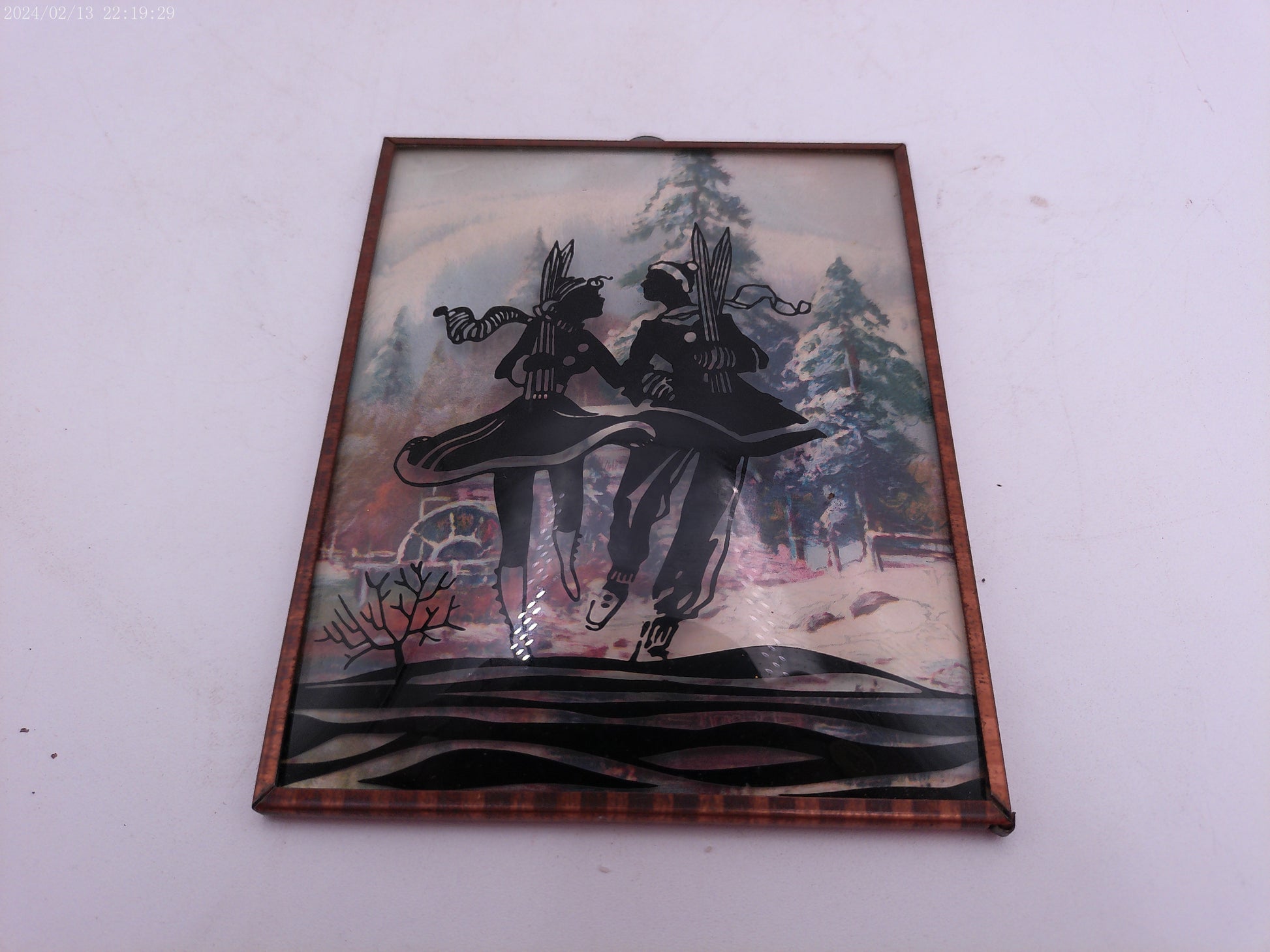 Glass Convex Silhouette Framed Picture Couple ice skating B316