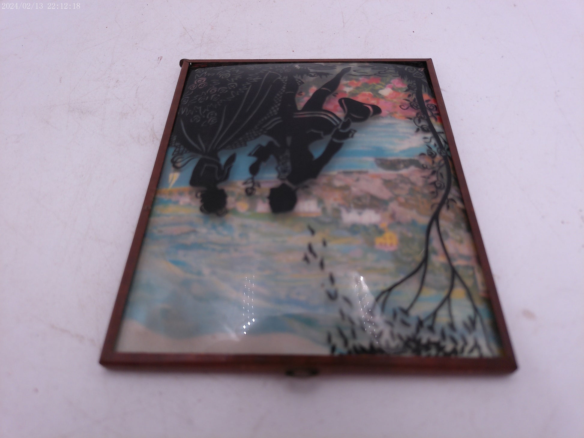 Glass Convex Silhouette Framed Picture Couple With a Flower B310