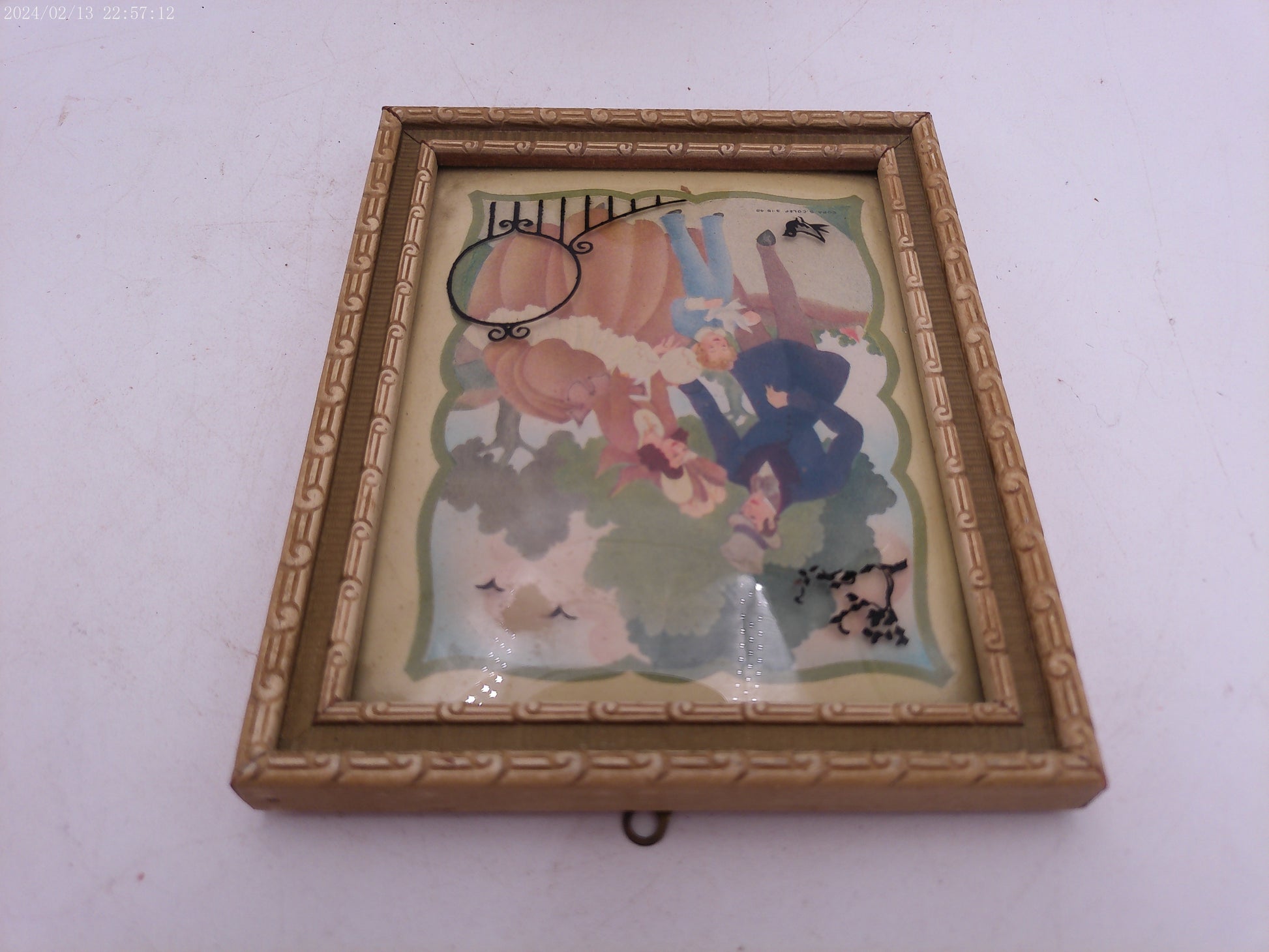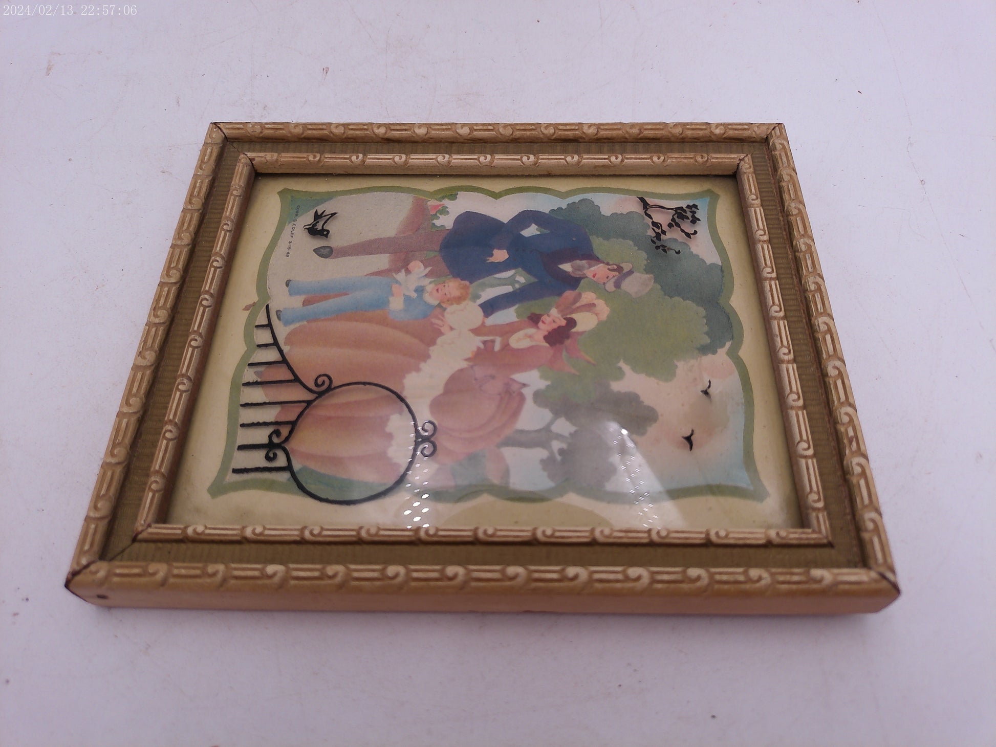 Glass Convex Silhouette Framed Picture Family Feeding Birds B412