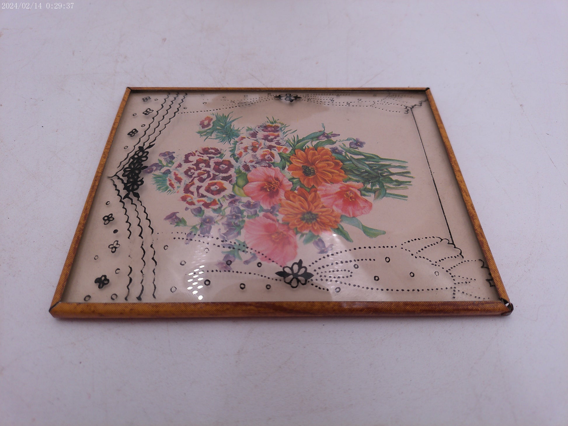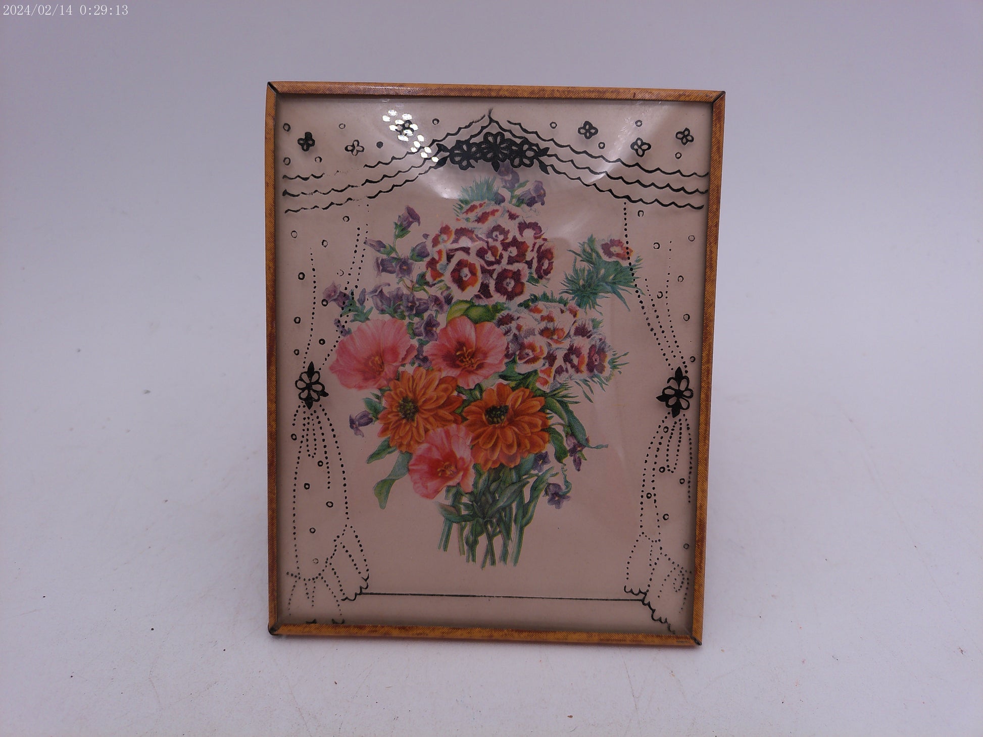 Glass Convex Silhouette Framed Picture Flowers in Window Frame B413