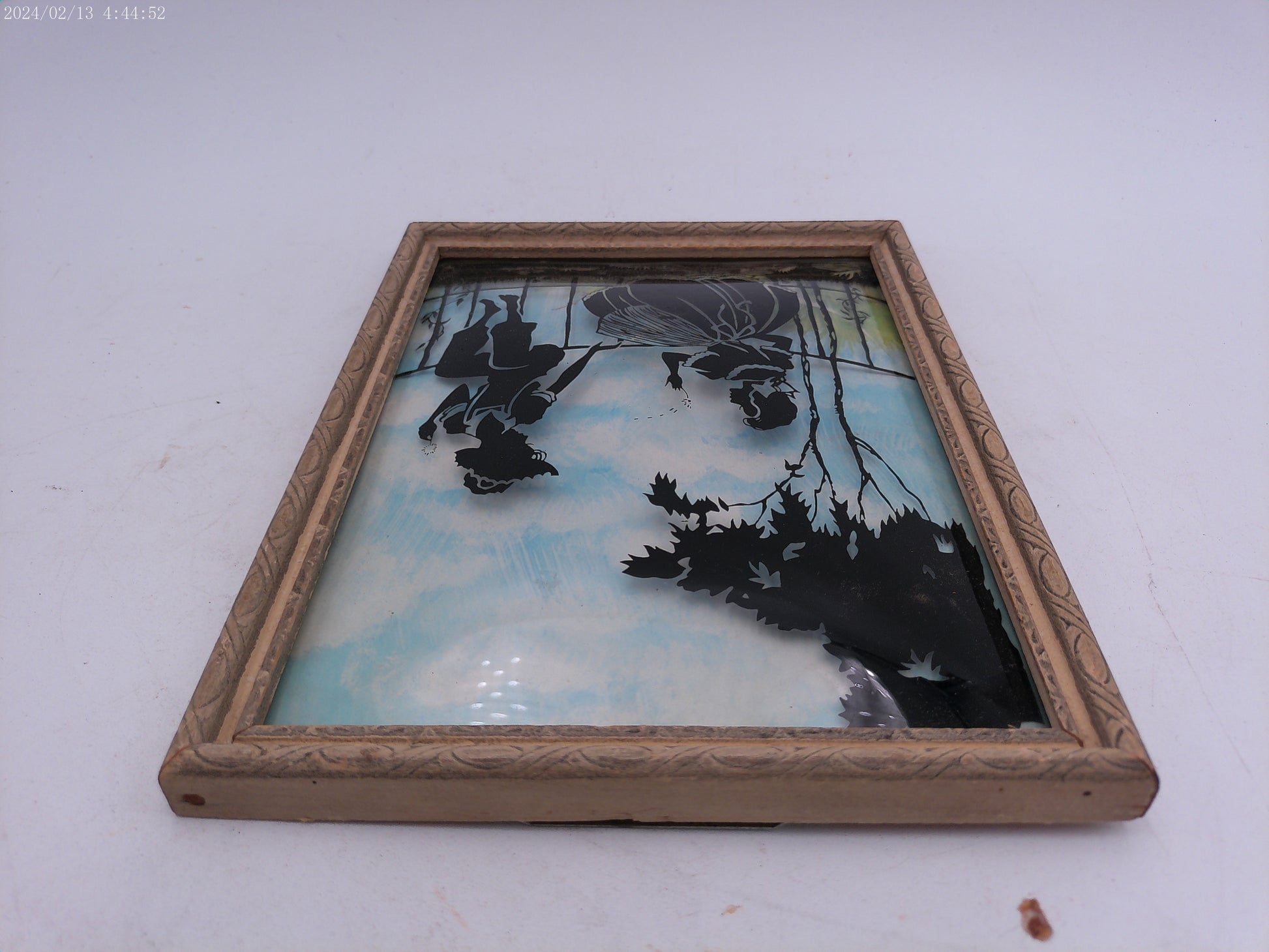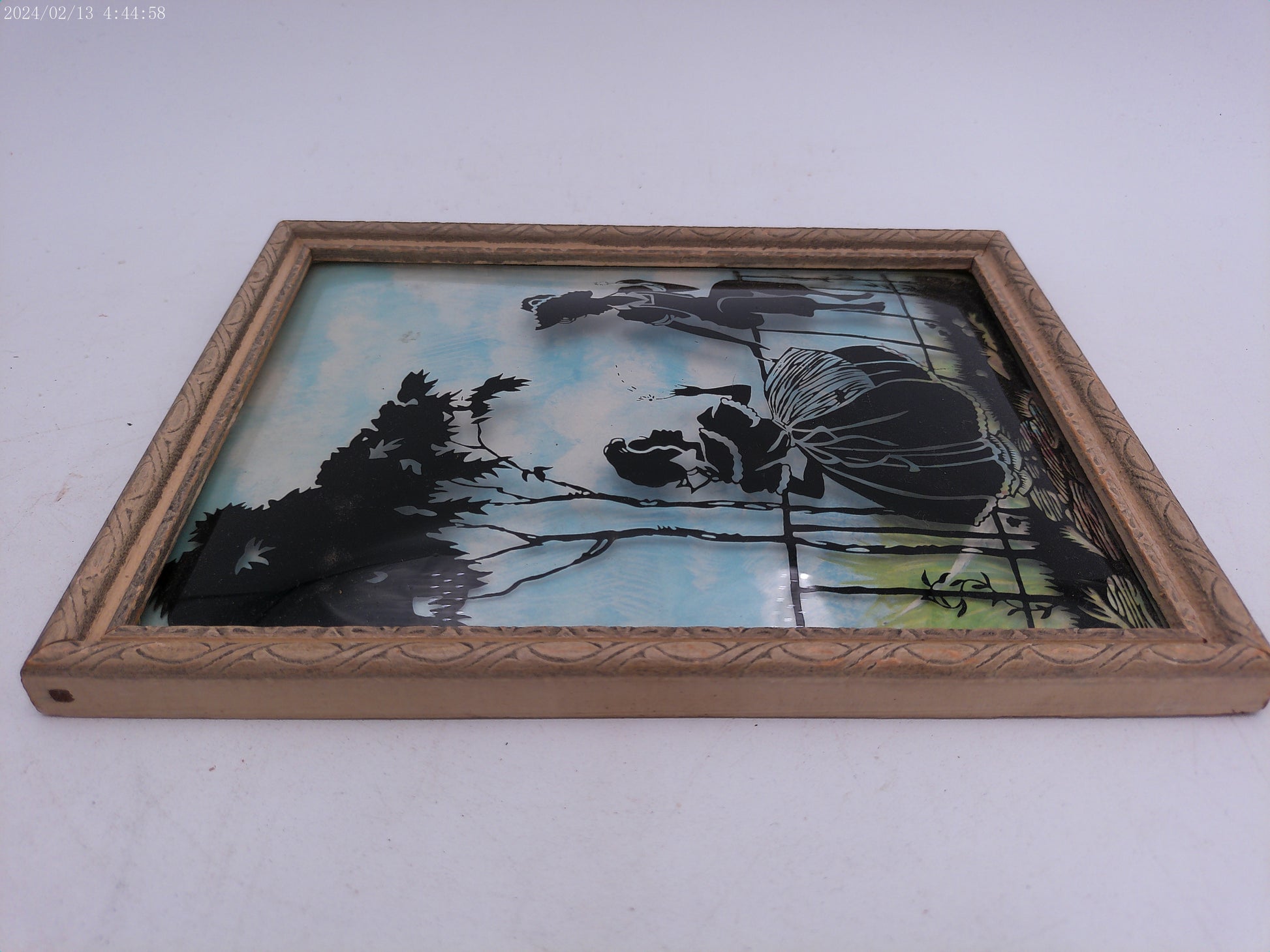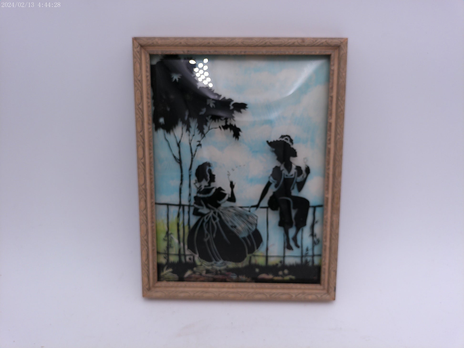 Glass Convex Silhouette Framed Picture Friends by fence wood Frame B115