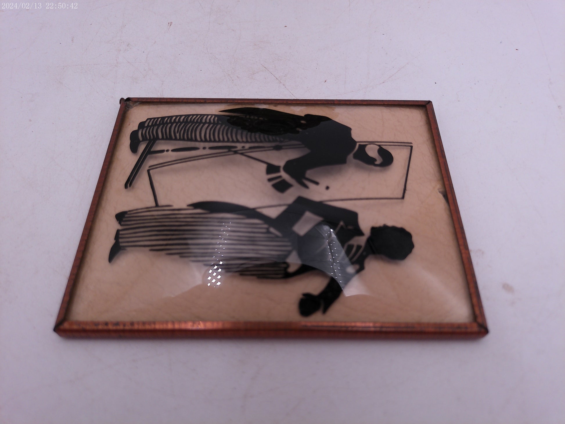 Glass Convex Silhouette Framed Picture Looking into Mirror B49