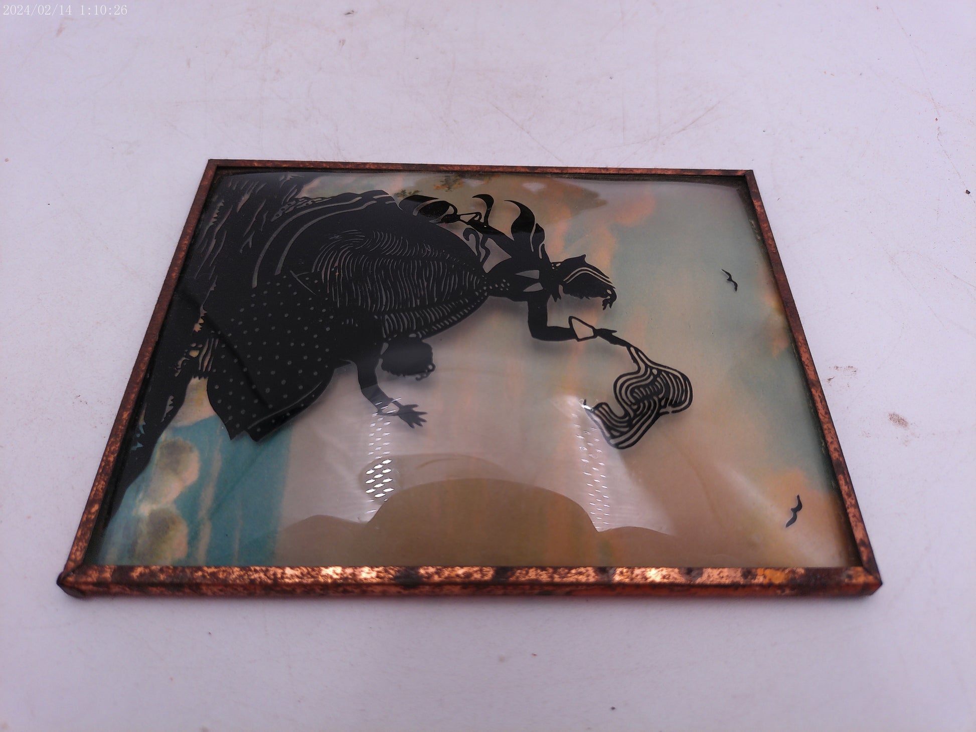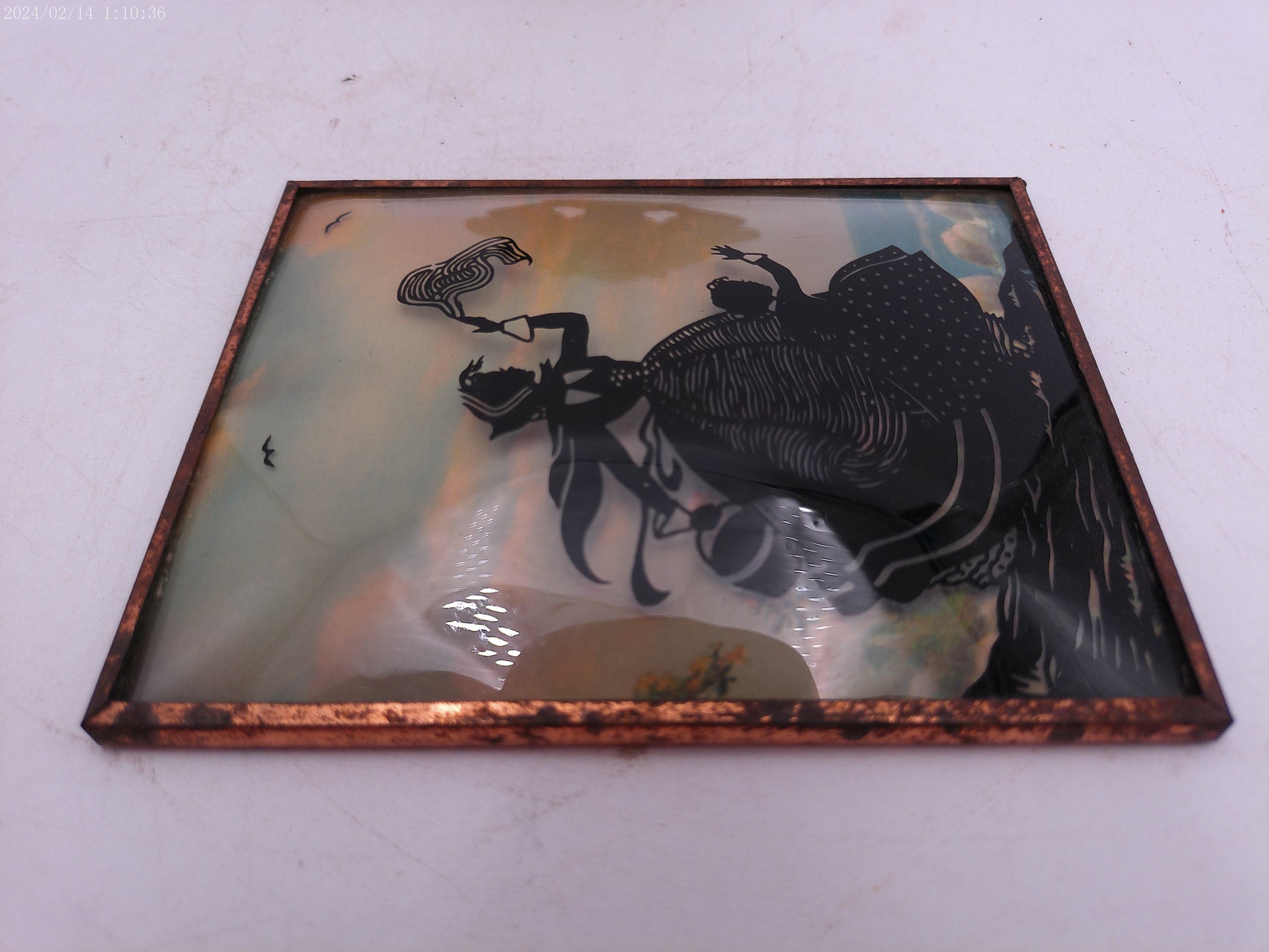 Glass Convex Silhouette Framed Picture Mother and Daughter Enjoying Breeze B521