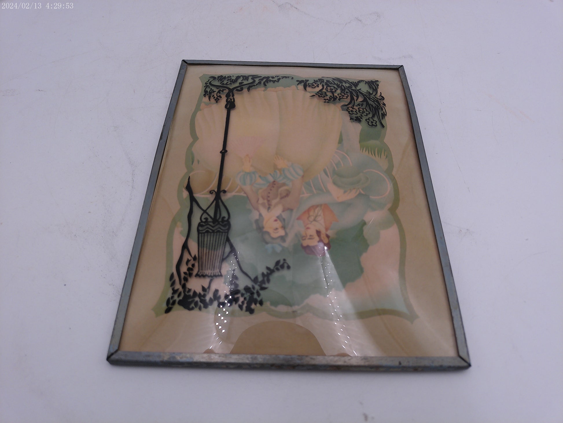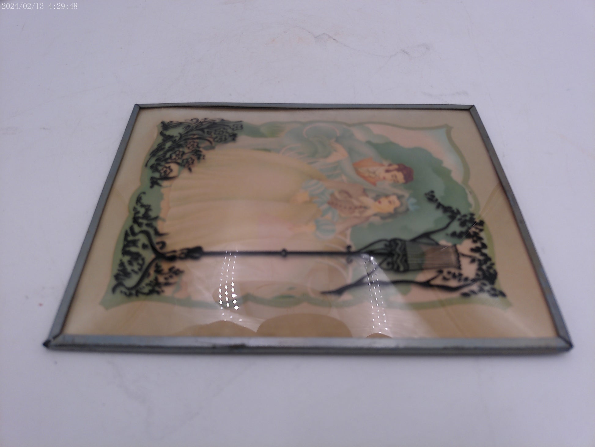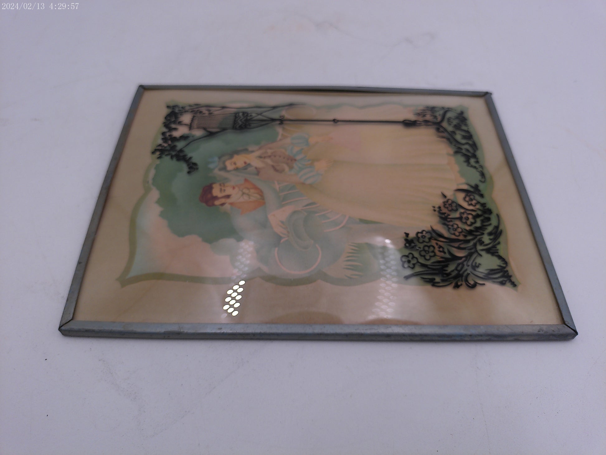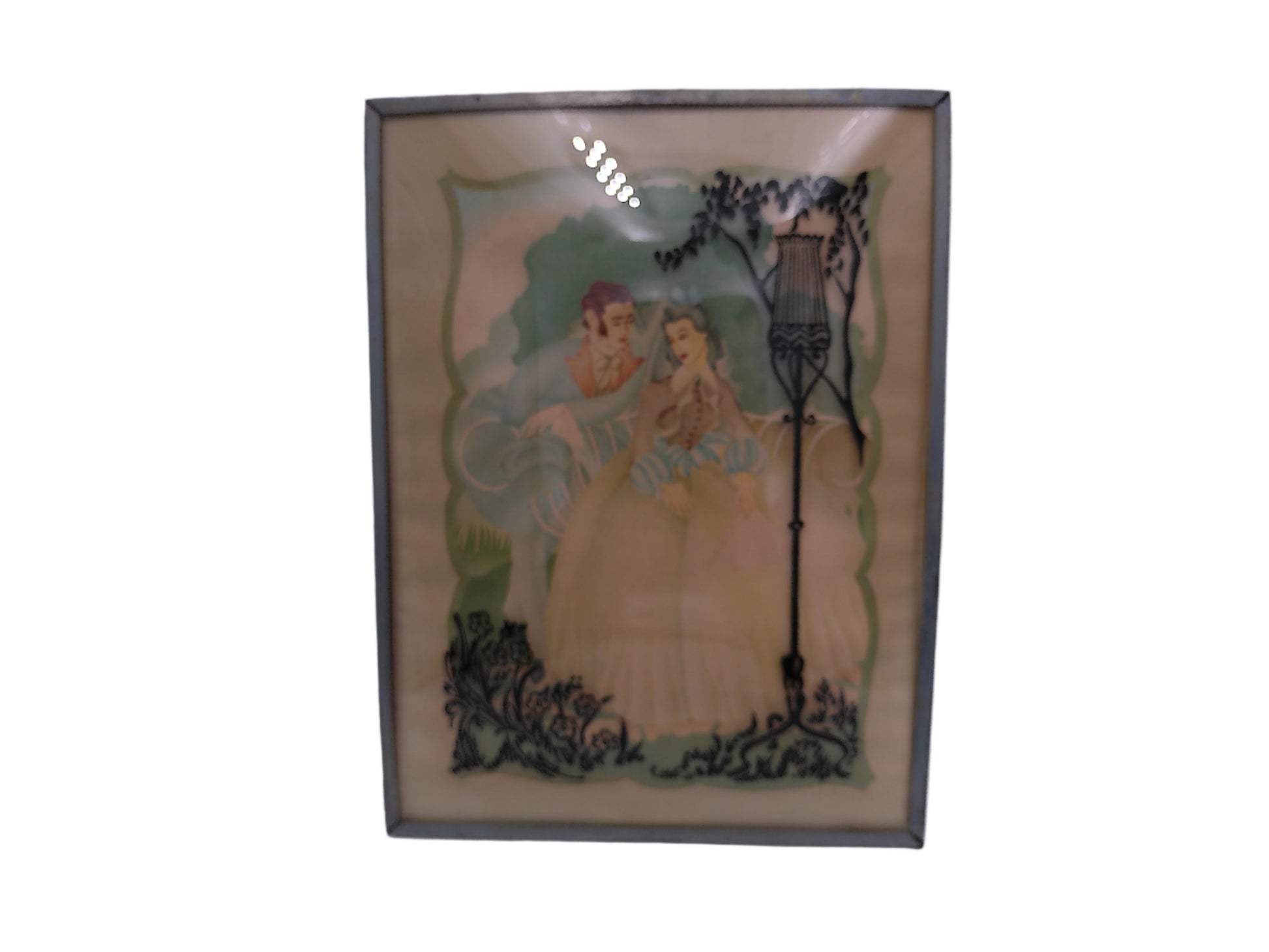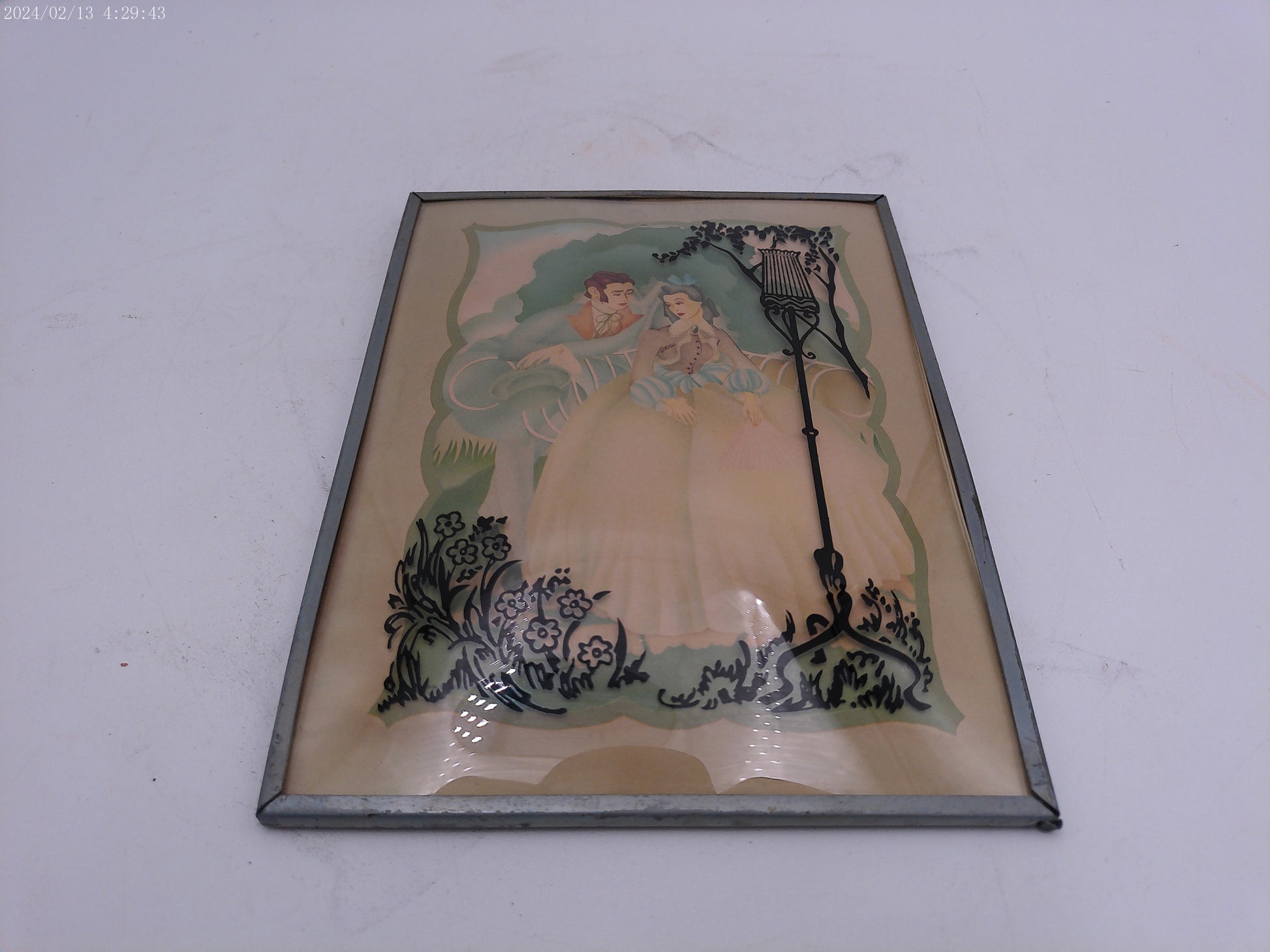 Glass Convex Silhouette Framed Picture Romantic Couple Holding Hands Vintage B13
