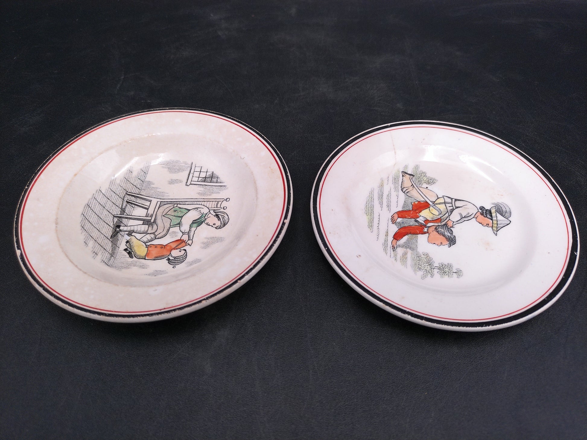 Set of 2 Vintage Plates with Children Playing