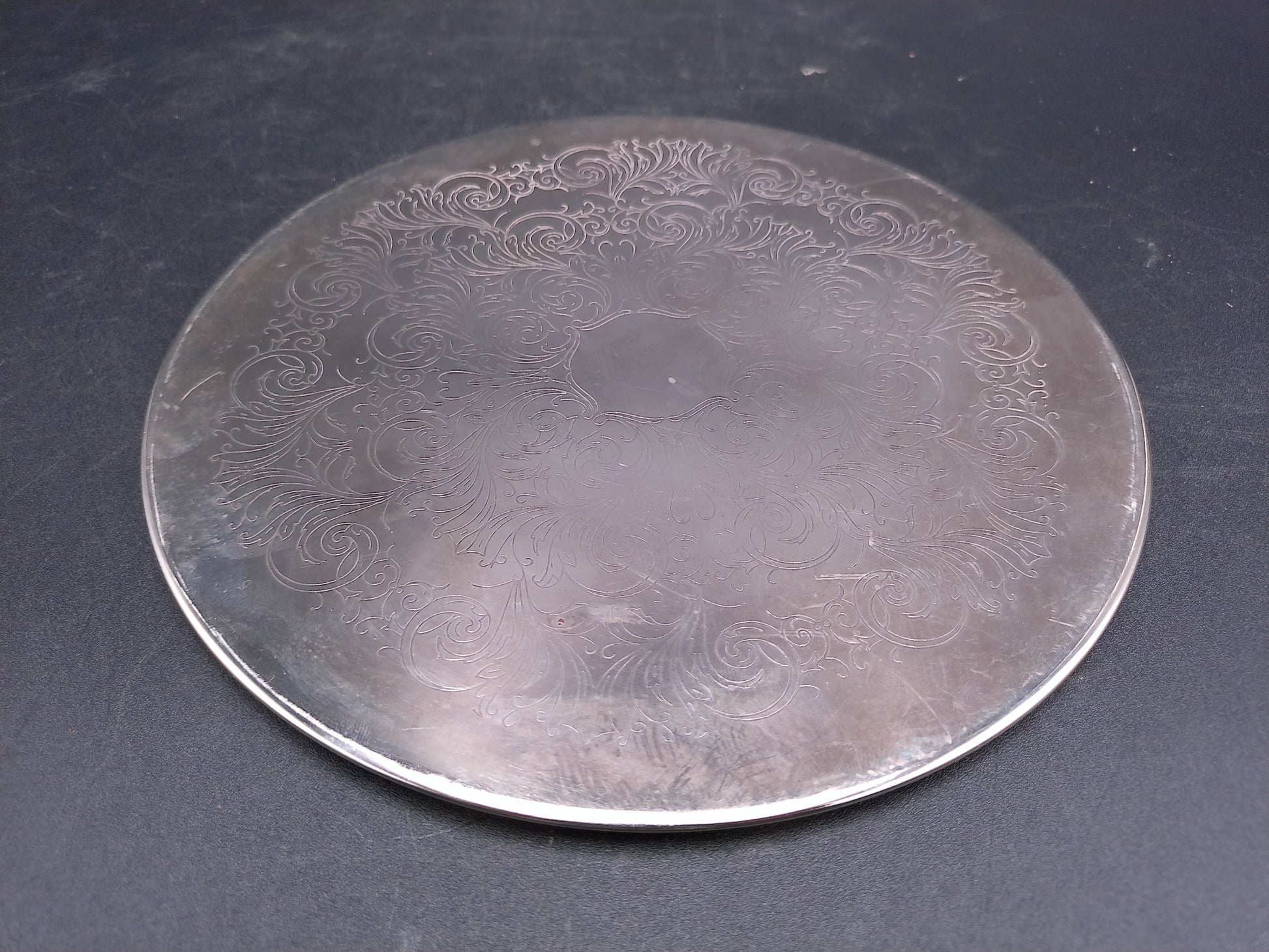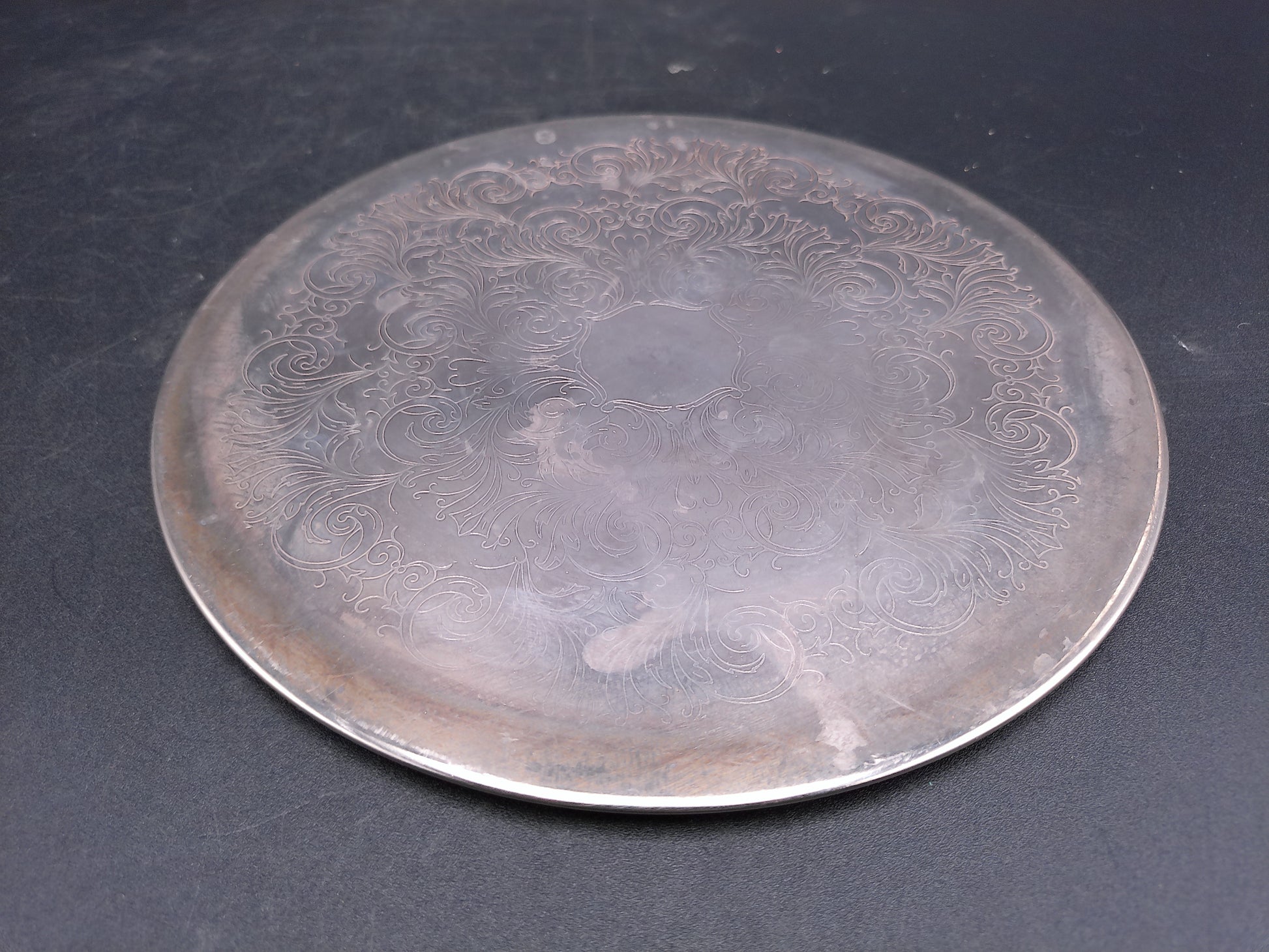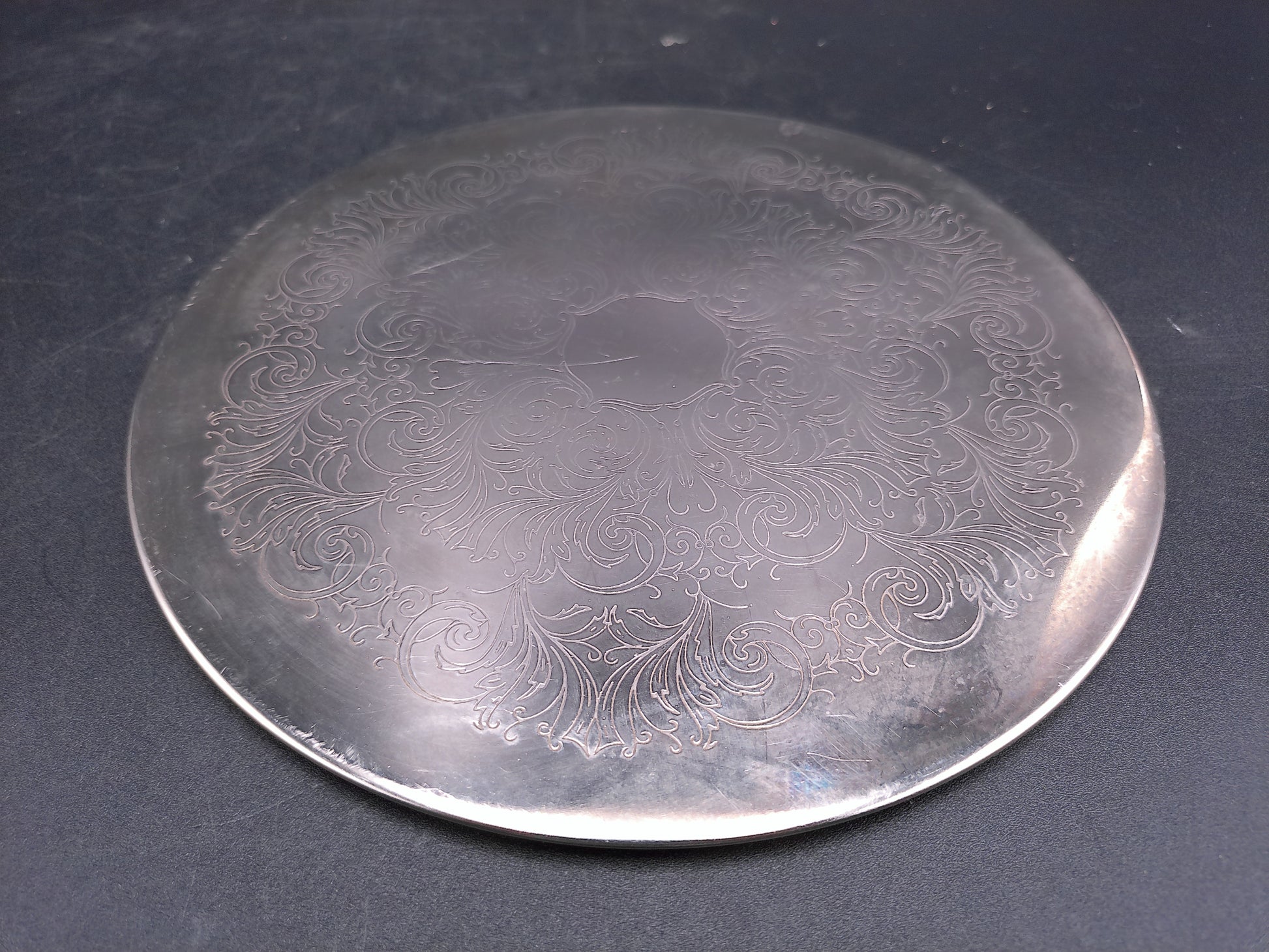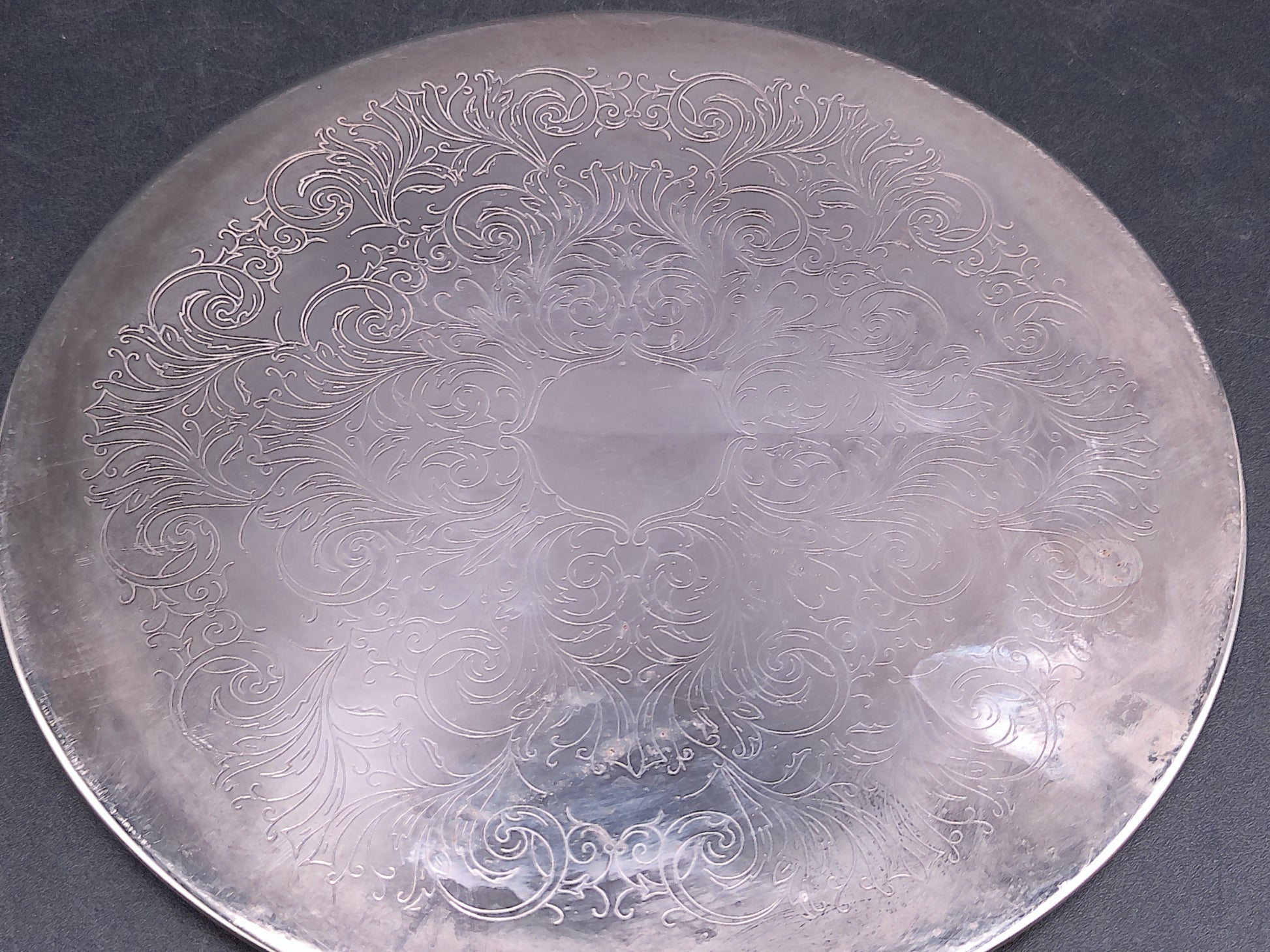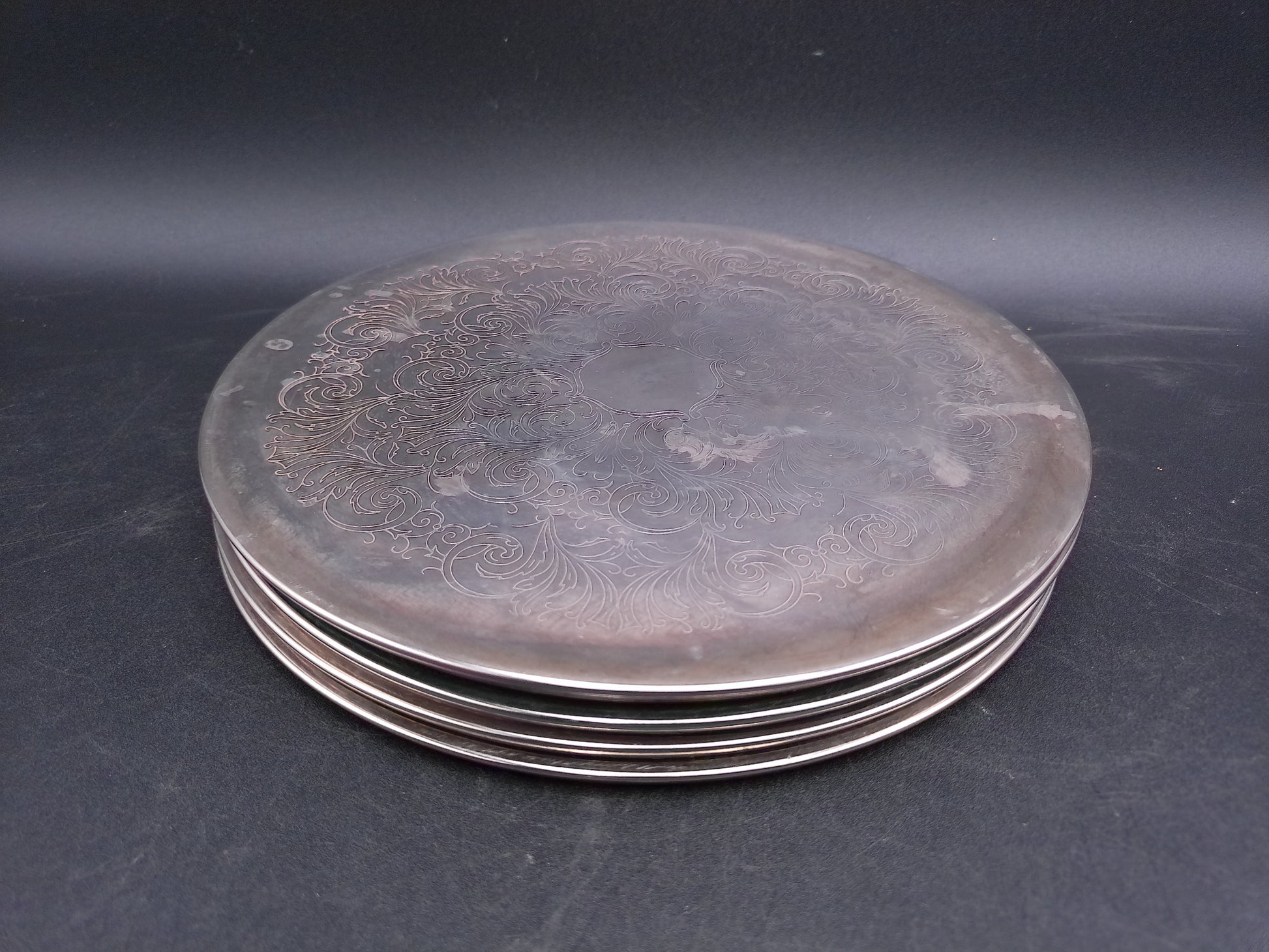 Silver Plated Vintage Serving Plates Place Mats Ornate Design Green Felt Backing