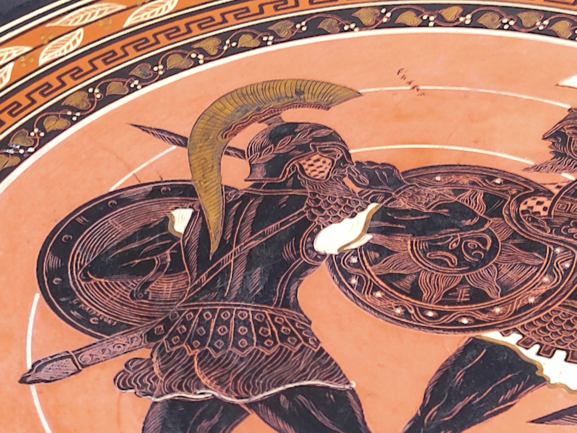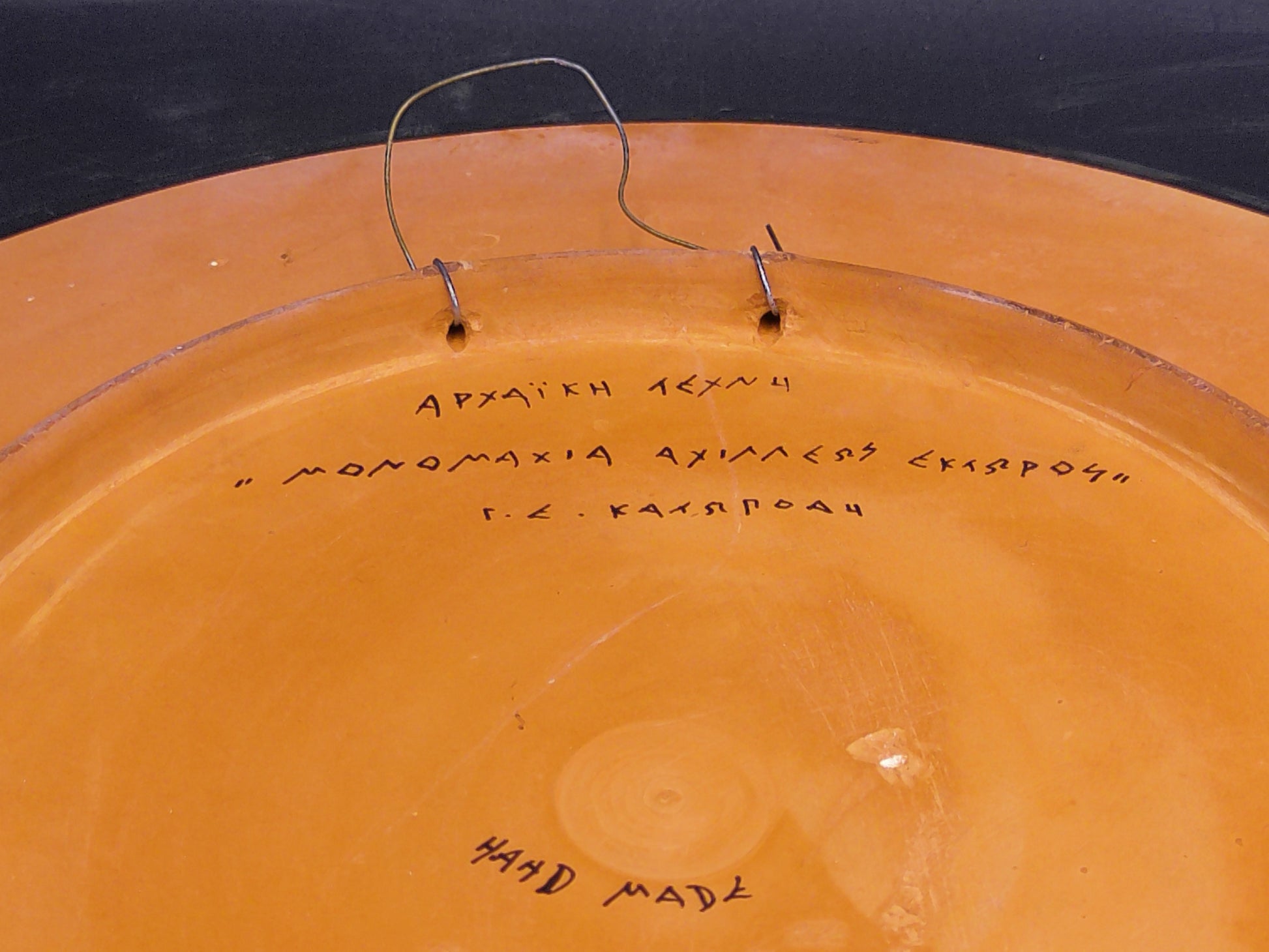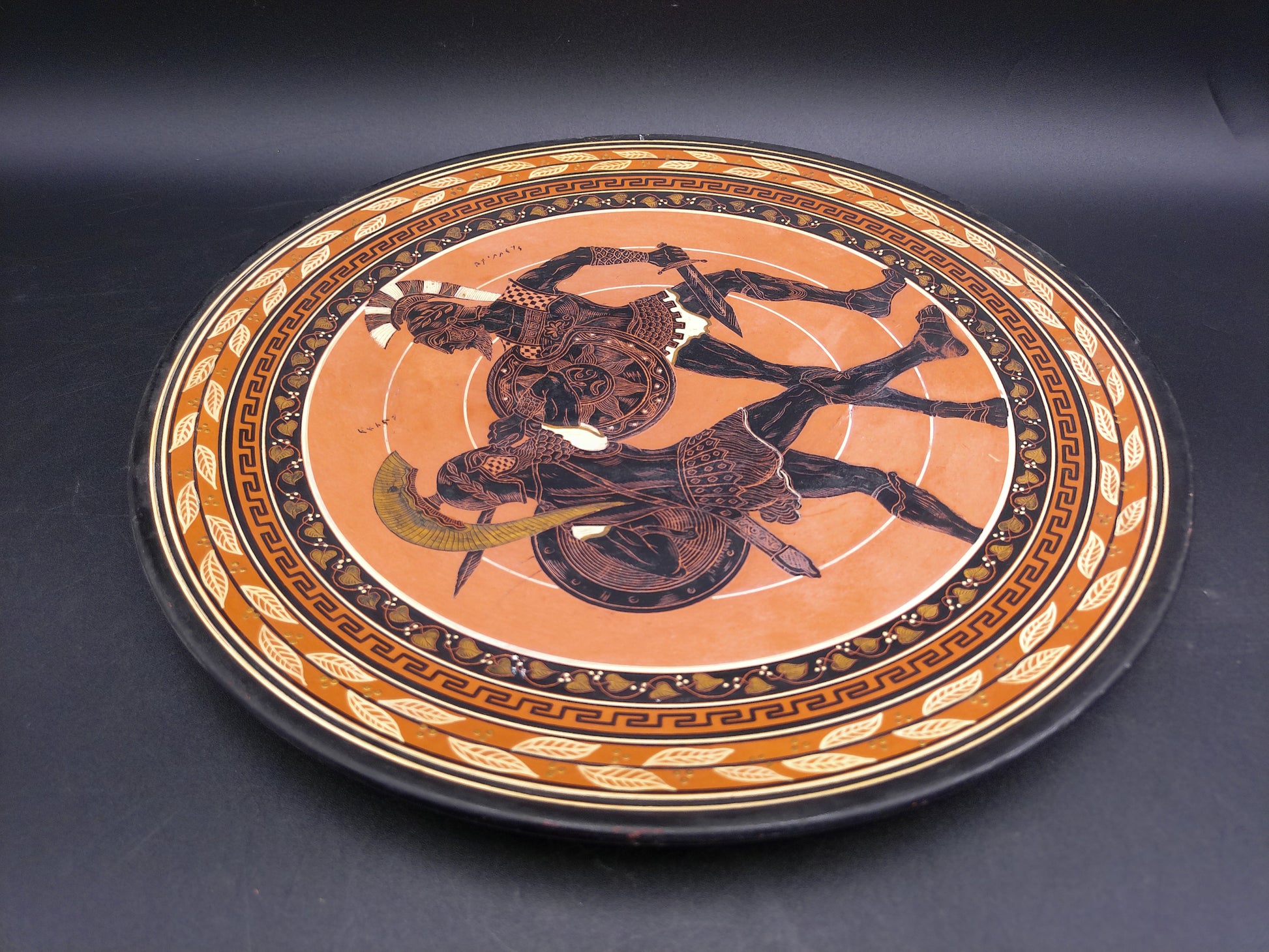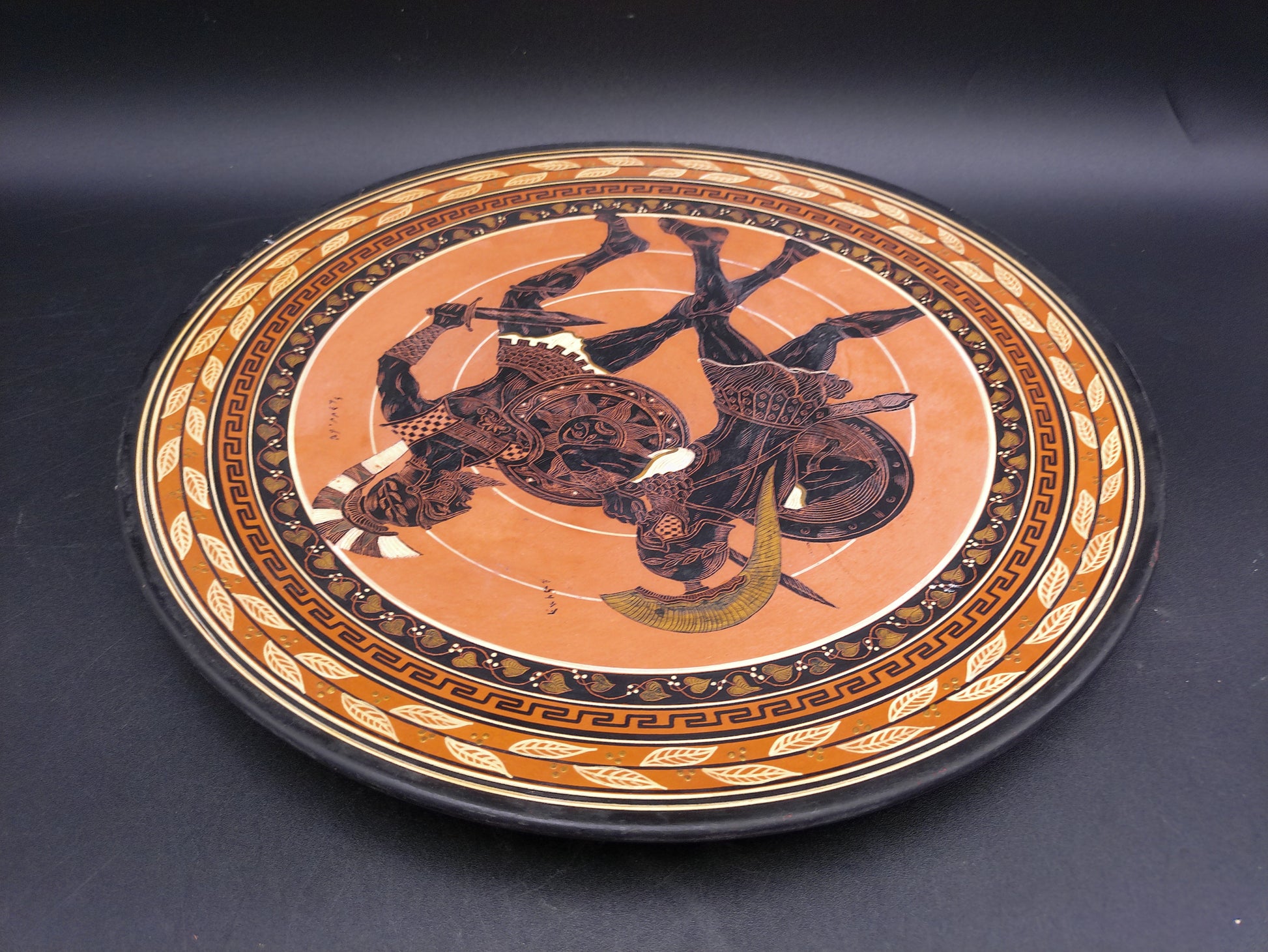 Greek Warriors with Shield and Sword Pottery Plate Hand Made & Painted In Greece