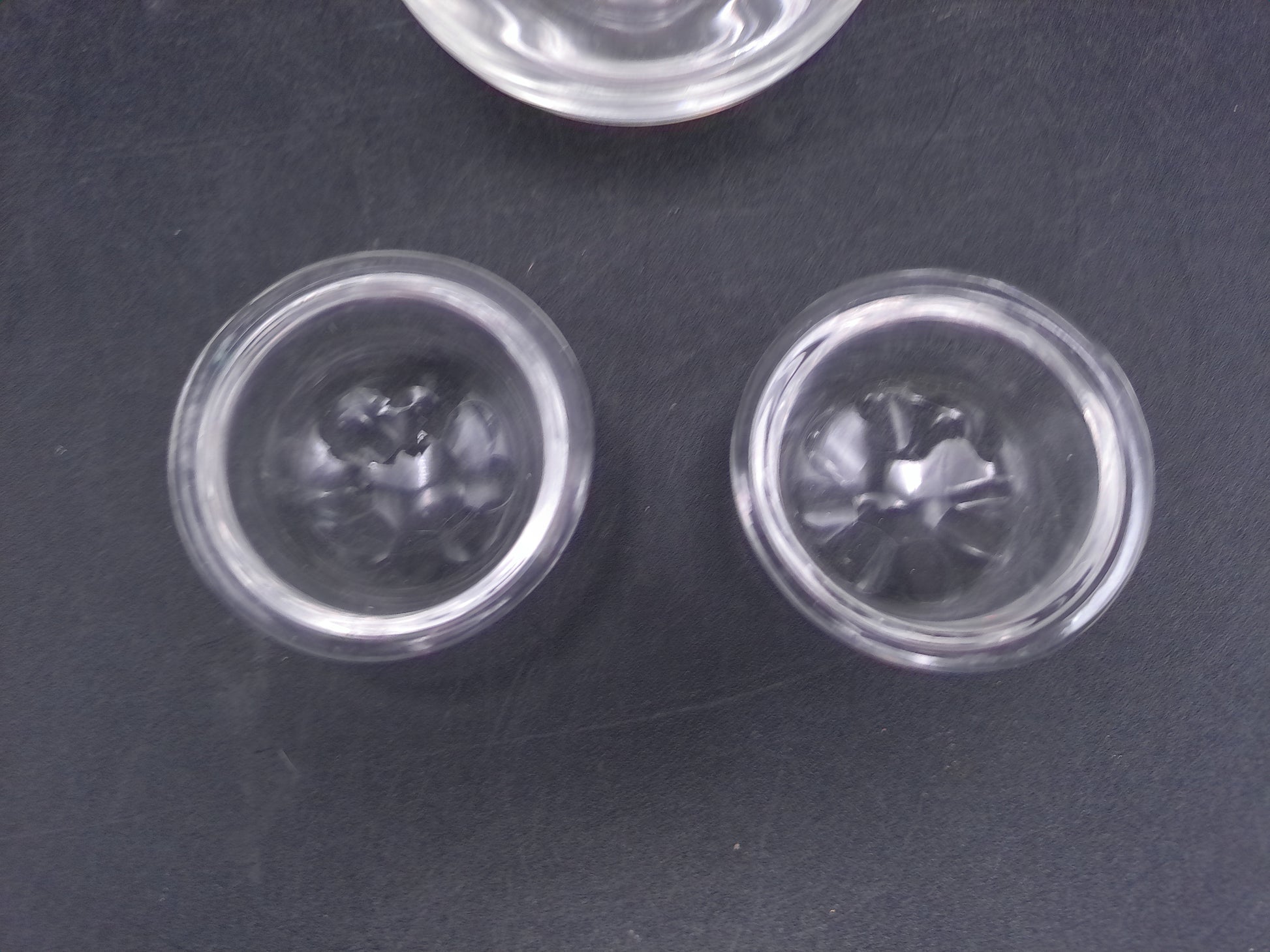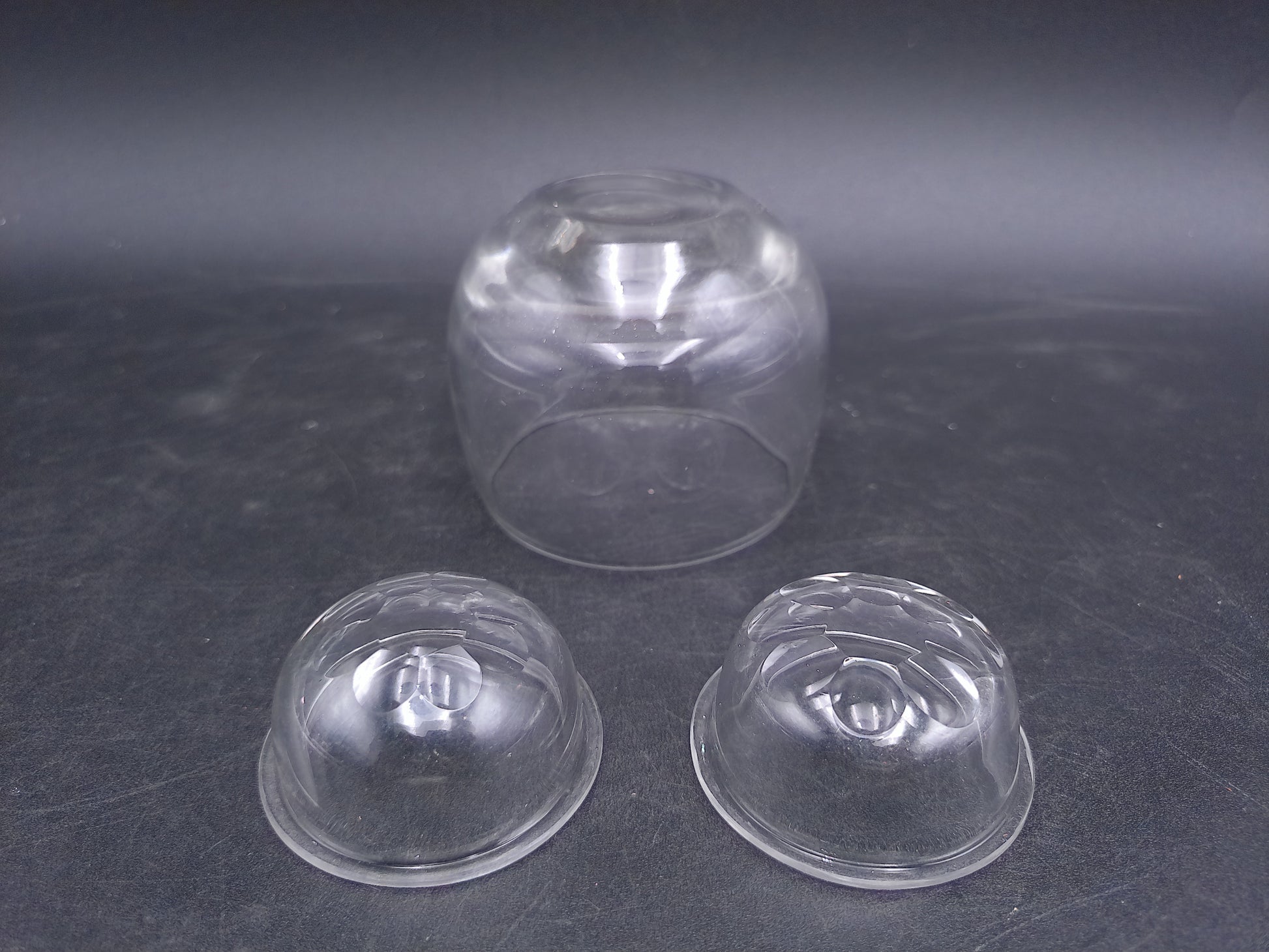 Enhance your vintage collection with this charming set of two small glass bowls and a petite drinking glass. These authentic pieces showcase the delicate craftsmanship of a bygone era, perfect for serving condiments, holding trinkets, or displaying as decorative accents. The diminutive drinking glass adds versatility—ideal for cordials, dessert servings, or as an elegant toothpick holder. Their timeless design complements any table setting while adding a touch of nostalgic elegance to your home. Invest in these versatile treasures that blend historical charm with practical everyday use.