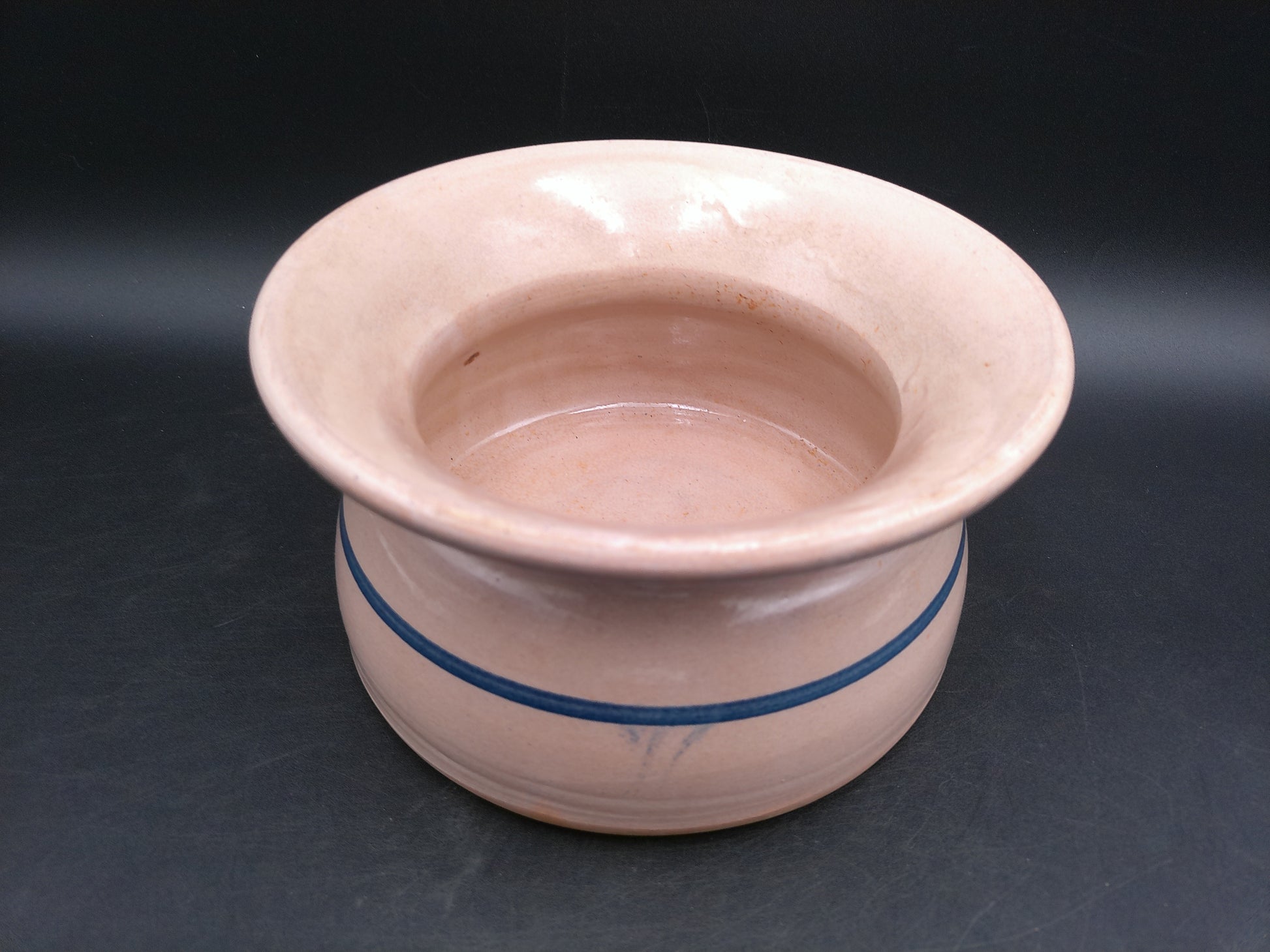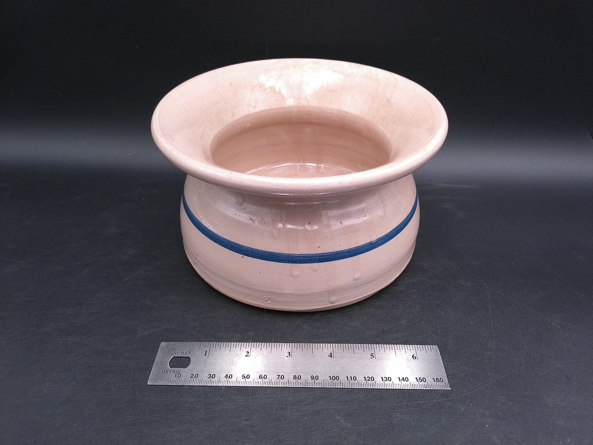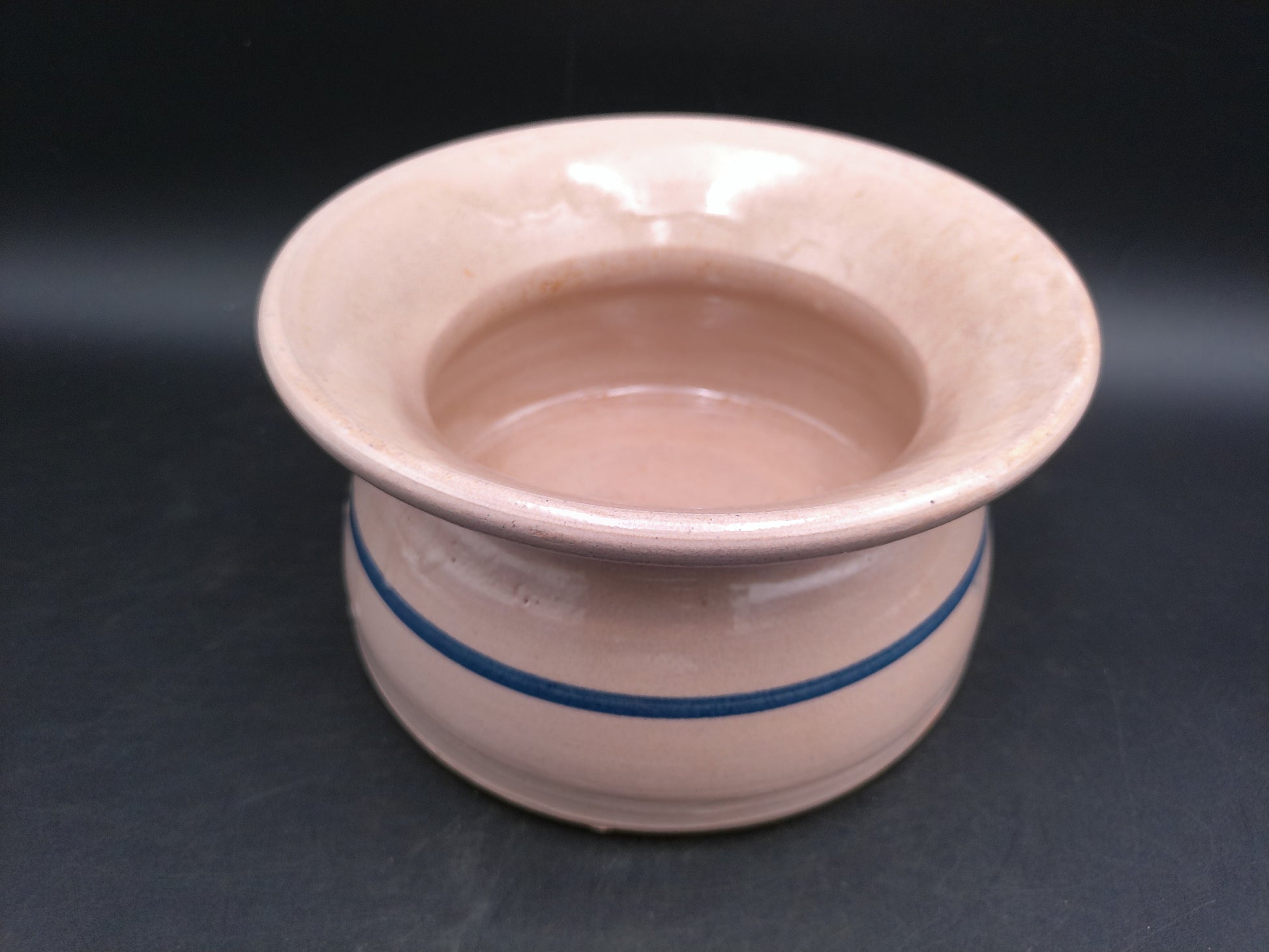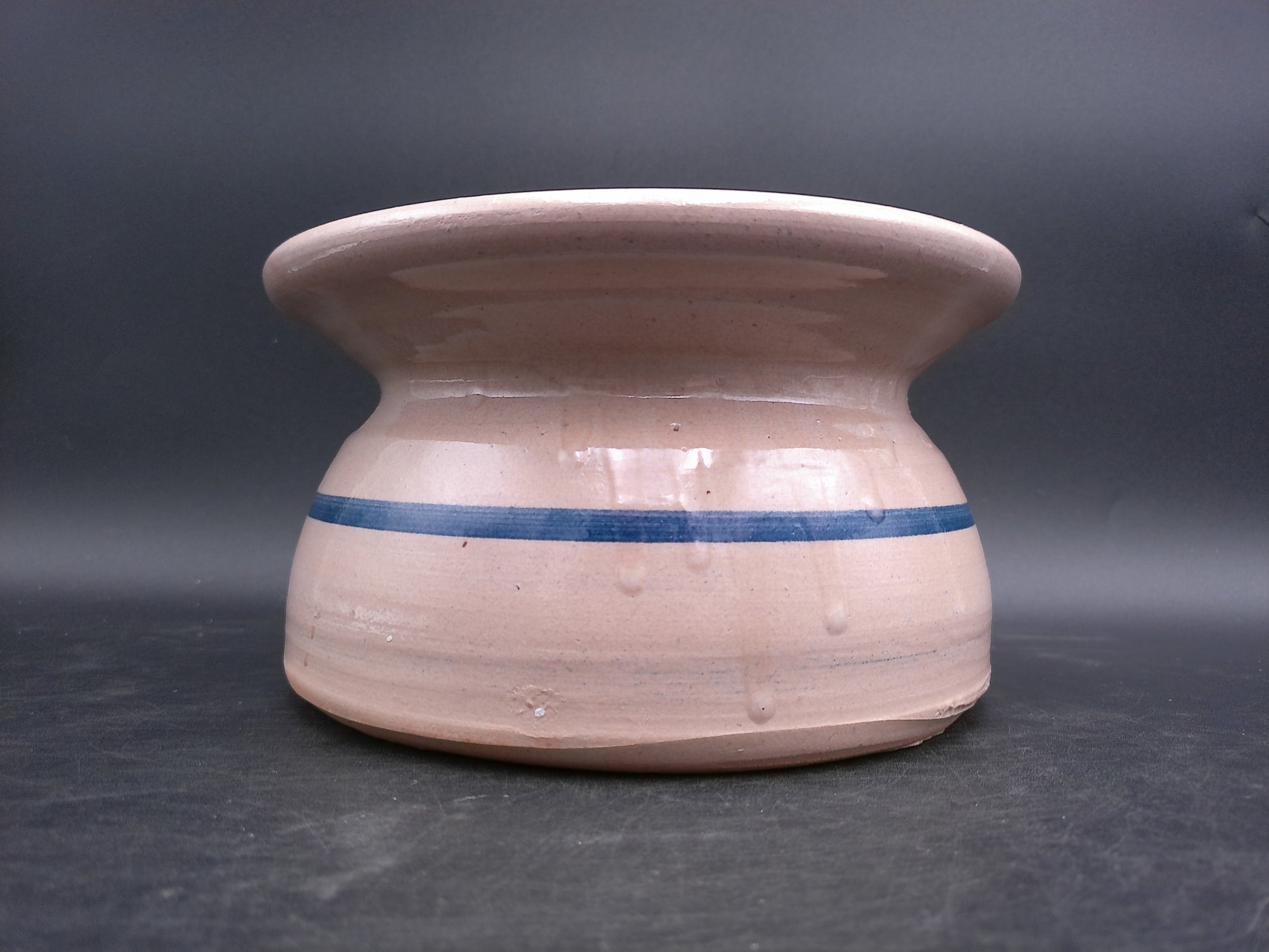 eavy Stoneware Pottery Spittoon - Flower Pot / Planter - Tan and Blue Striped Cuspidor Spit Bowl