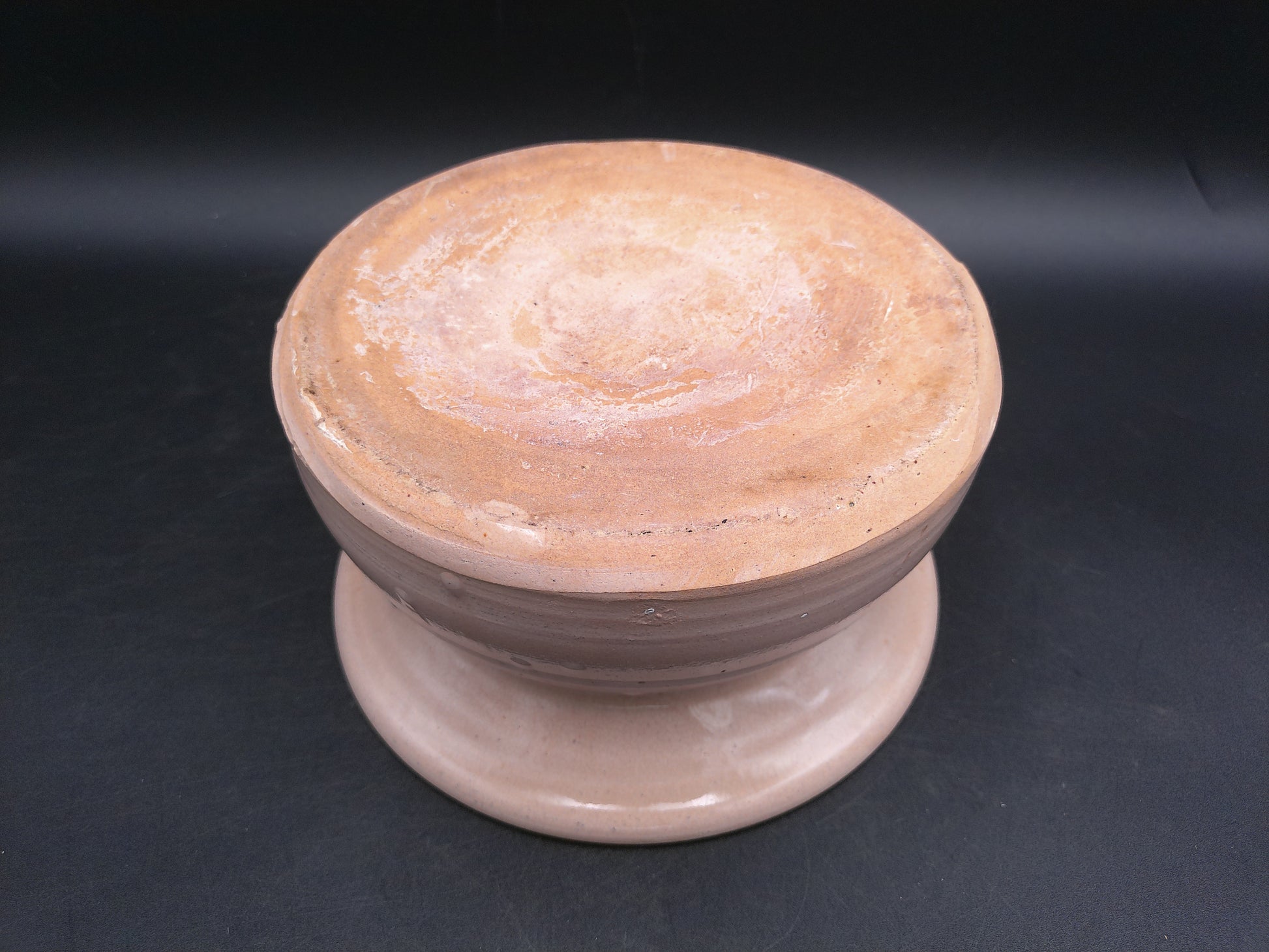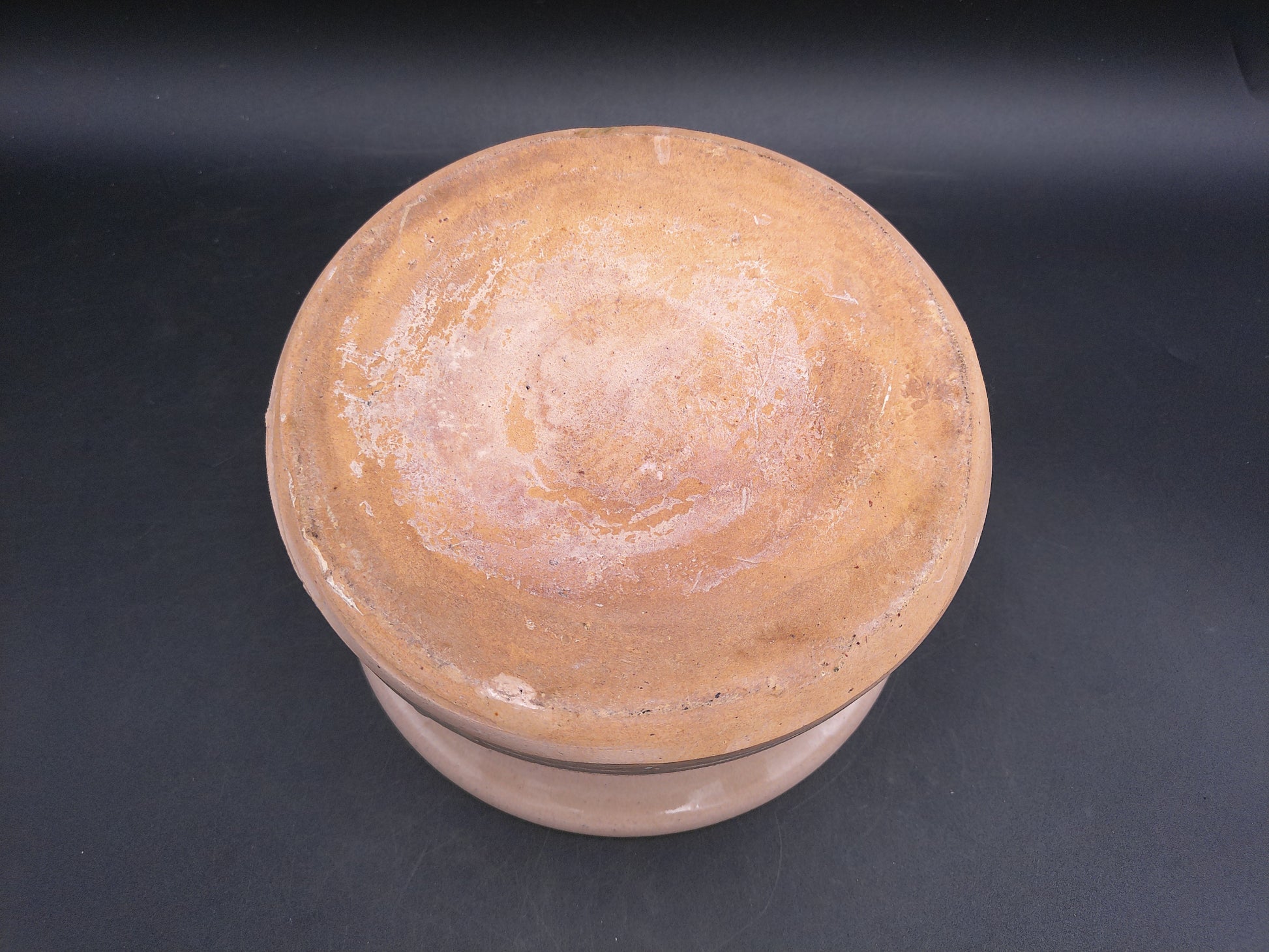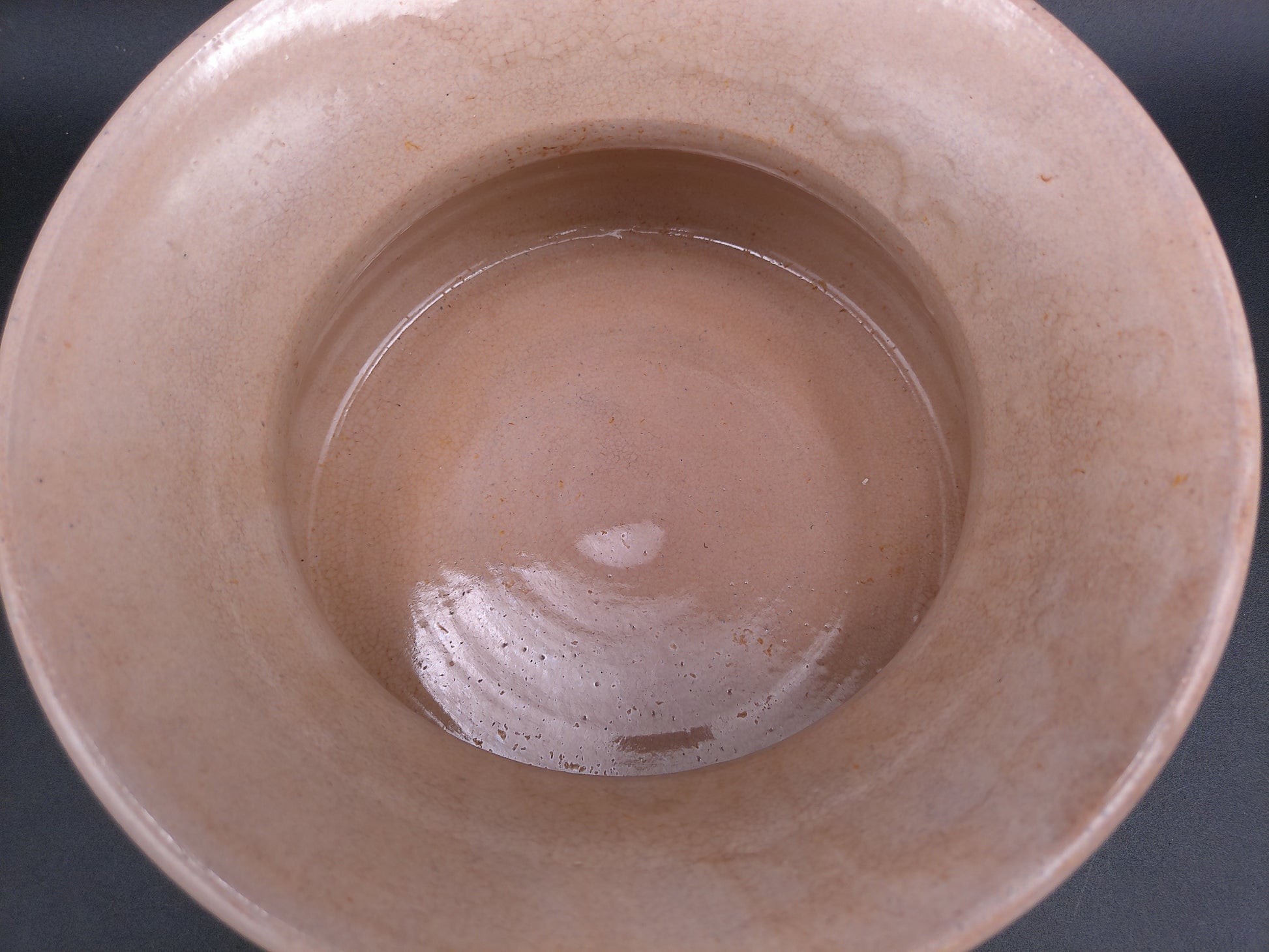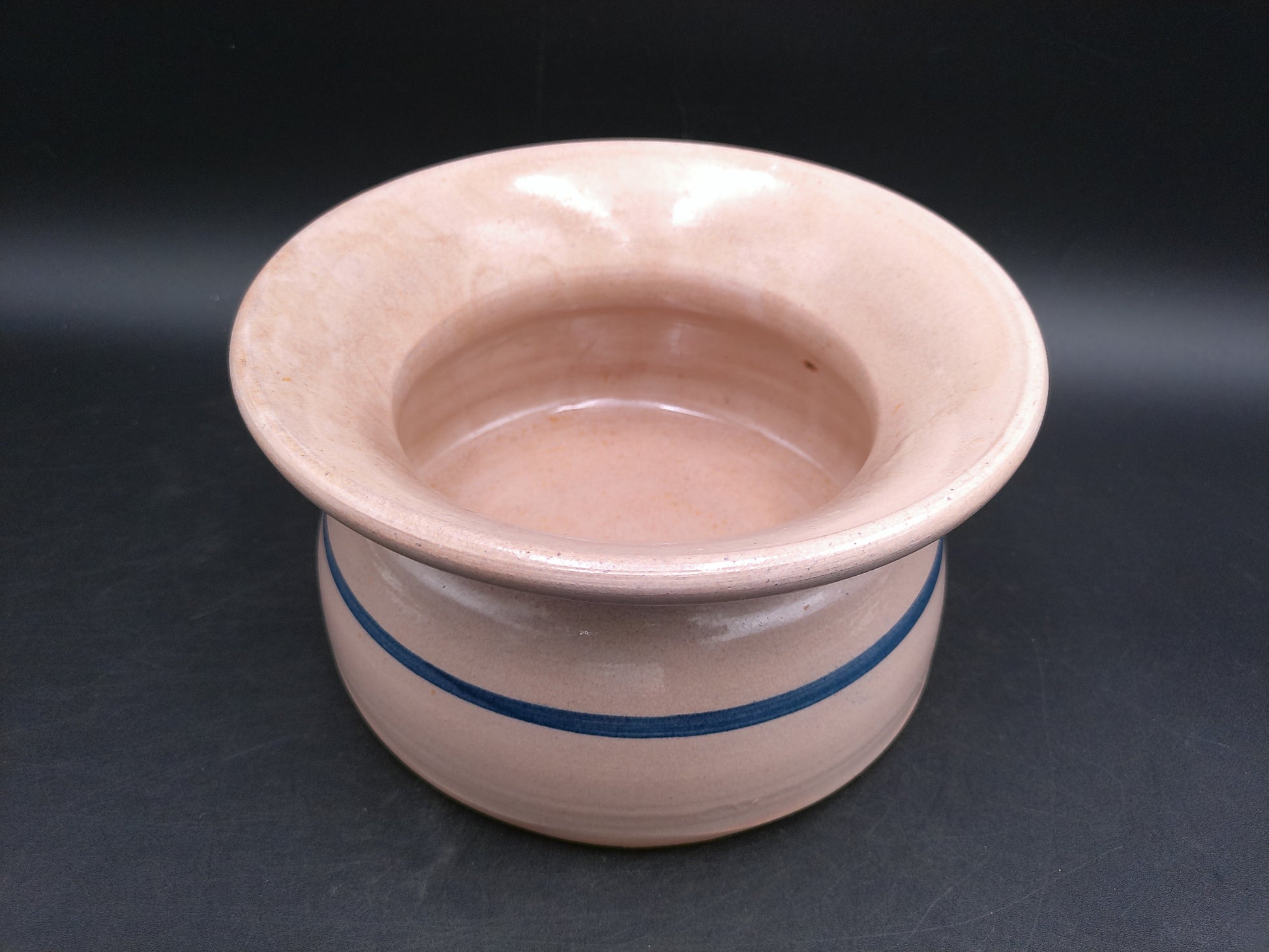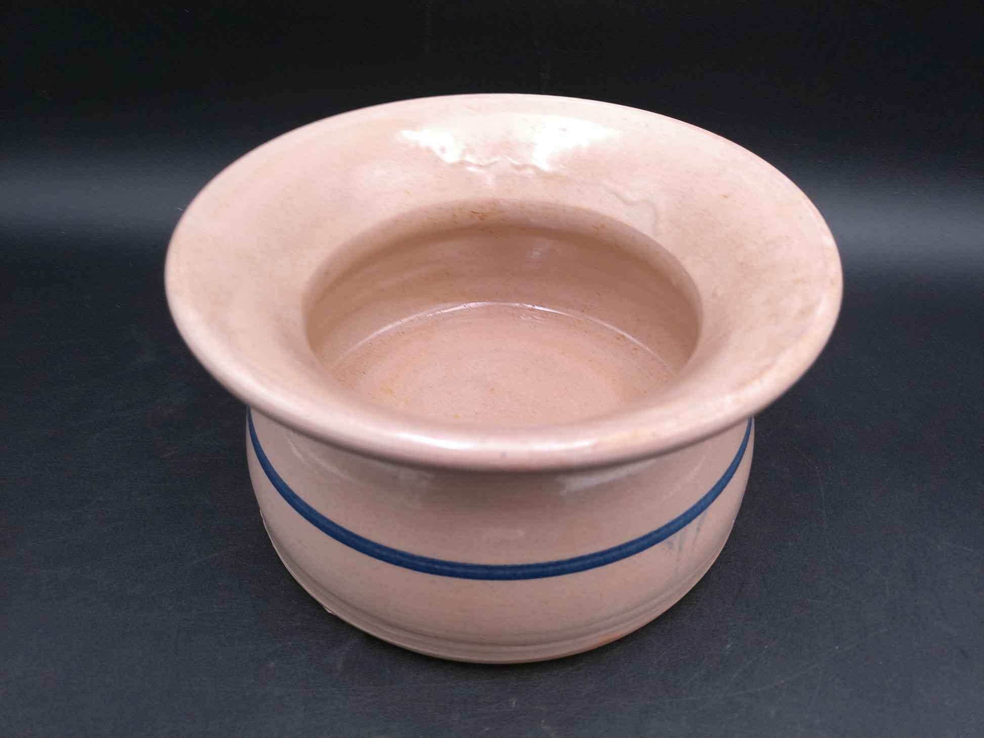 eavy Stoneware Pottery Spittoon - Flower Pot / Planter - Tan and Blue Striped Cuspidor Spit Bowl