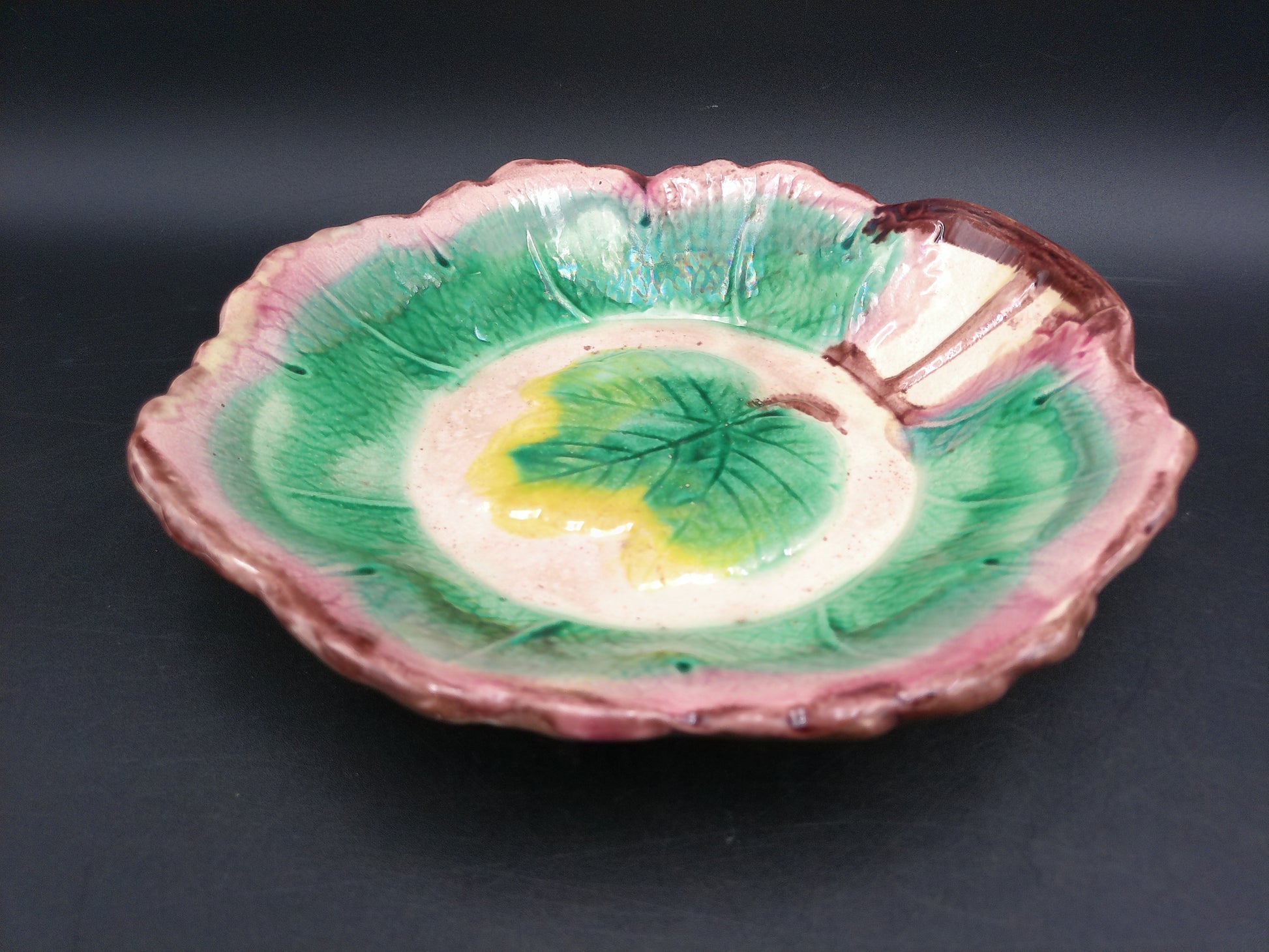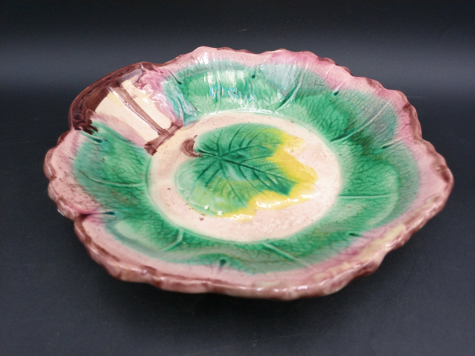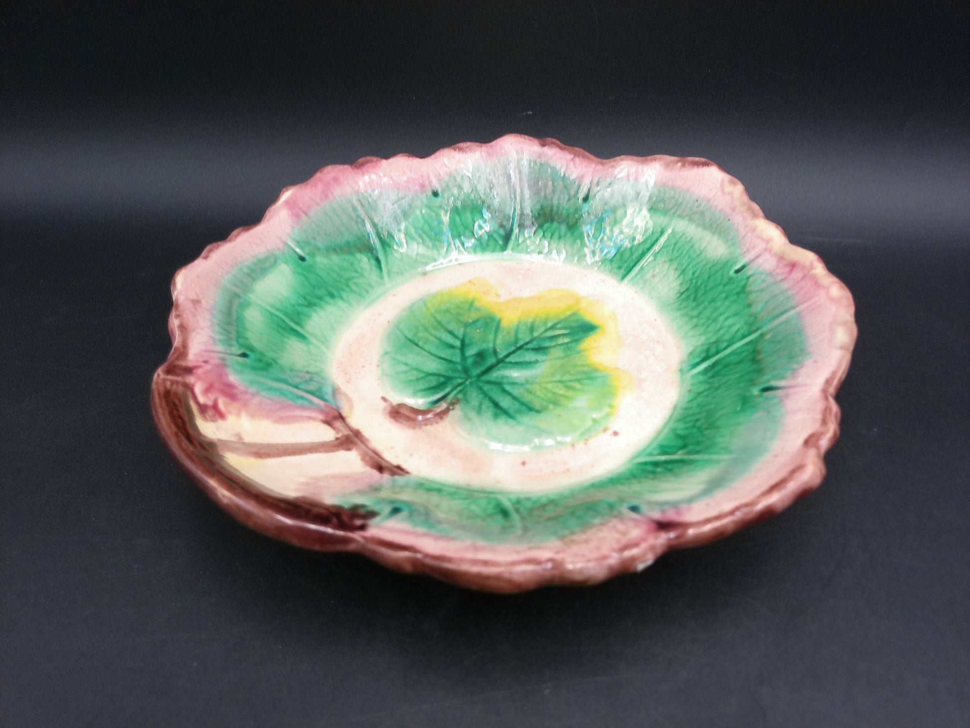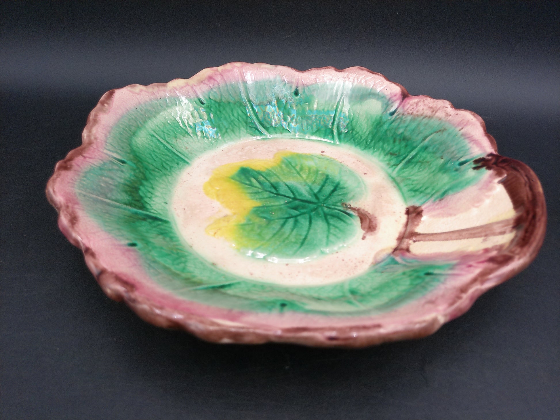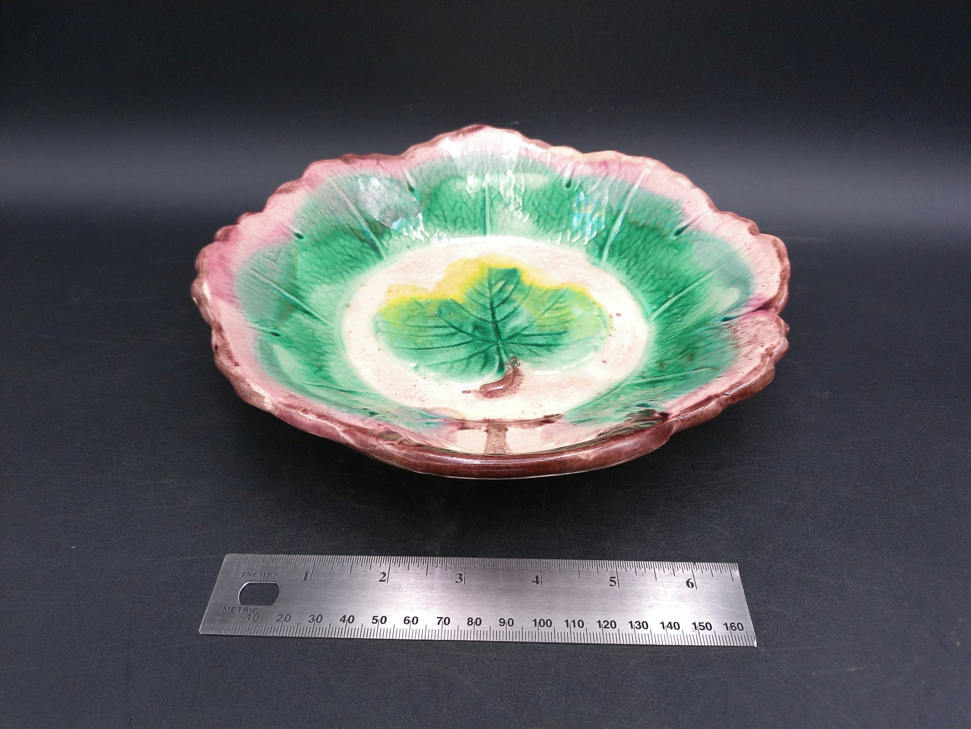 Arsenal Pottery Majolica Maple Leaf Serving Bowl 1880's-1890's
