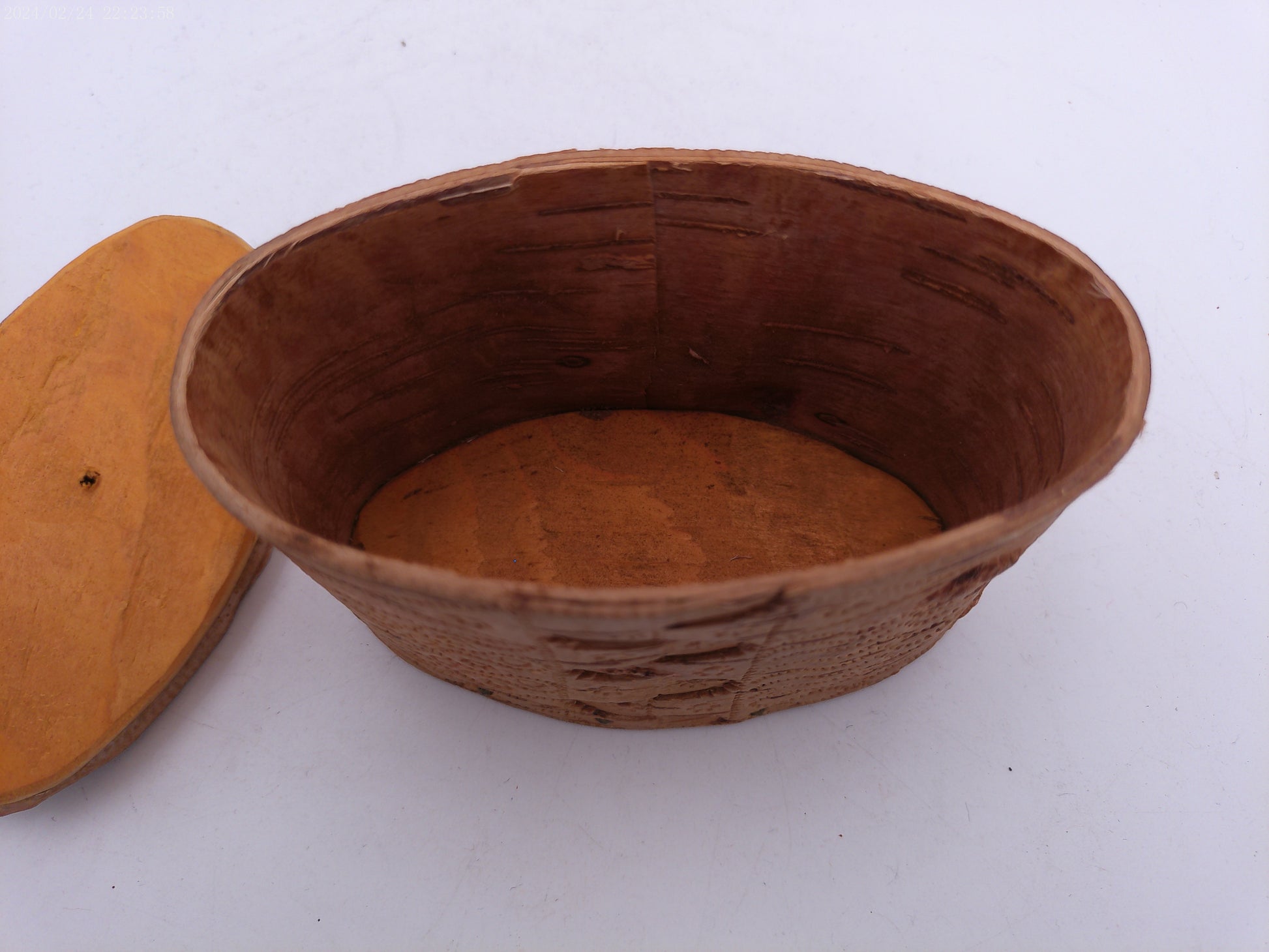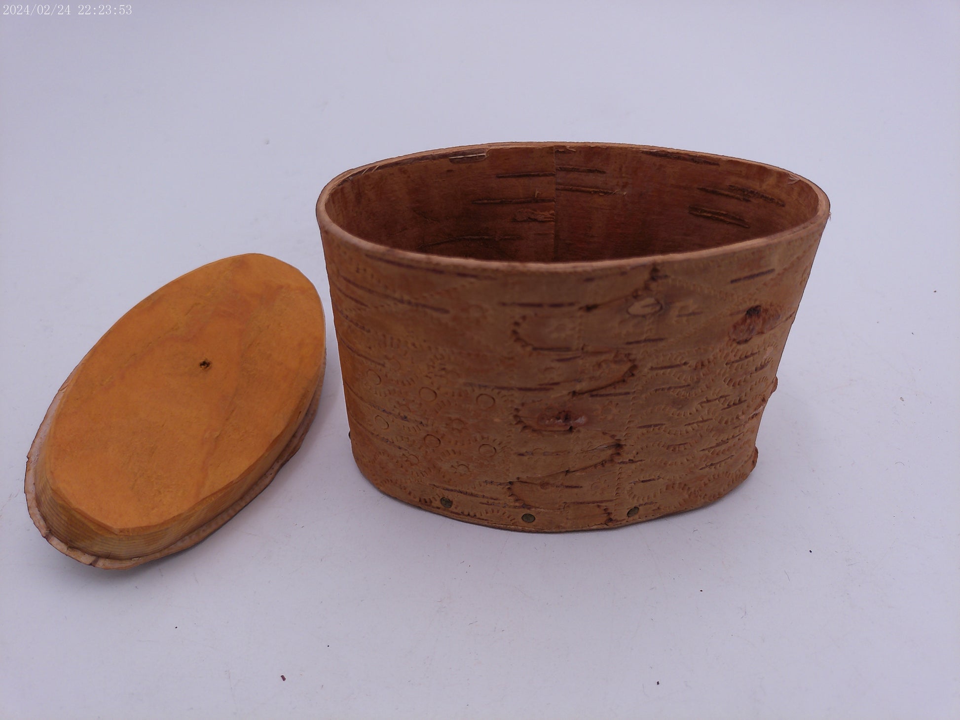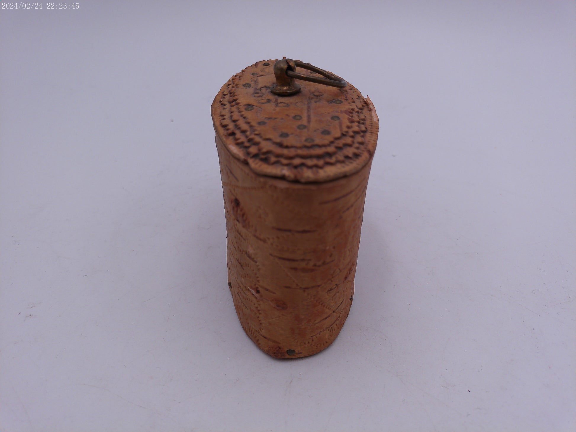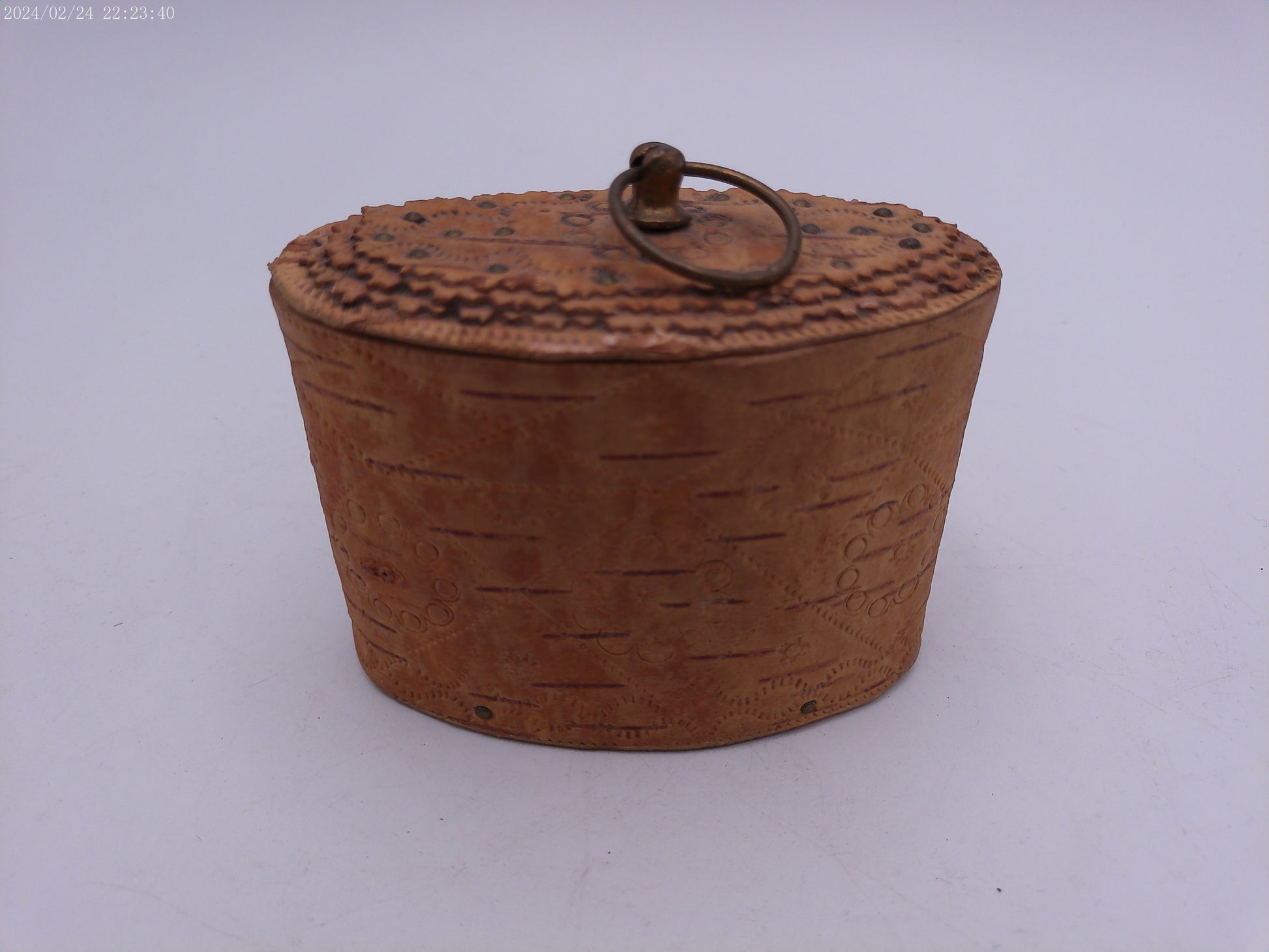 Handmade Birch Bark Storage Box with Brass Handle Vintage