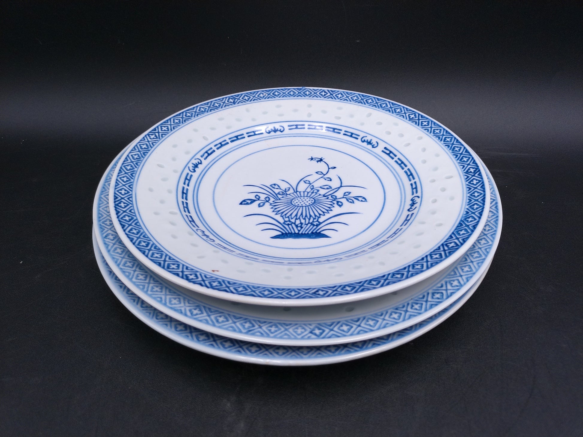 Chinese Blue & White Porcelain Dish Dragon Kangxi Set of 2 and one w/ Floral Design