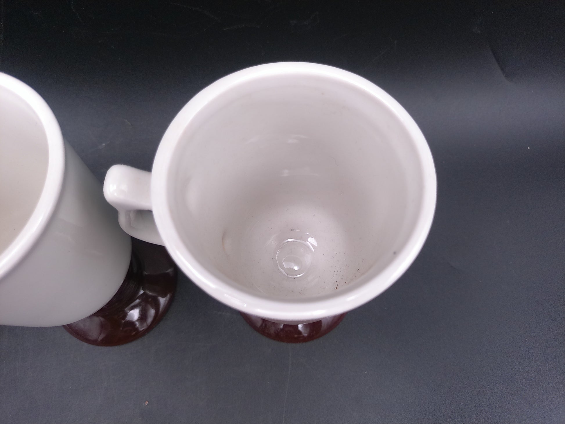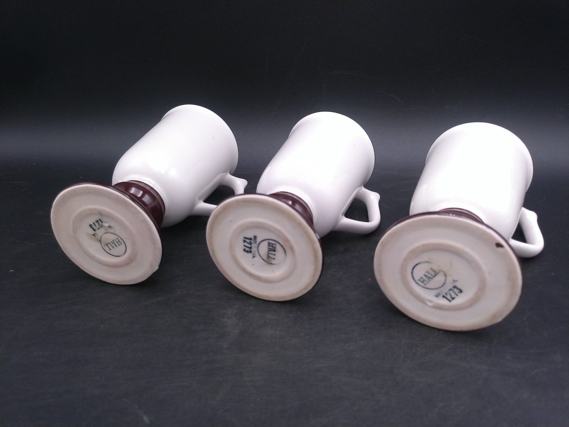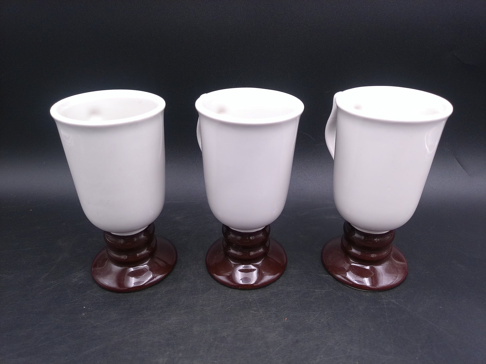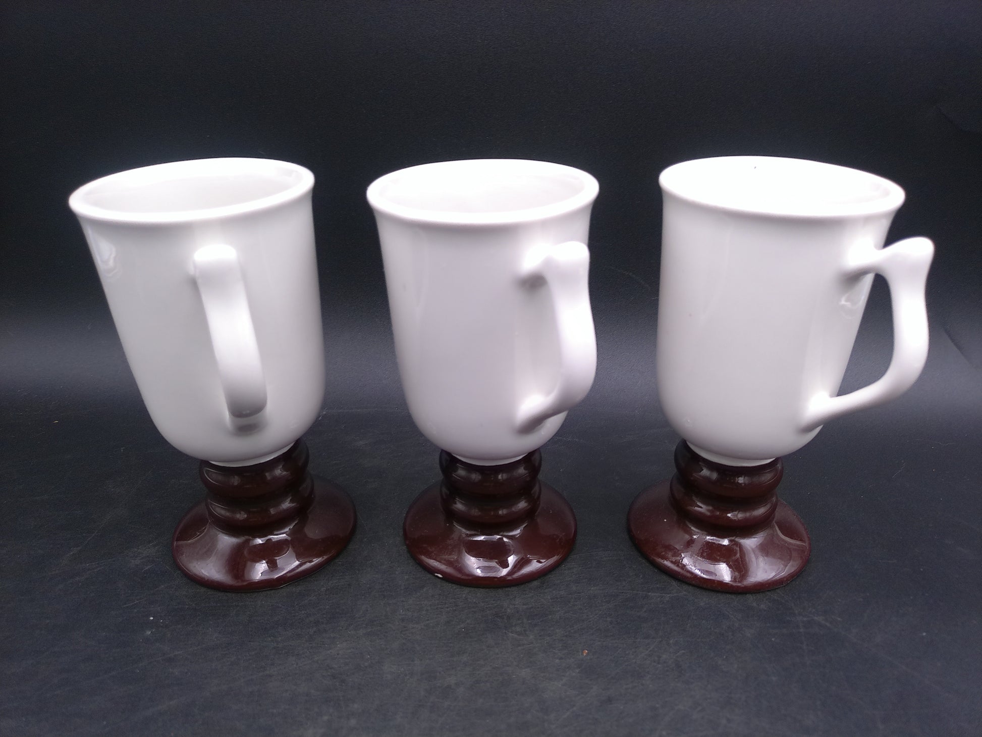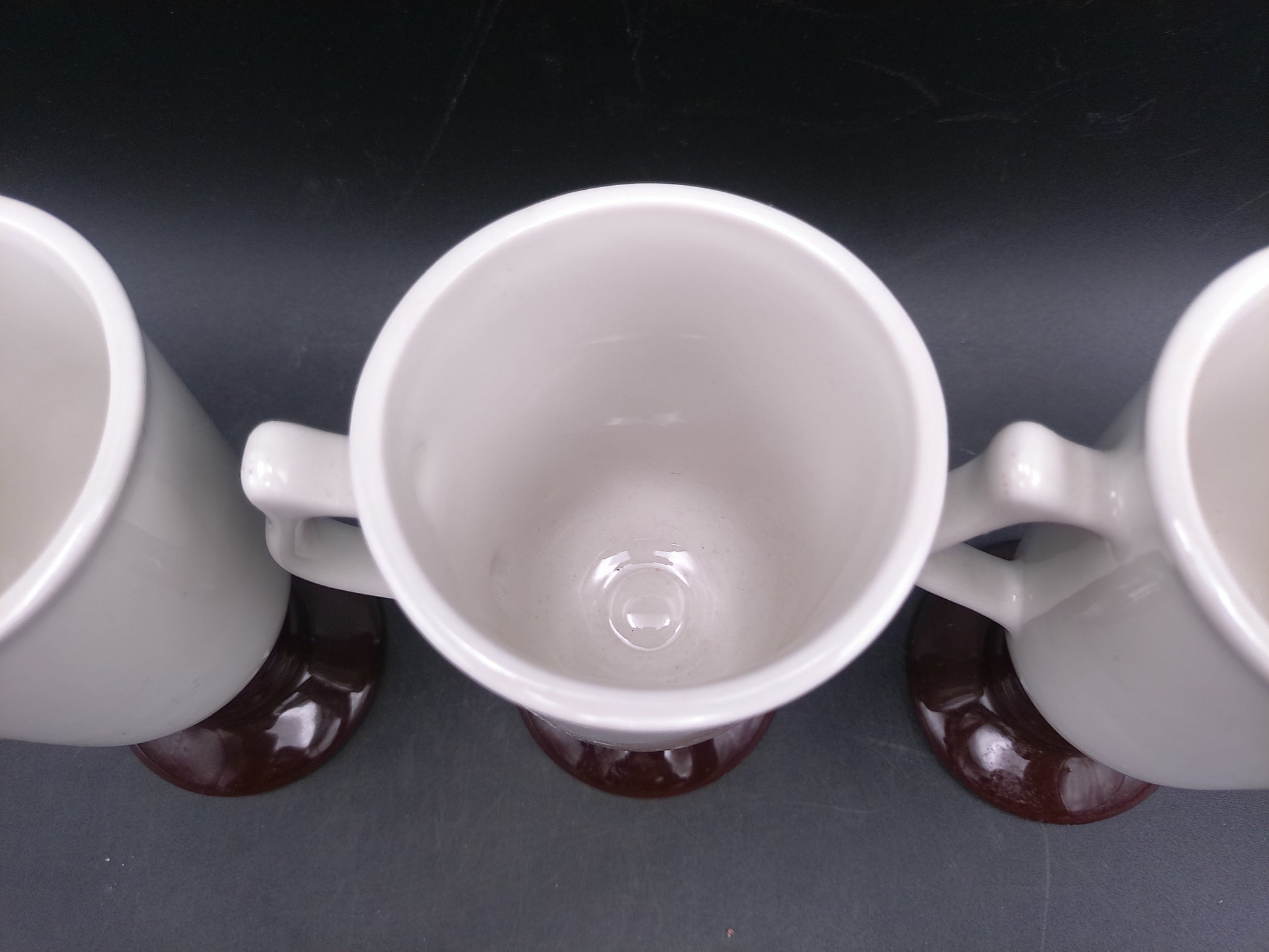 Hall Pottery 1273 White Footed With Brown Pedestal 6” Irish Coffee Mug Set of 3