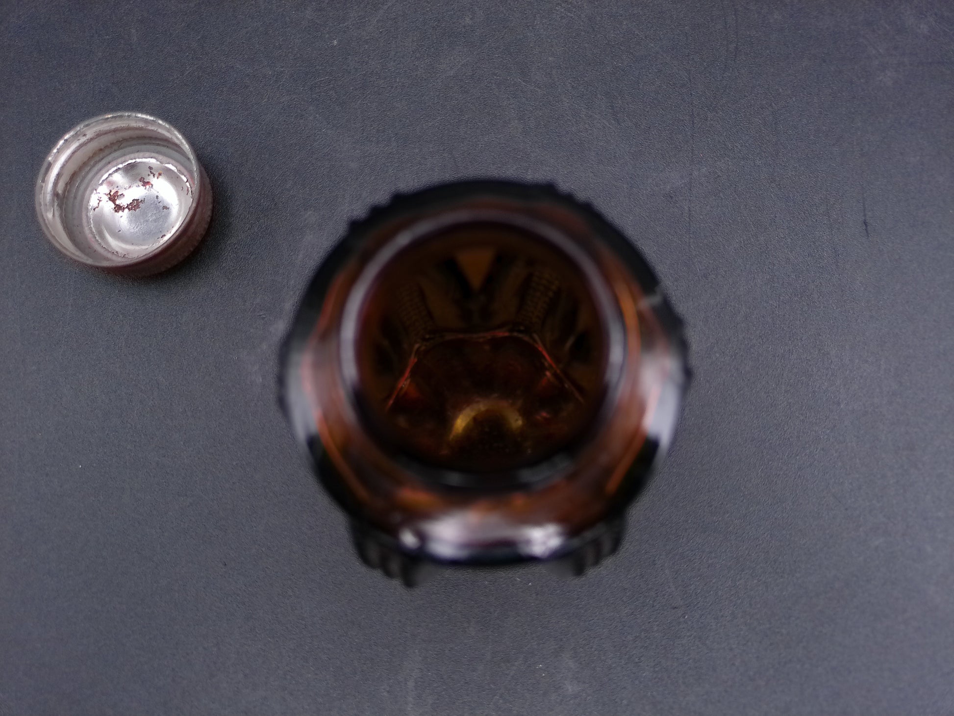 Expertly crafted with a vintage design, this Small Glass Bottle with Metal Twist on Lid is the perfect addition to any home. Made from durable glass and a sturdy metal lid, it is ideal for storing liquids or as a decorative piece. The twist on lid ensures a secure seal, keeping contents fresh and protected.