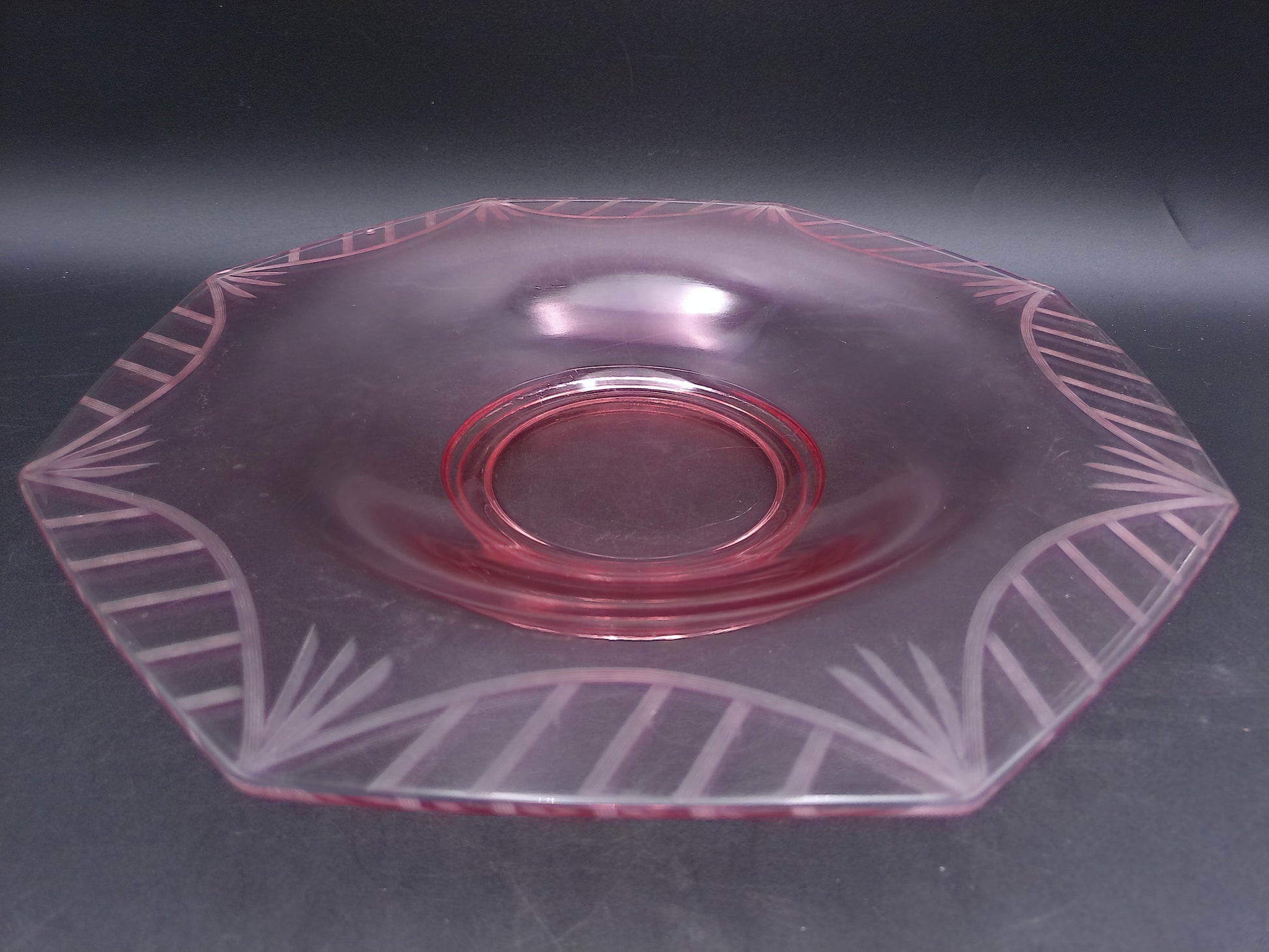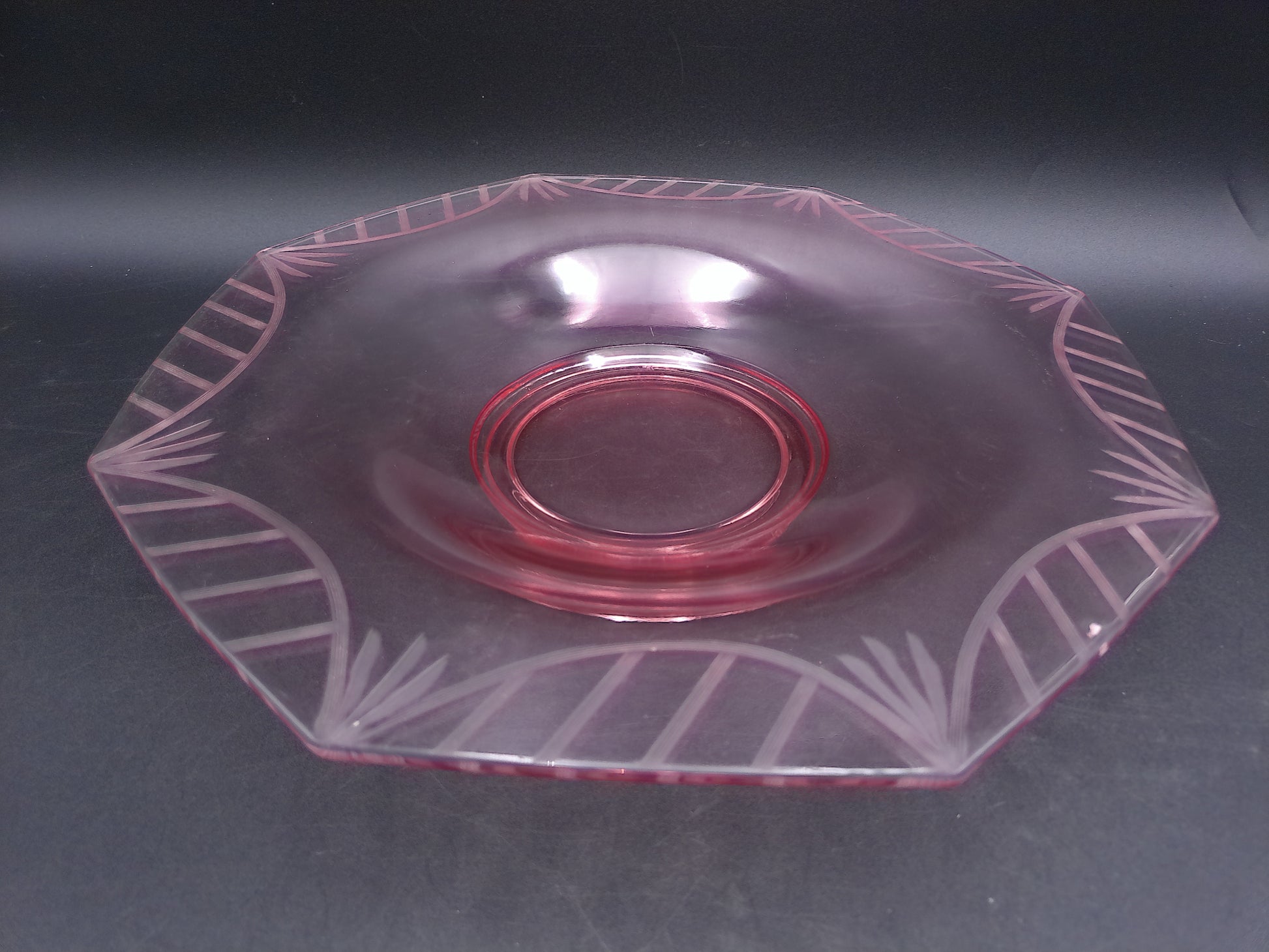 Octagonal Pink Depression Glass Plate Bowl Vintage