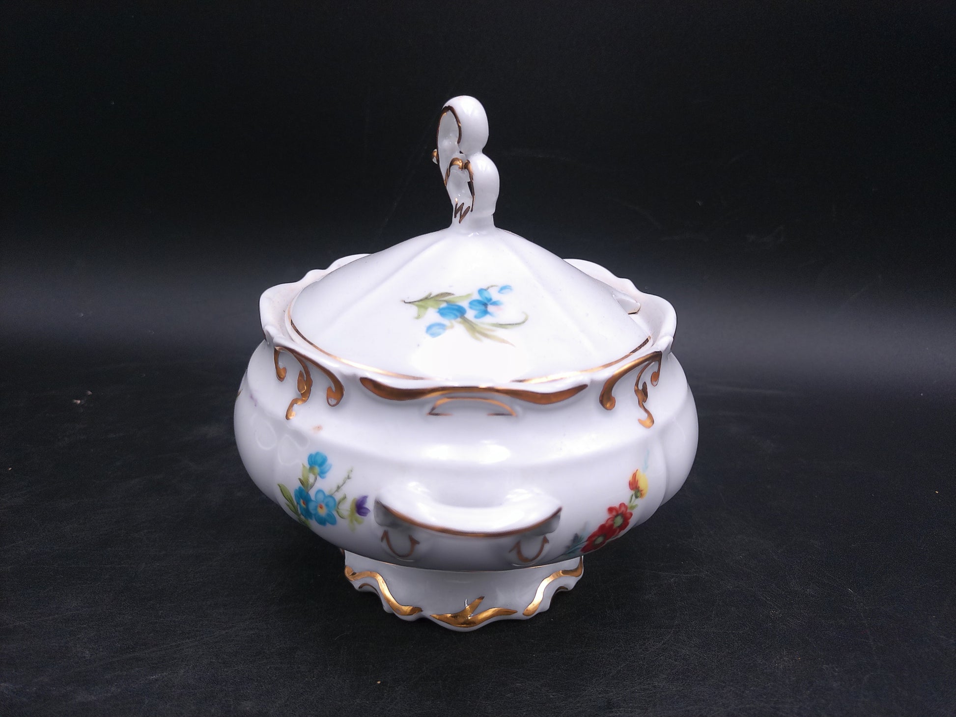 Iris Porcelain JRJS Cluj Romania Covered Bowl with Lid Gold Rims Vintage