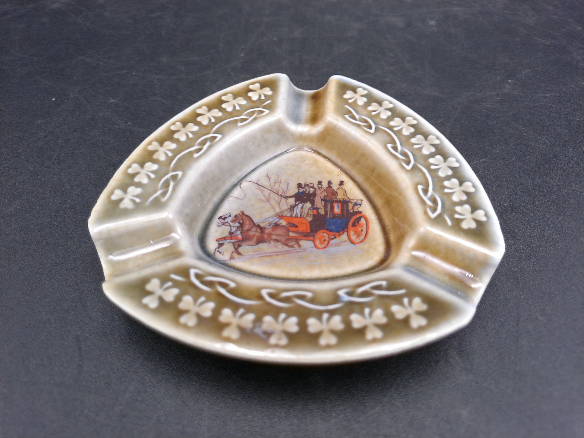 Wade Irish Porcelain 4" Triangle Ashtray Farm Scene Made in Ireland Lot of 2