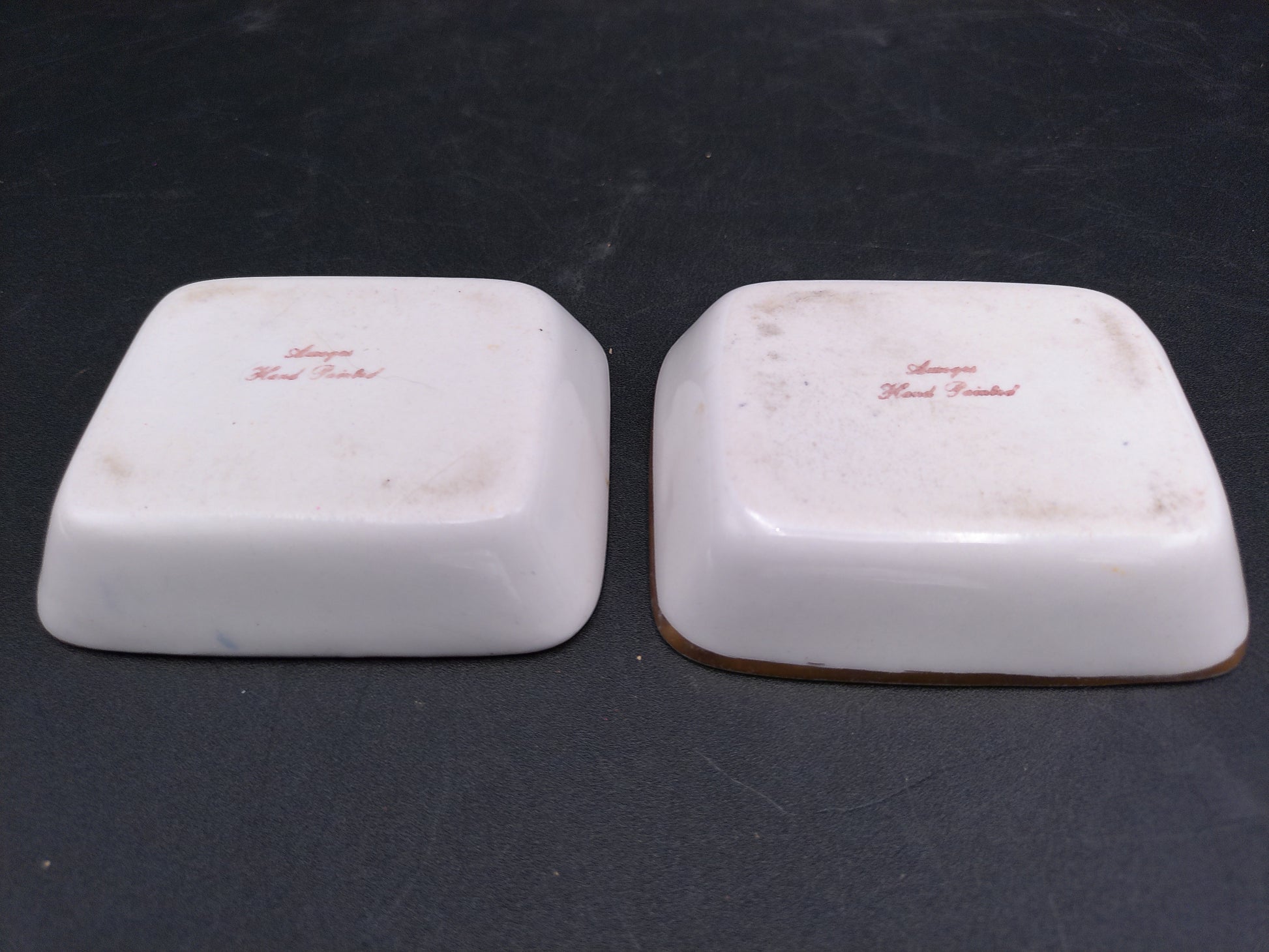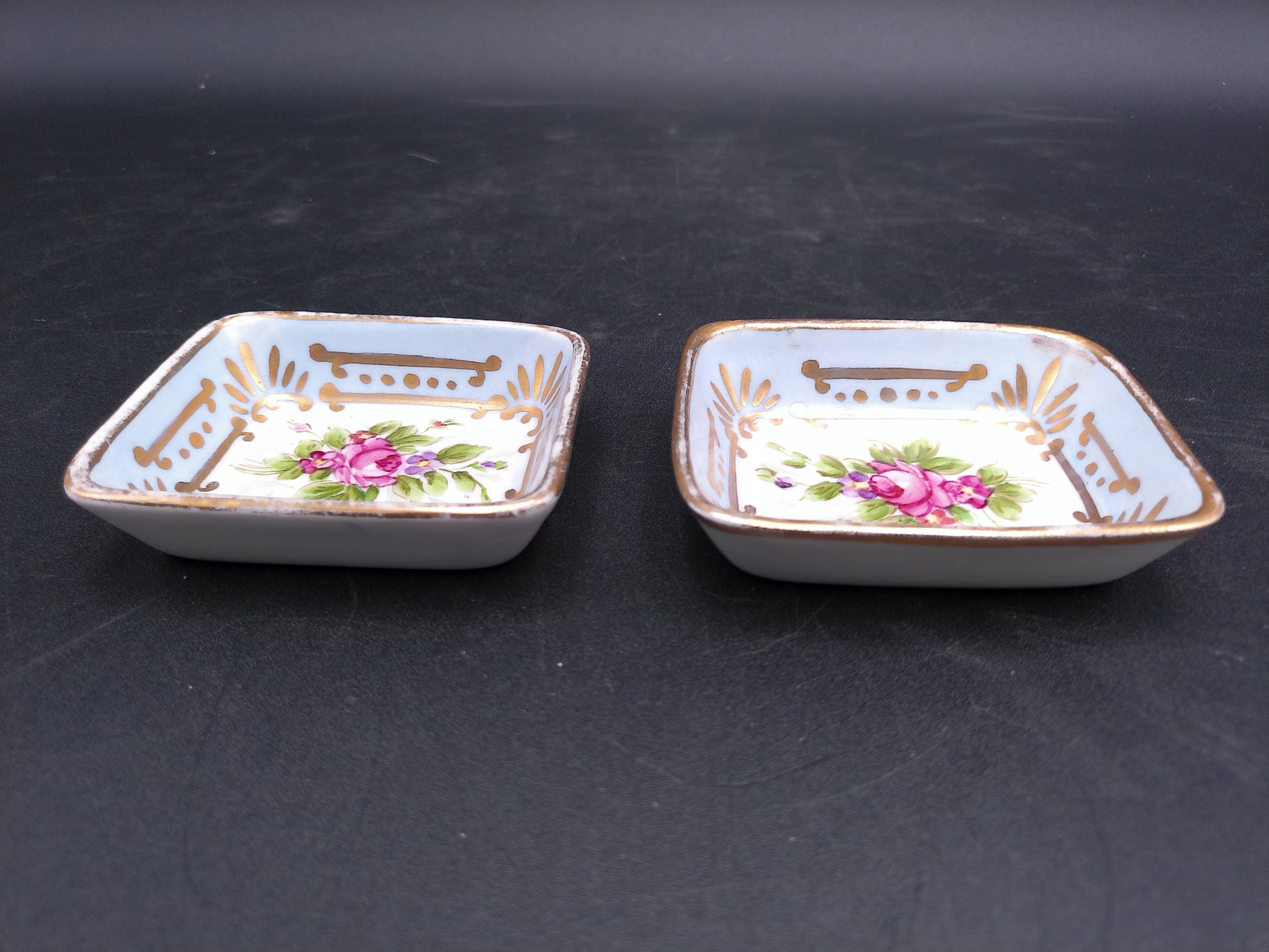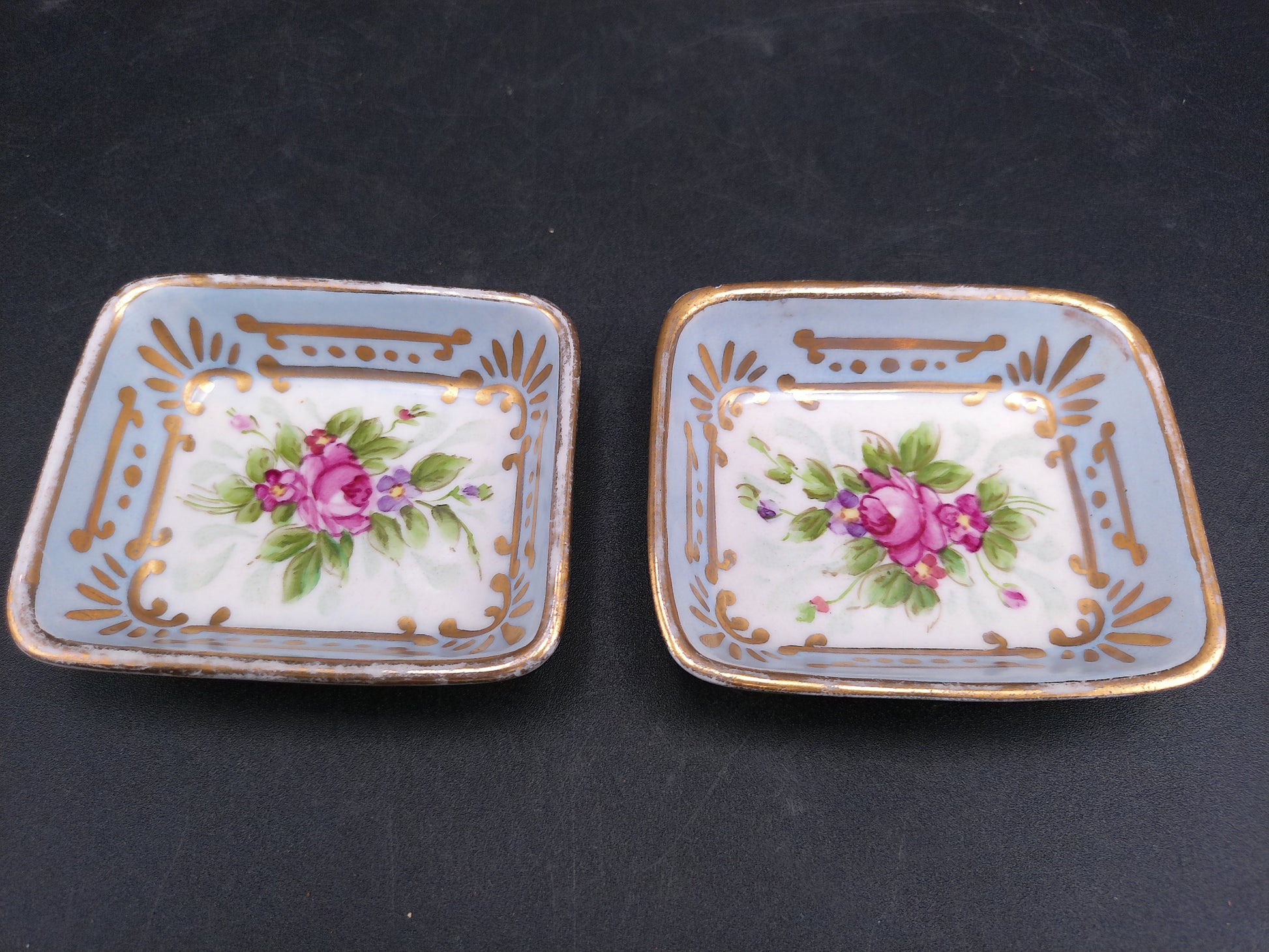 Gold painted Rim and Gold Painted Design Set of 2 Dishes Plates with Flower Design