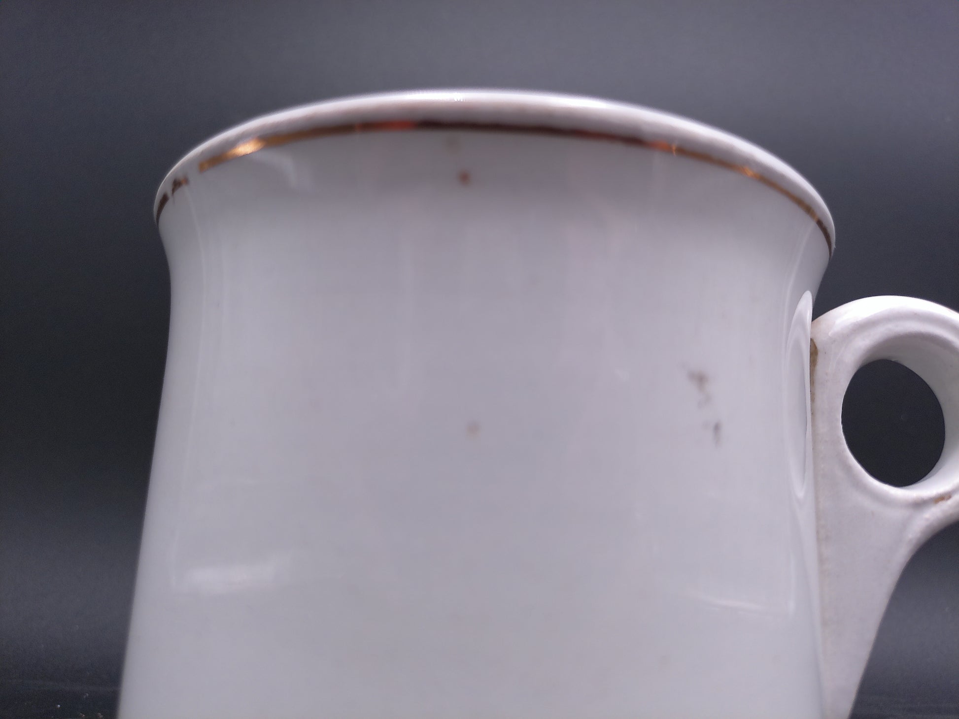 This antique ironstone shaving cream mug, manufactured by D.E. McNicol in Clarksburg, West Virginia, is a must-have for any shaving enthusiast. Crafted with quality and longevity in mind, this mug is a timeless addition to any grooming routine. (31 words)