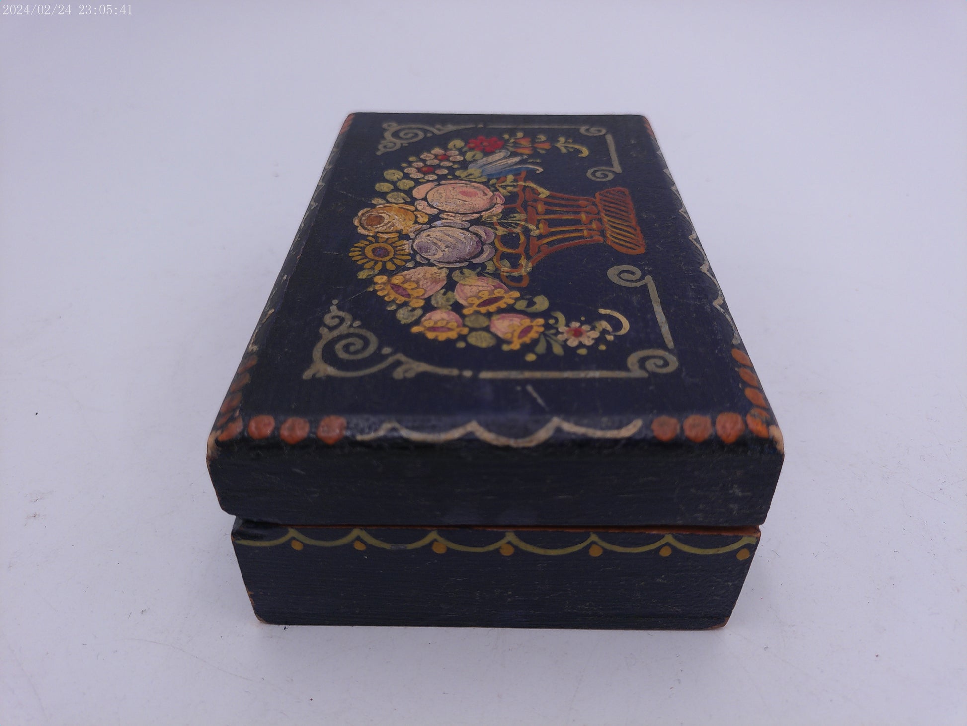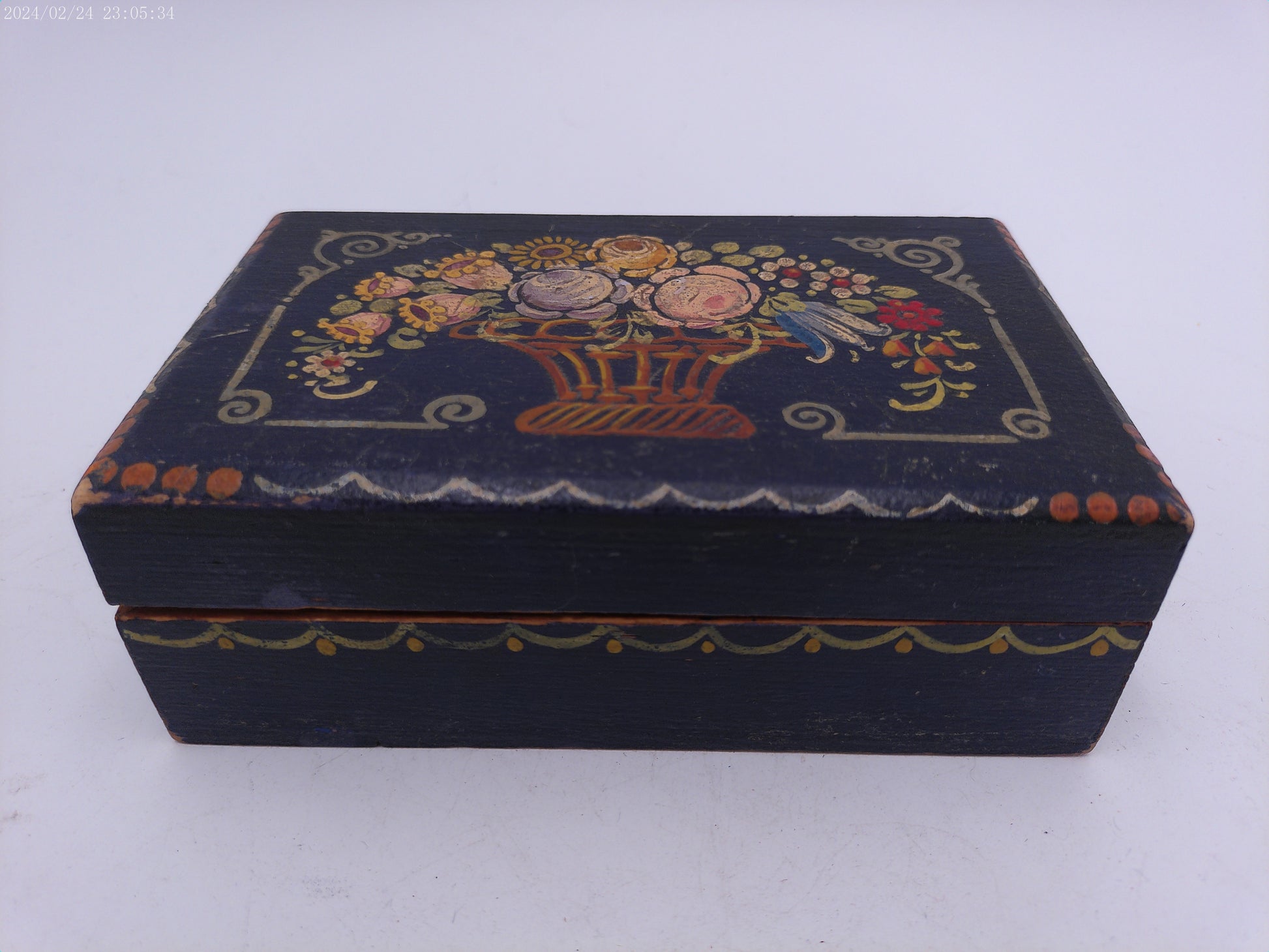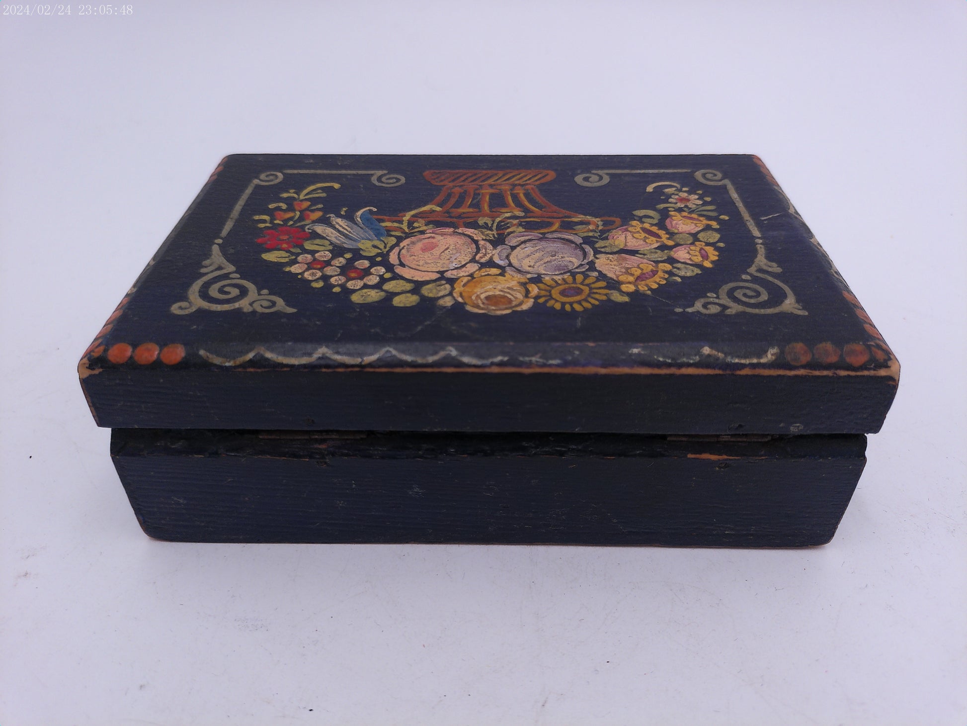 Expertly crafted in the mid 19th century, this hand painted jewelry box is a stunning example of vintage elegance. With intricate details and a unique design, it's the perfect way to store and display your precious jewelry collection. Functional and beautiful, it's a must-have for any collector or lover of vintage items.