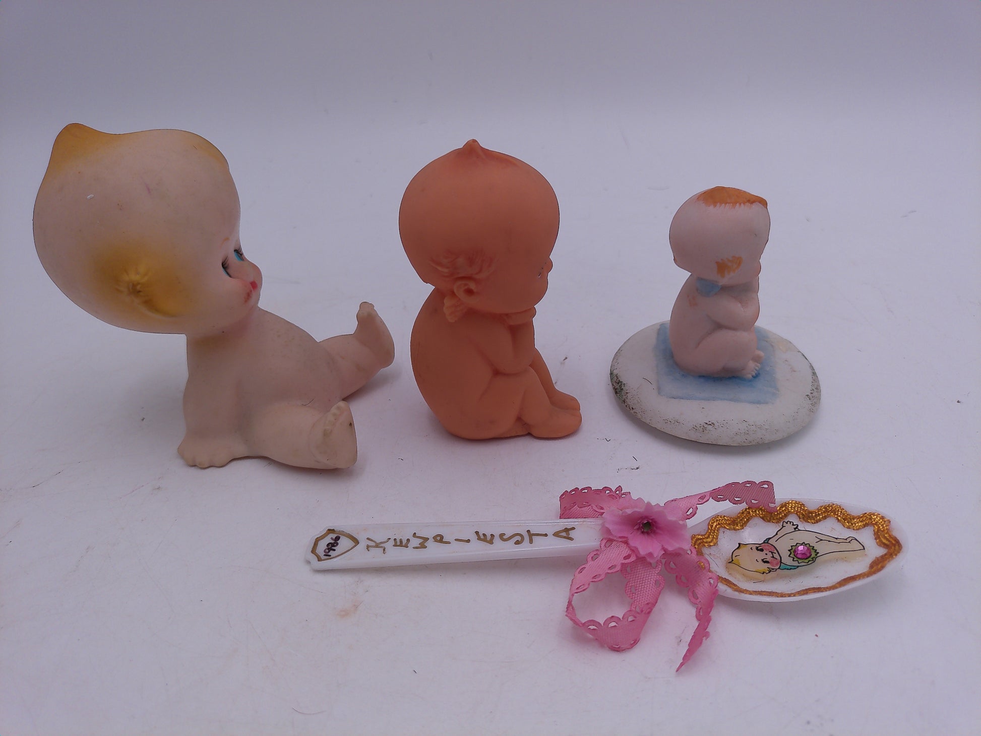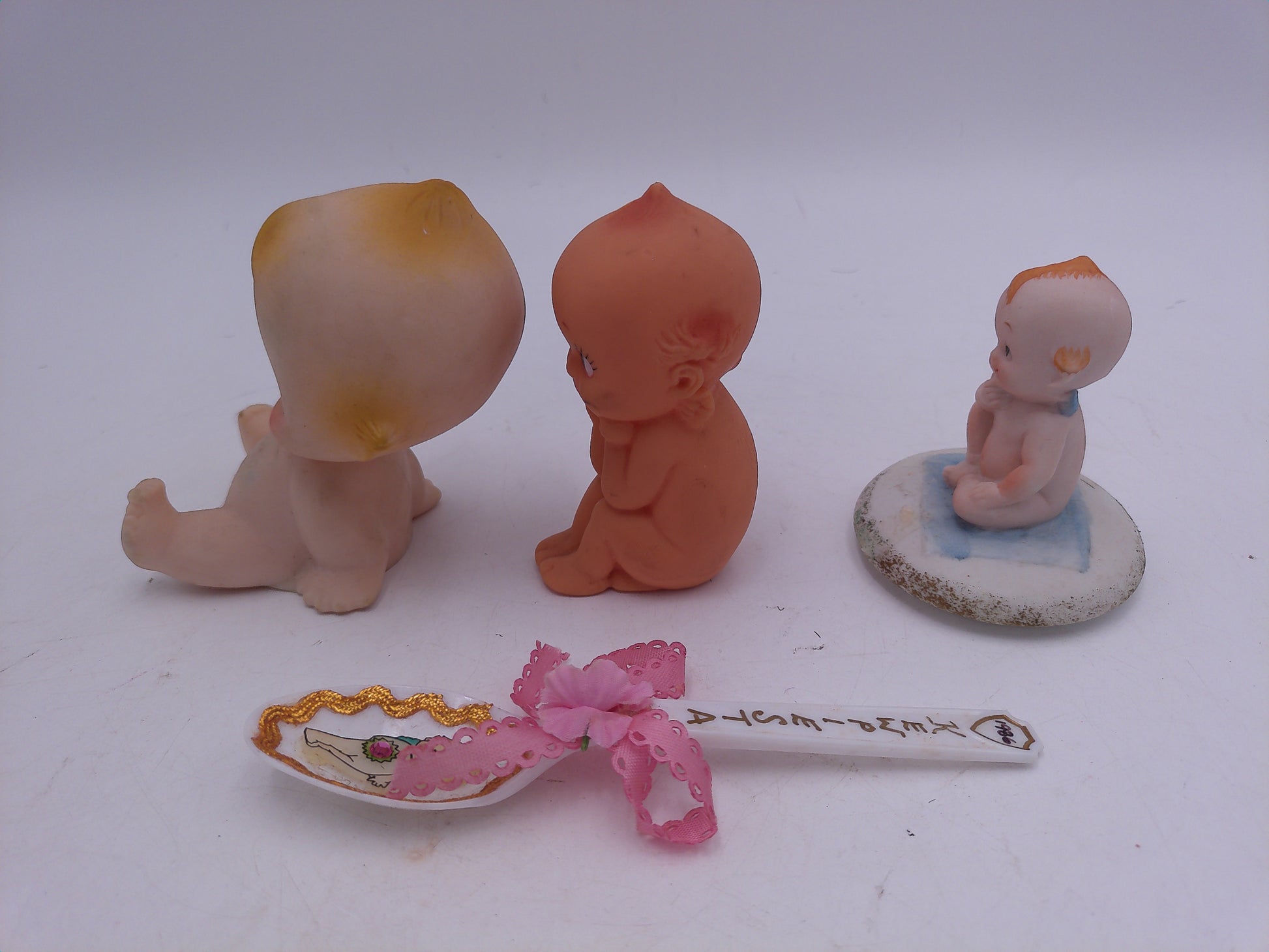 This vintage set includes 3 adorable Kewpie dolls and a matching spoon. Made with durable materials, these dolls and spoon are perfect for display or for playtime. A must-have for collectors, bring a touch of nostalgia and charm to any room with this delightful set.