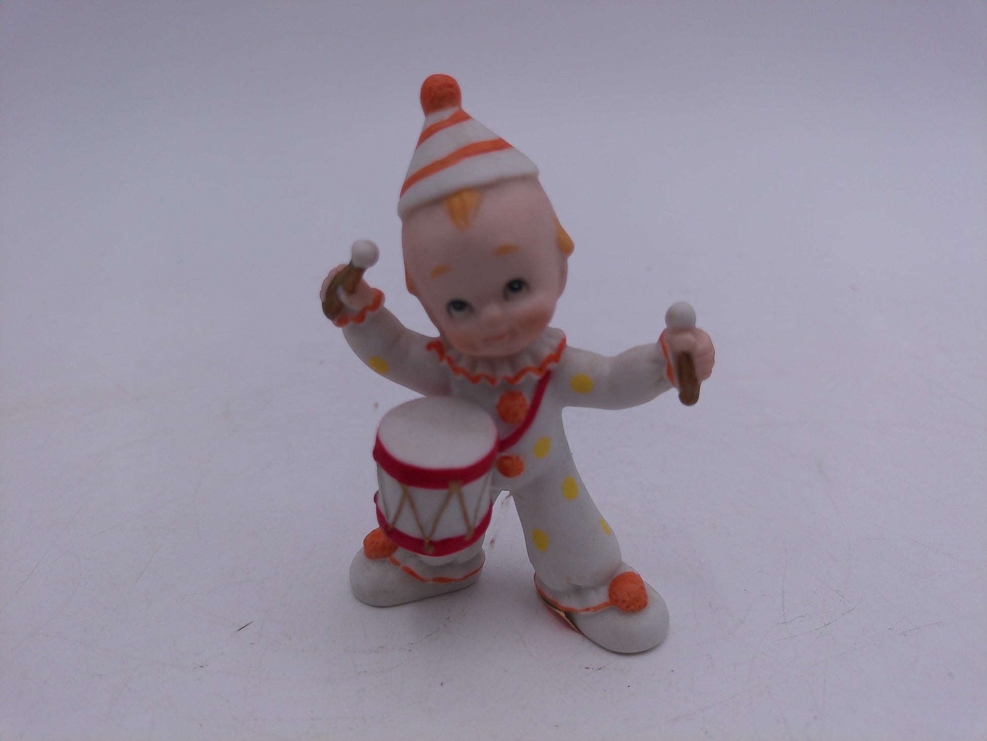Lefton Trio of Small Musical Clown Figurines with a Guitar a Drum and a Trumpet