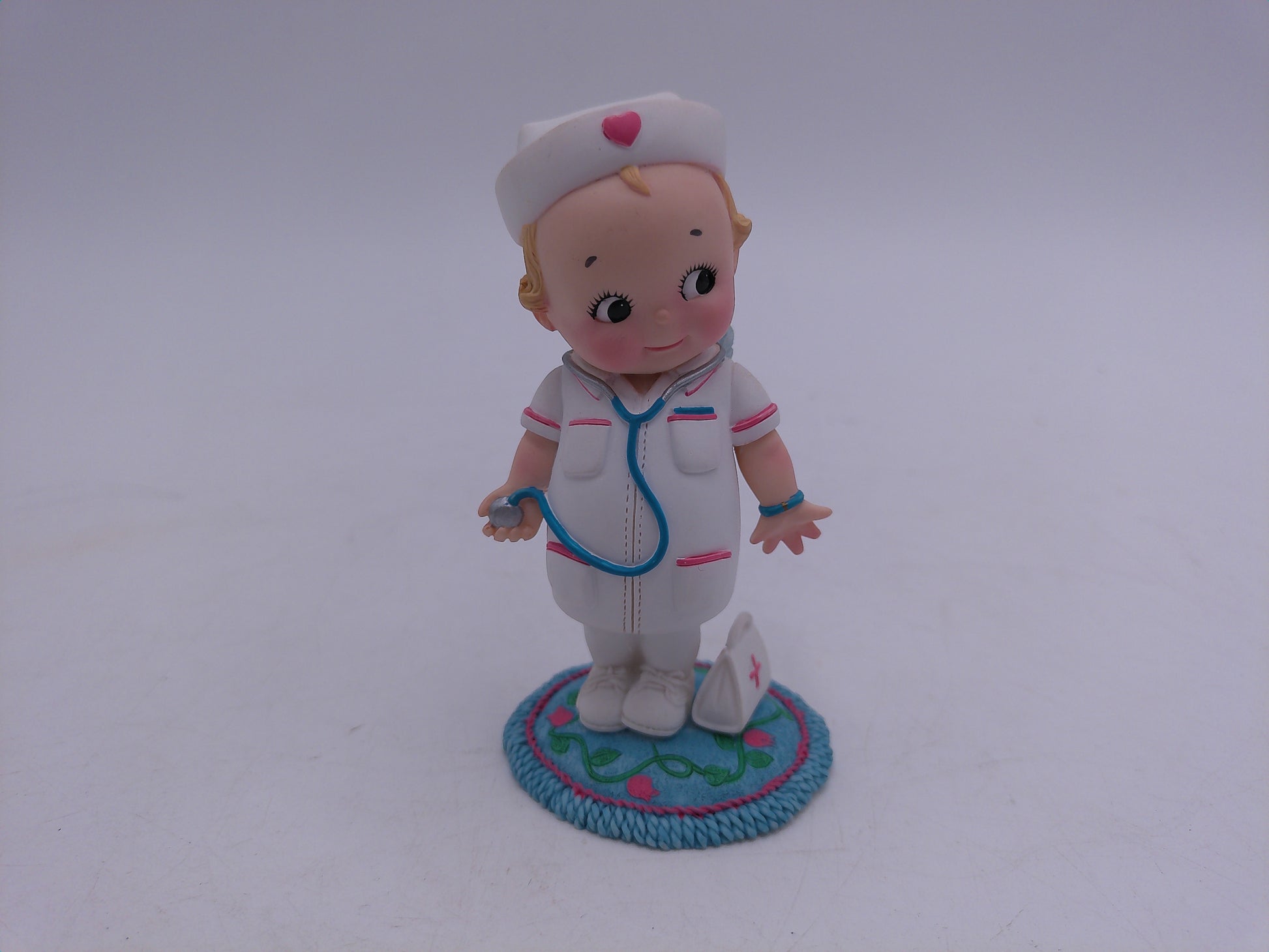 Kewpie Angel of Mercy Doll, from the Healing of Hearts Collection, embodies 5 charming collectible dolls. Each doll represents a unique form of healing with guardian angel qualities. Limited edition immortalizes prayer with sweet charity.