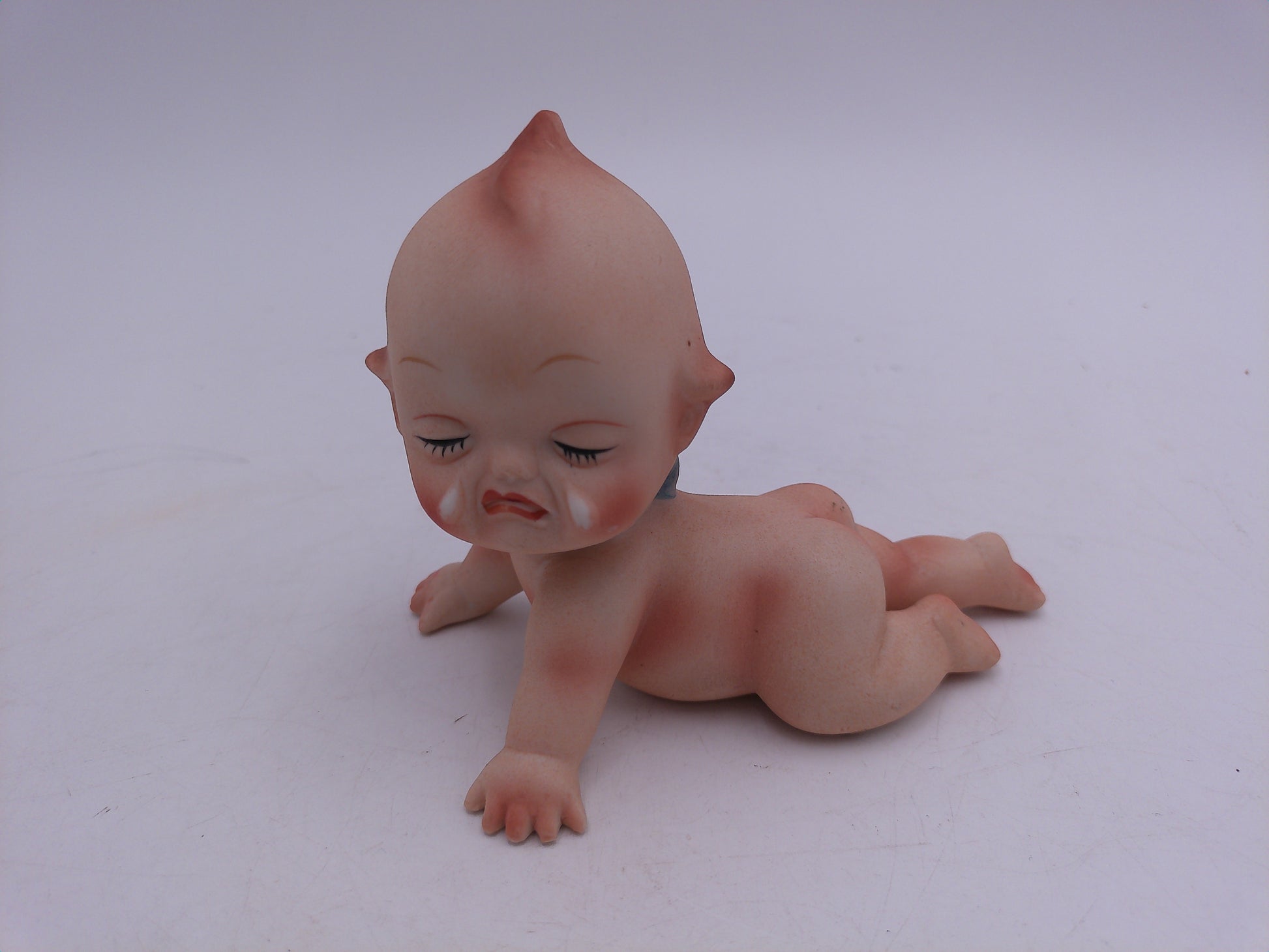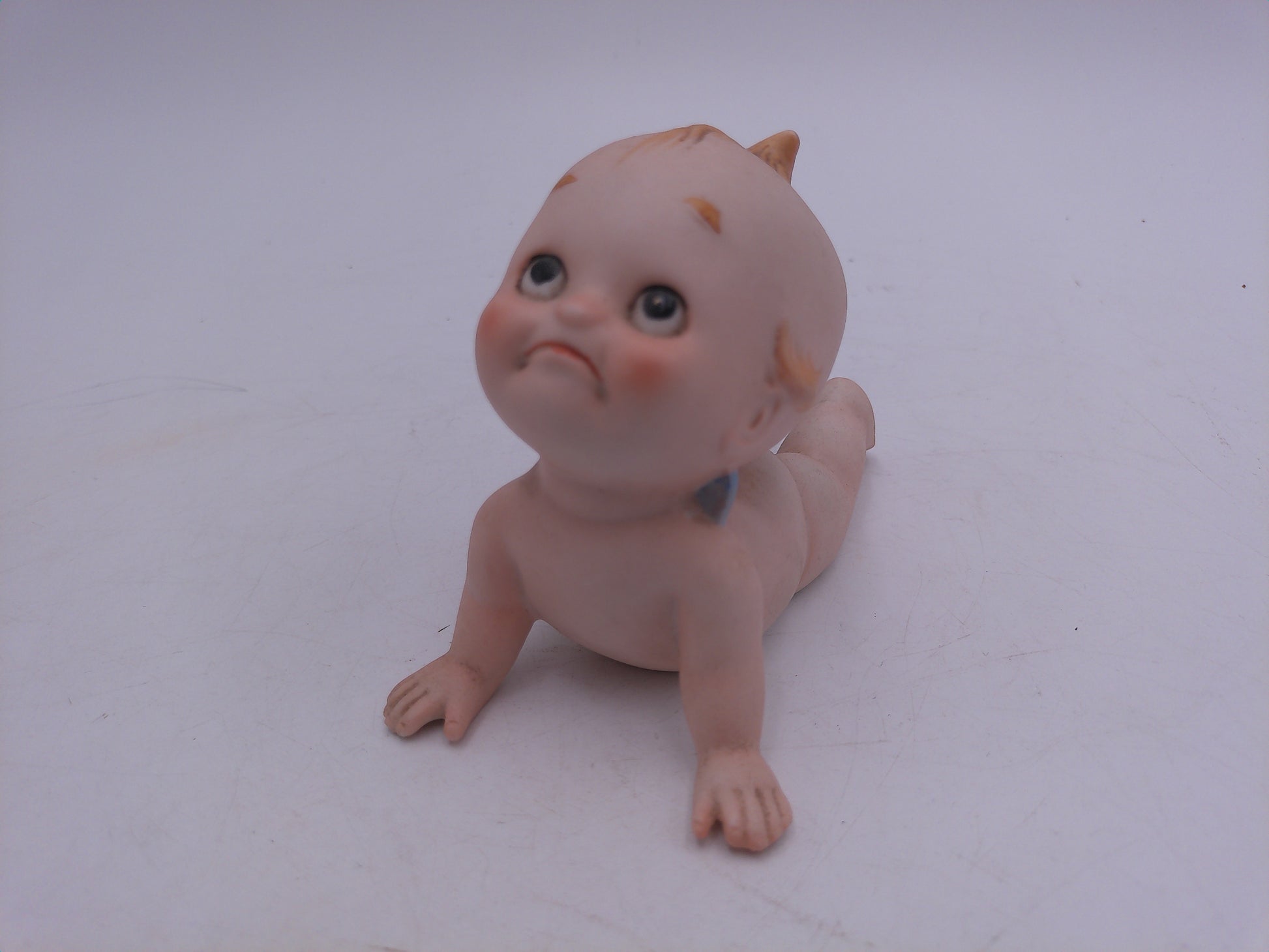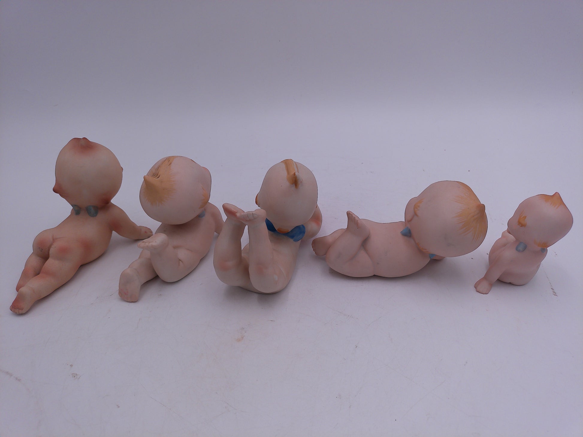 Add charm and nostalgia to your collection with this set of 5 Kewpie bisque doll figurines. Each figurine features a unique expression, from winking to pouting, all designed by Rosie O'Neil. With a large heart accent, these figurines are a delightful addition to any display.