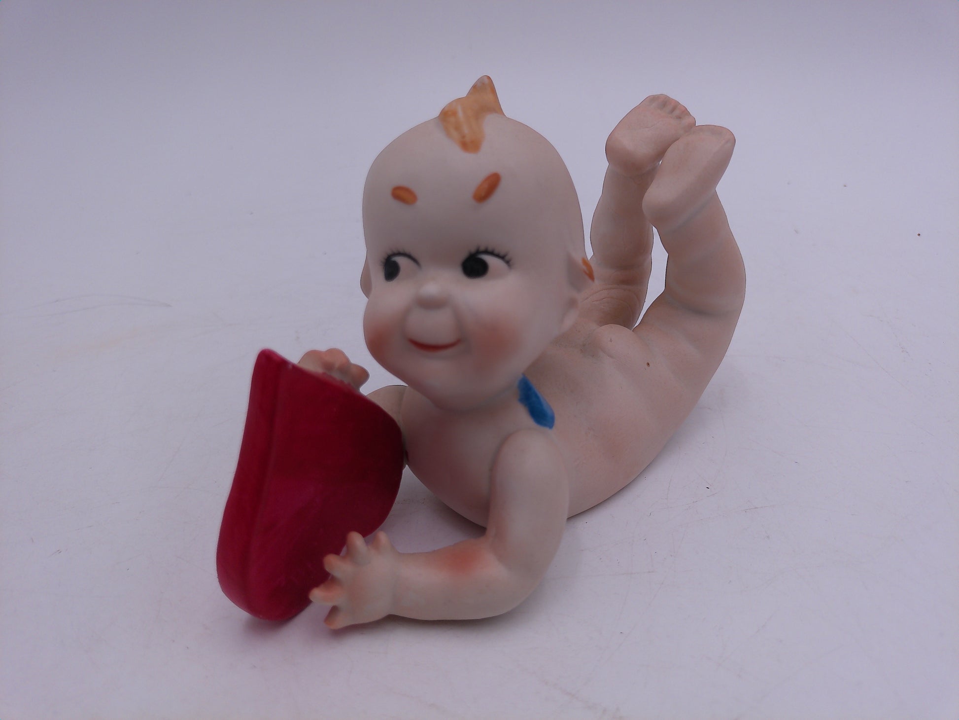 Kewpie Bisque Doll Figurine Lot of 5 Winking Large Heart Pouting Rosie O'Neil Bisque