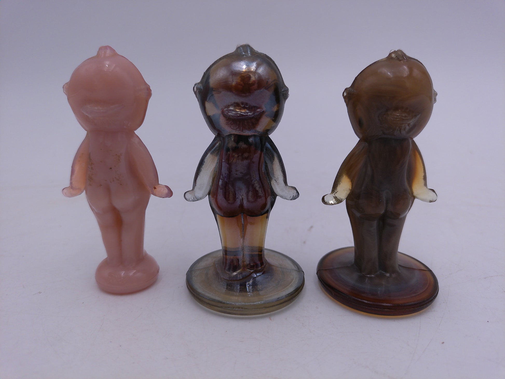 Kewpie Doll Glass Amethyst Slag Naked Baby Miniature Vintage 3" Figurine Lor of 3