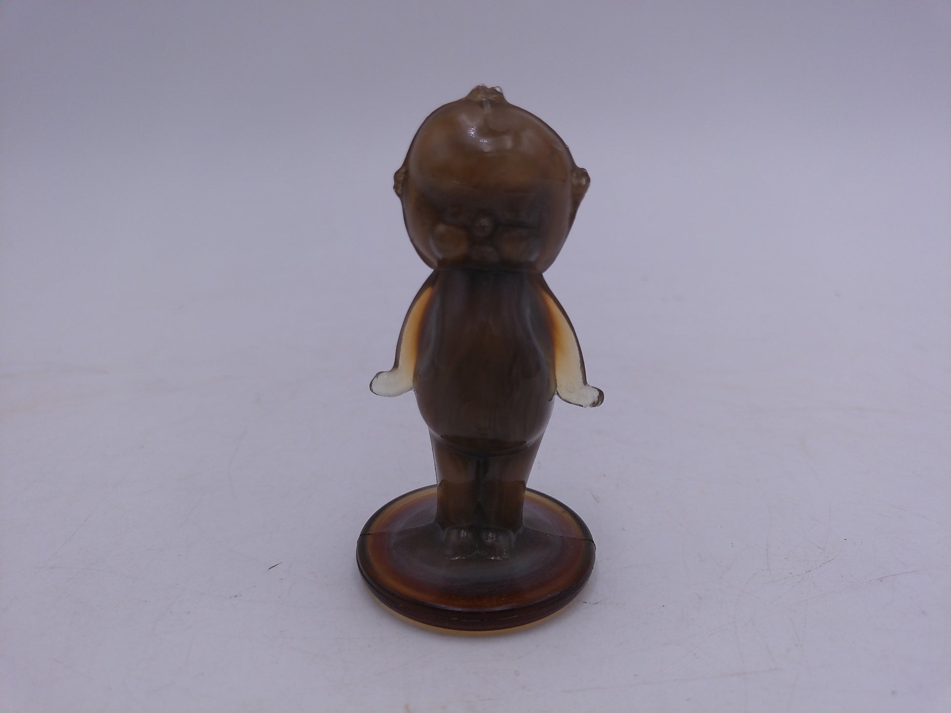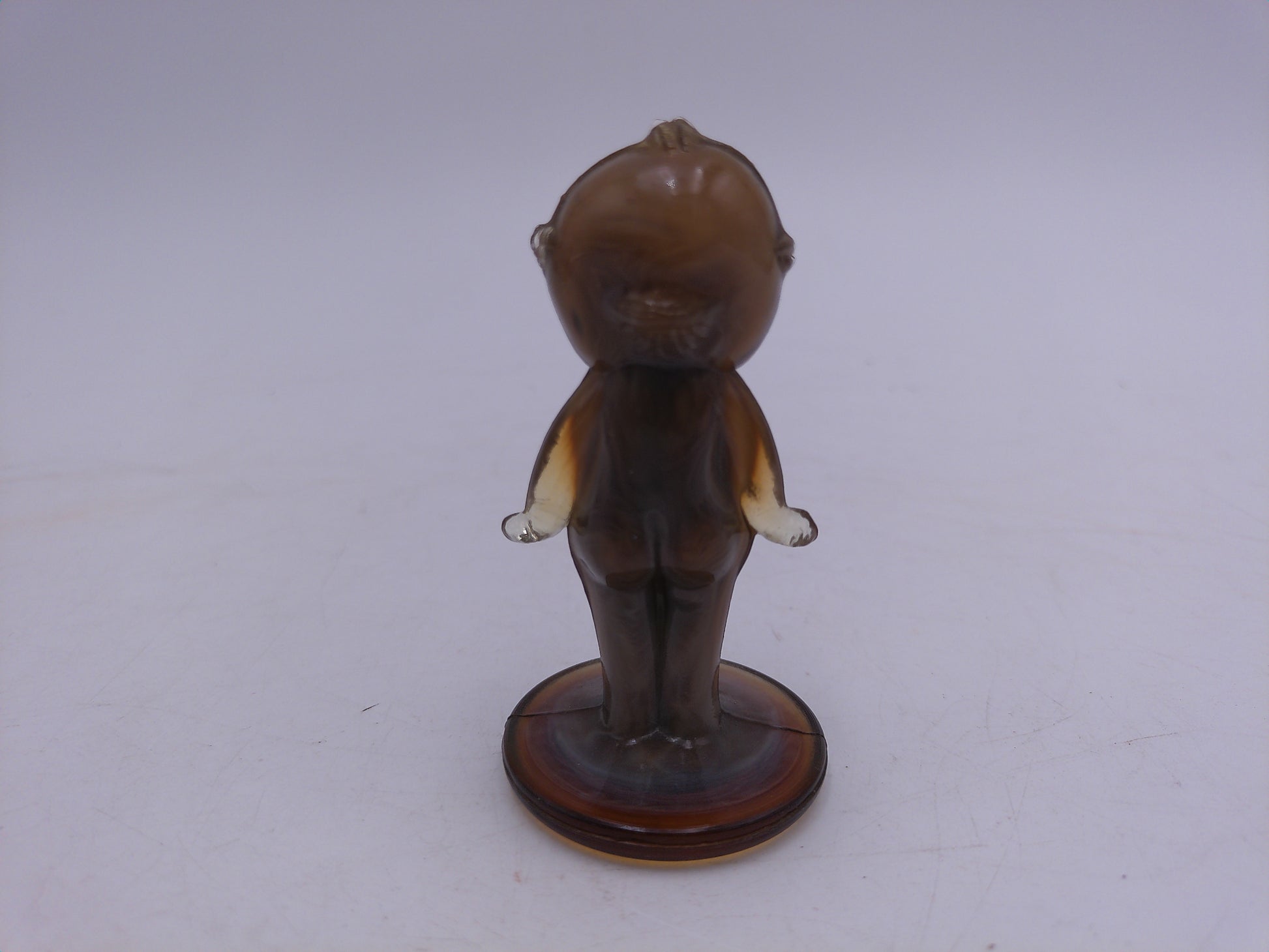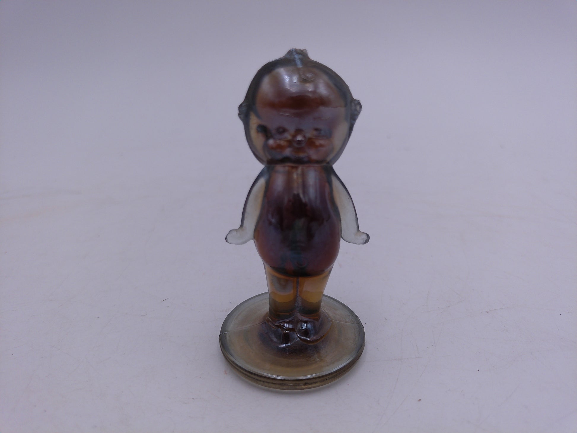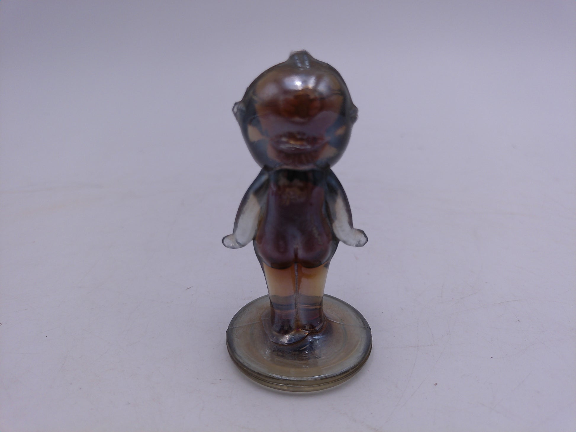 Add a vintage touch to your collection with this set of 3 adorable Kewpie Doll Glass Amethyst Slag Naked Baby Miniatures. Each measuring 3" in height, these retro figurines are made of high-quality glass and feature a stunning amethyst slag color. Perfect for display or as unique gifts.