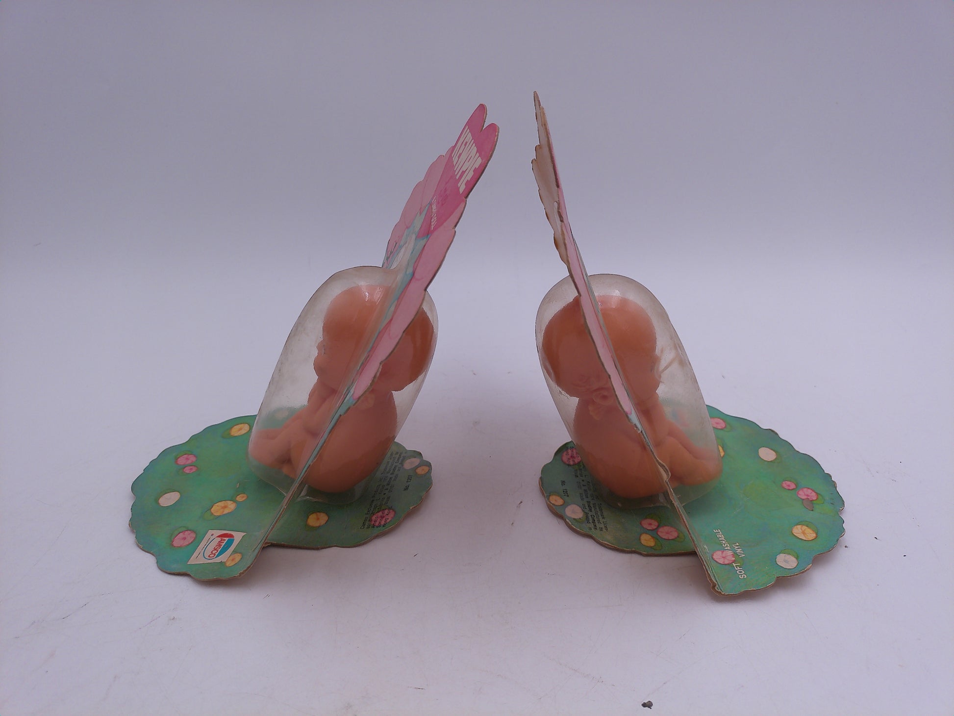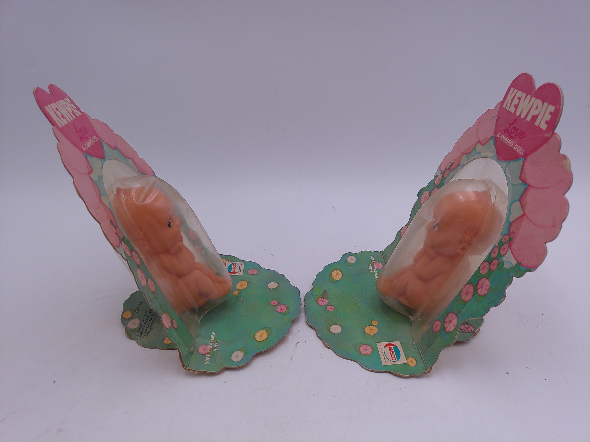 Experience the charm and whimsy of these collectible Kewpie Dolls. This lot of two includes the original package and the iconic Kewpie Thinker, designed by the renowned artist Rose O'Neill. Perfect for collectors or as a unique gift, these dolls are a must-have for any Kewpie fan.