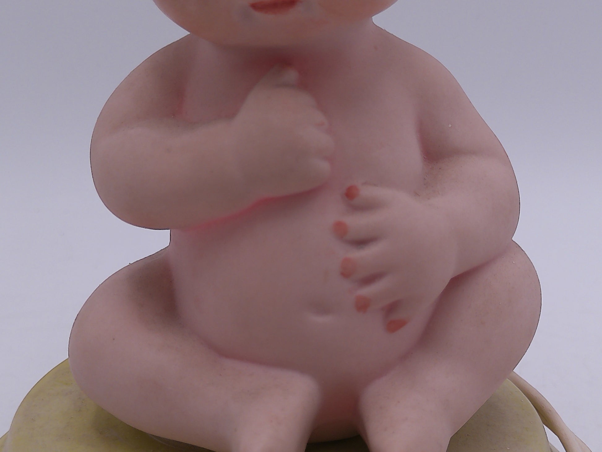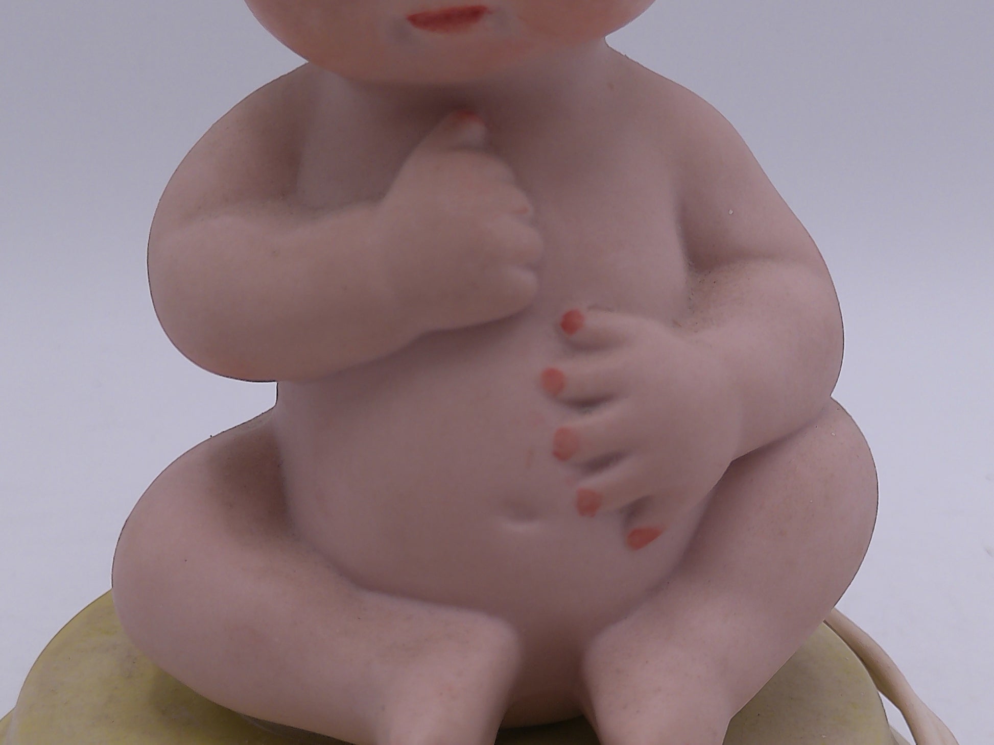 Add a vintage touch to your home decor with this Kewpie Doll Table Top Lamp. Made of bisque works, this lamp features a unique design that is sure to catch the eye. Perfect for illuminating a small space or as a collector's item.