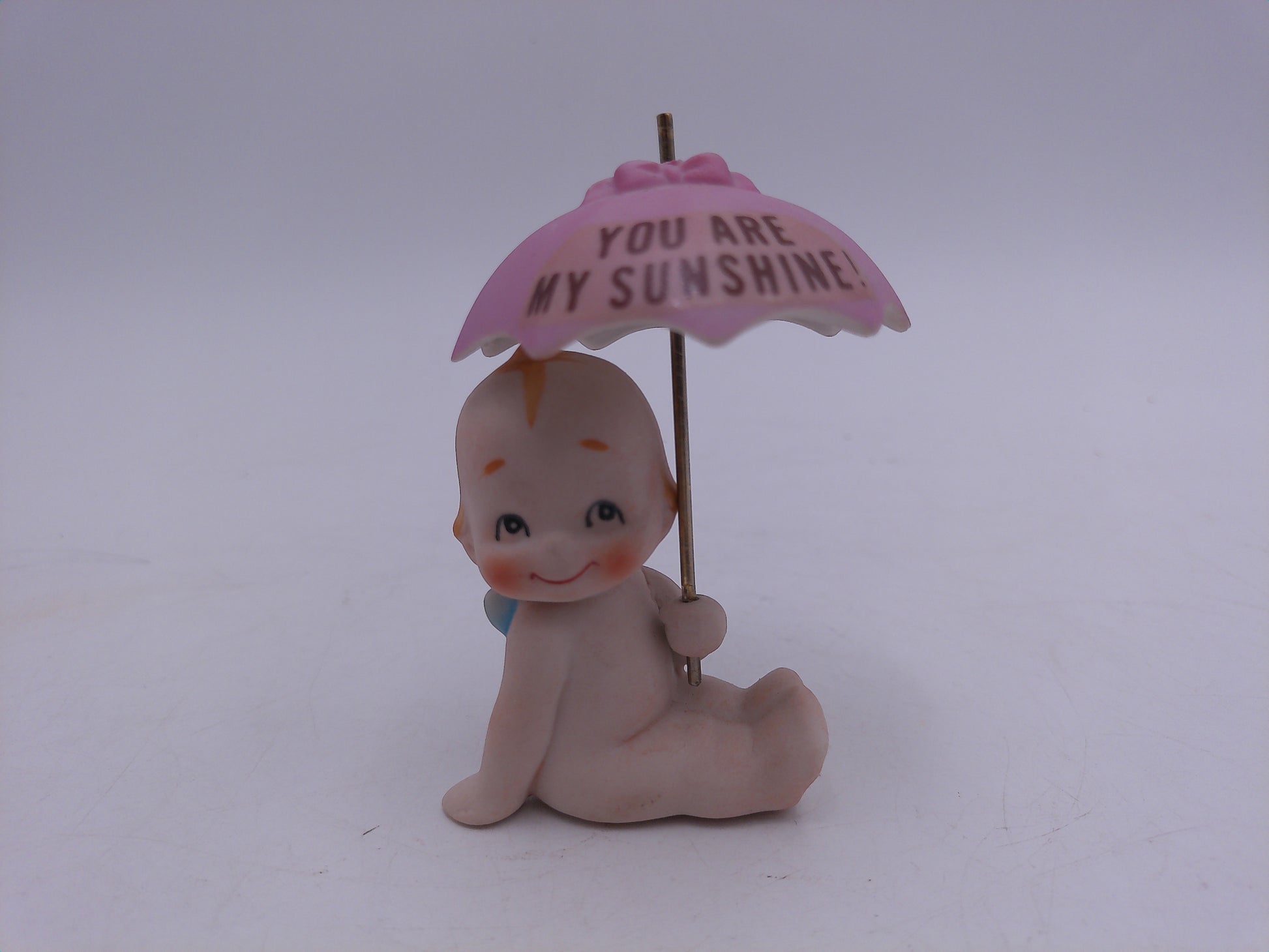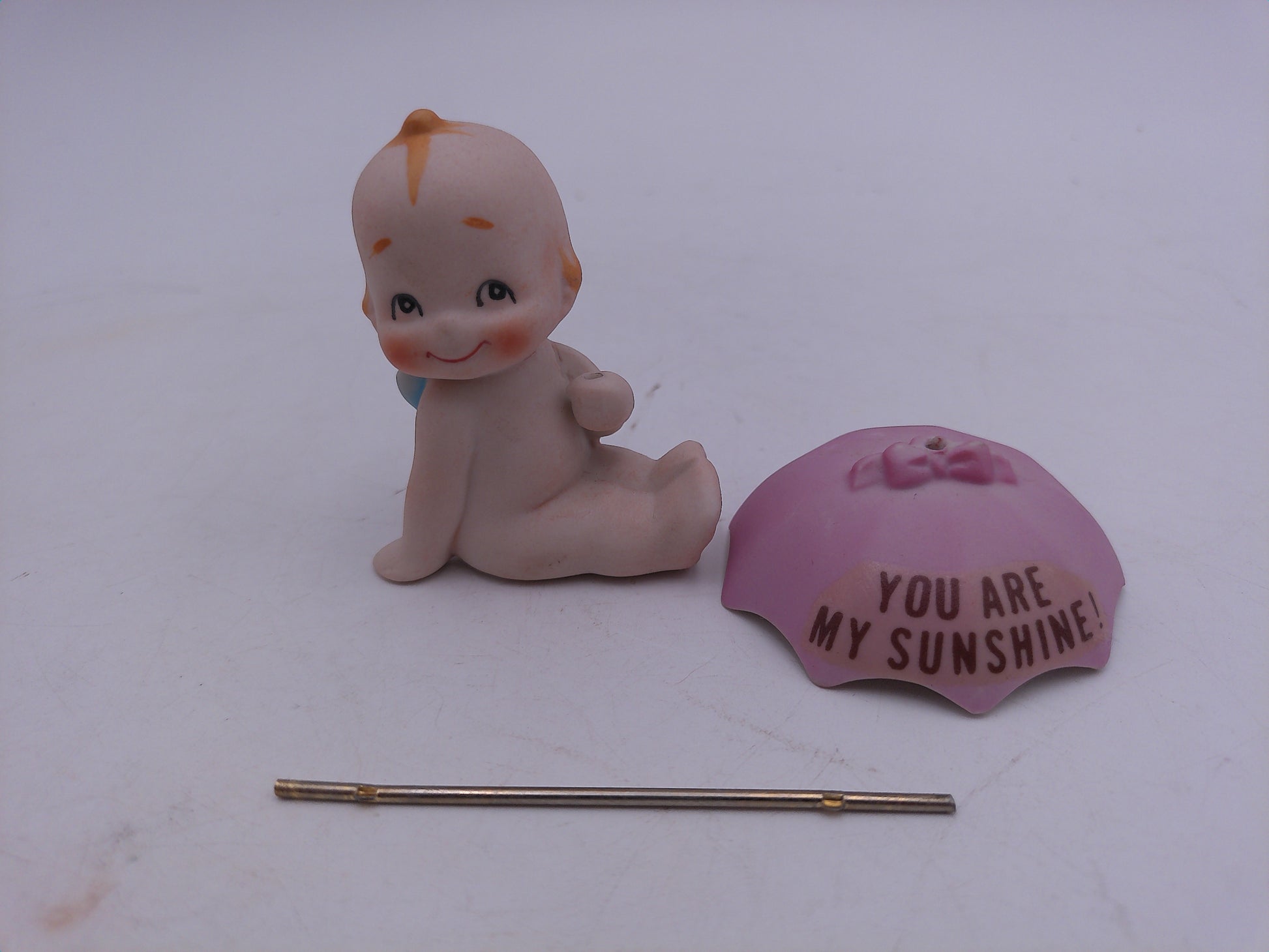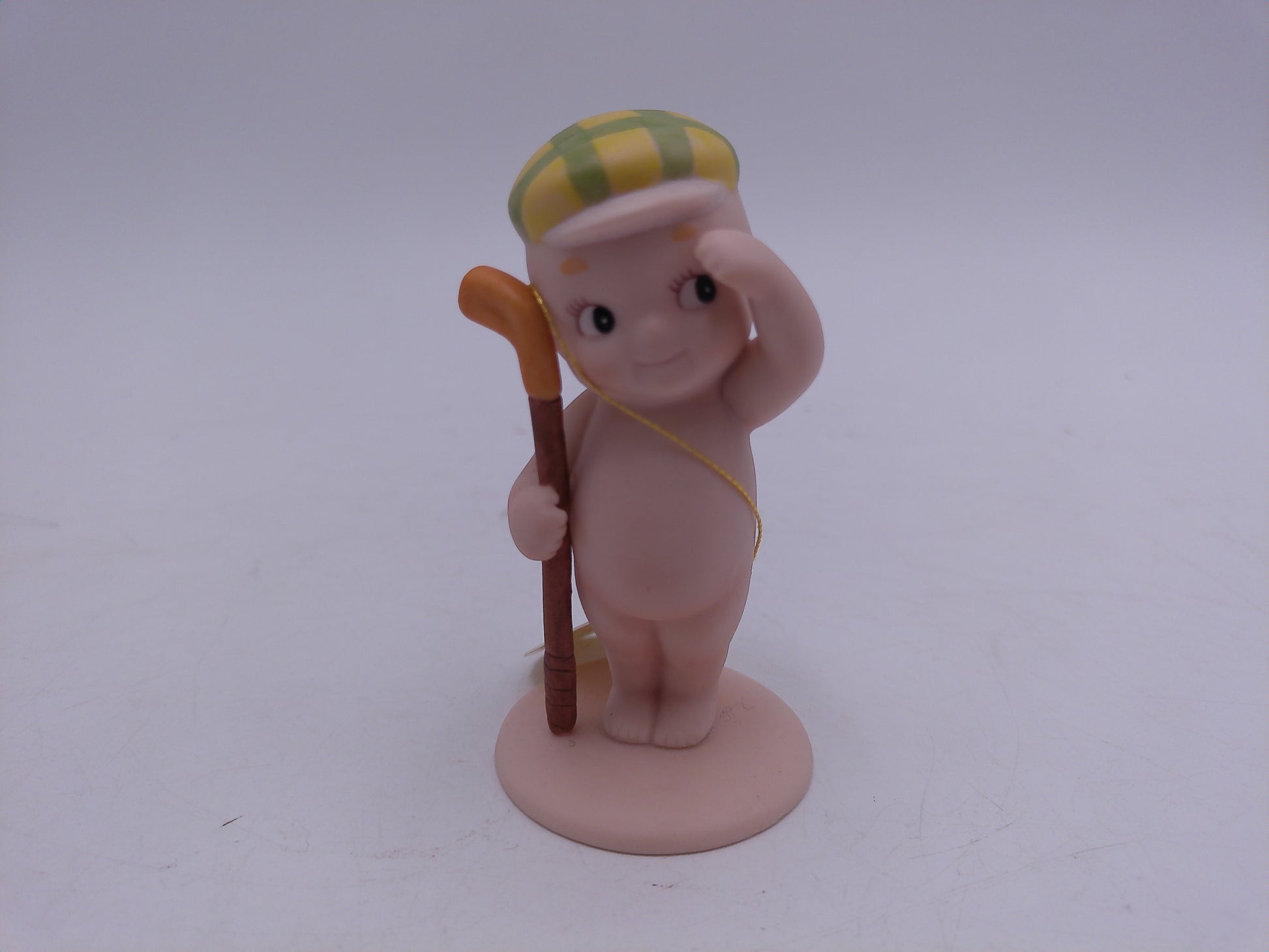 The Kewpie Golfer and Umbrella with sign You Are My Sunshine is a charming and playful addition to any collection or as a gift. With intricate details and a sweet message, it is sure to bring joy to any room. Made with high-quality materials for lasting enjoyment.