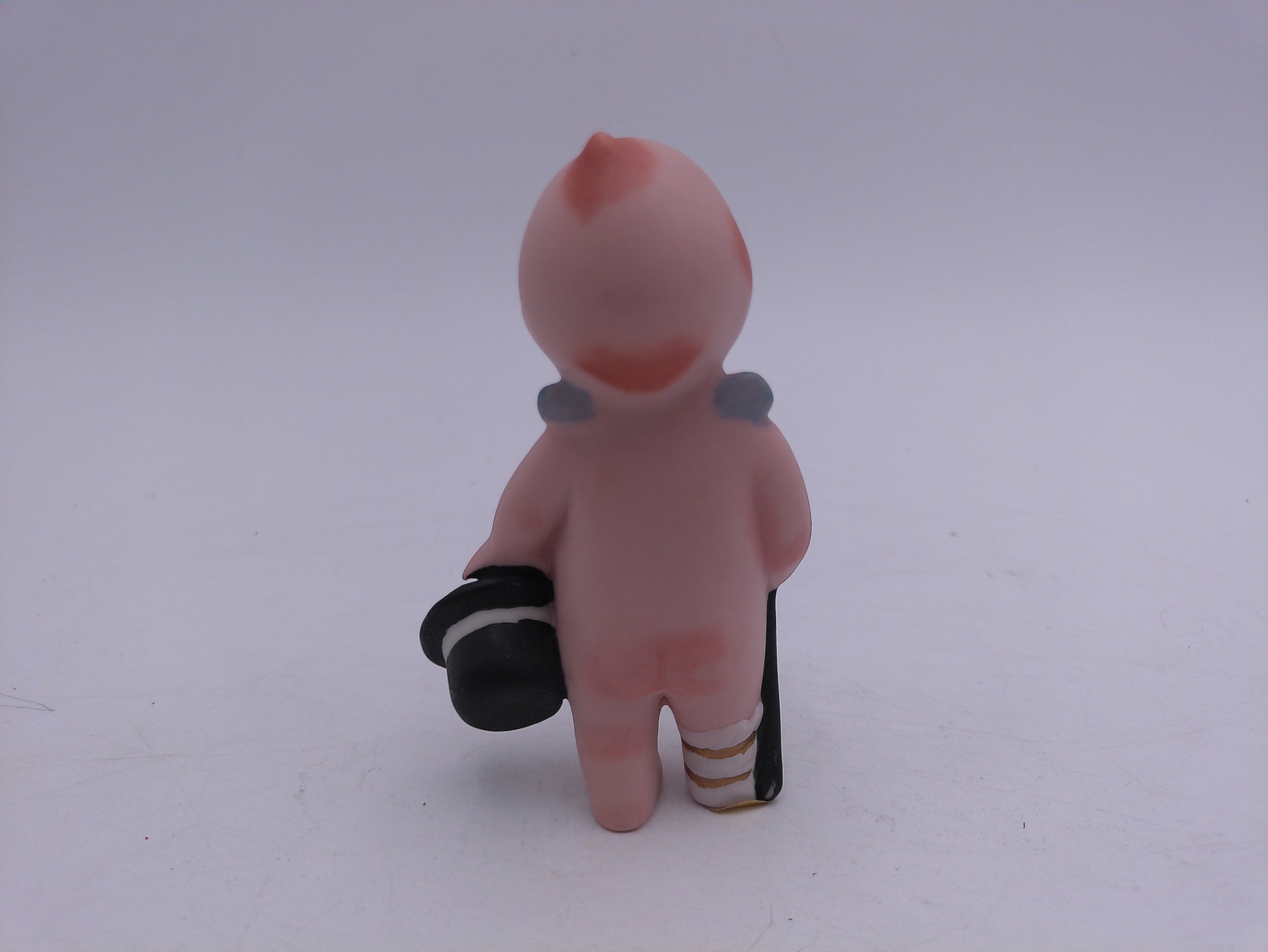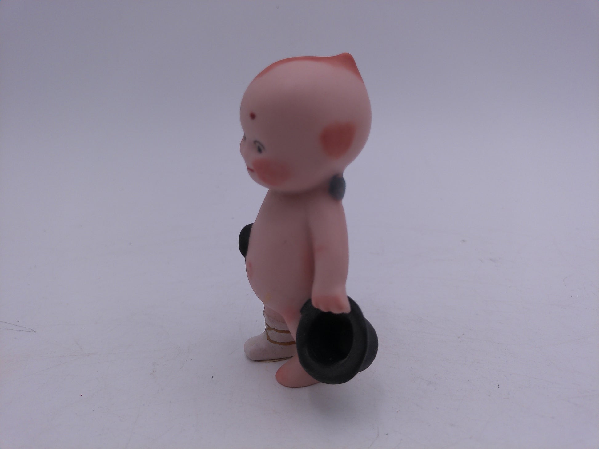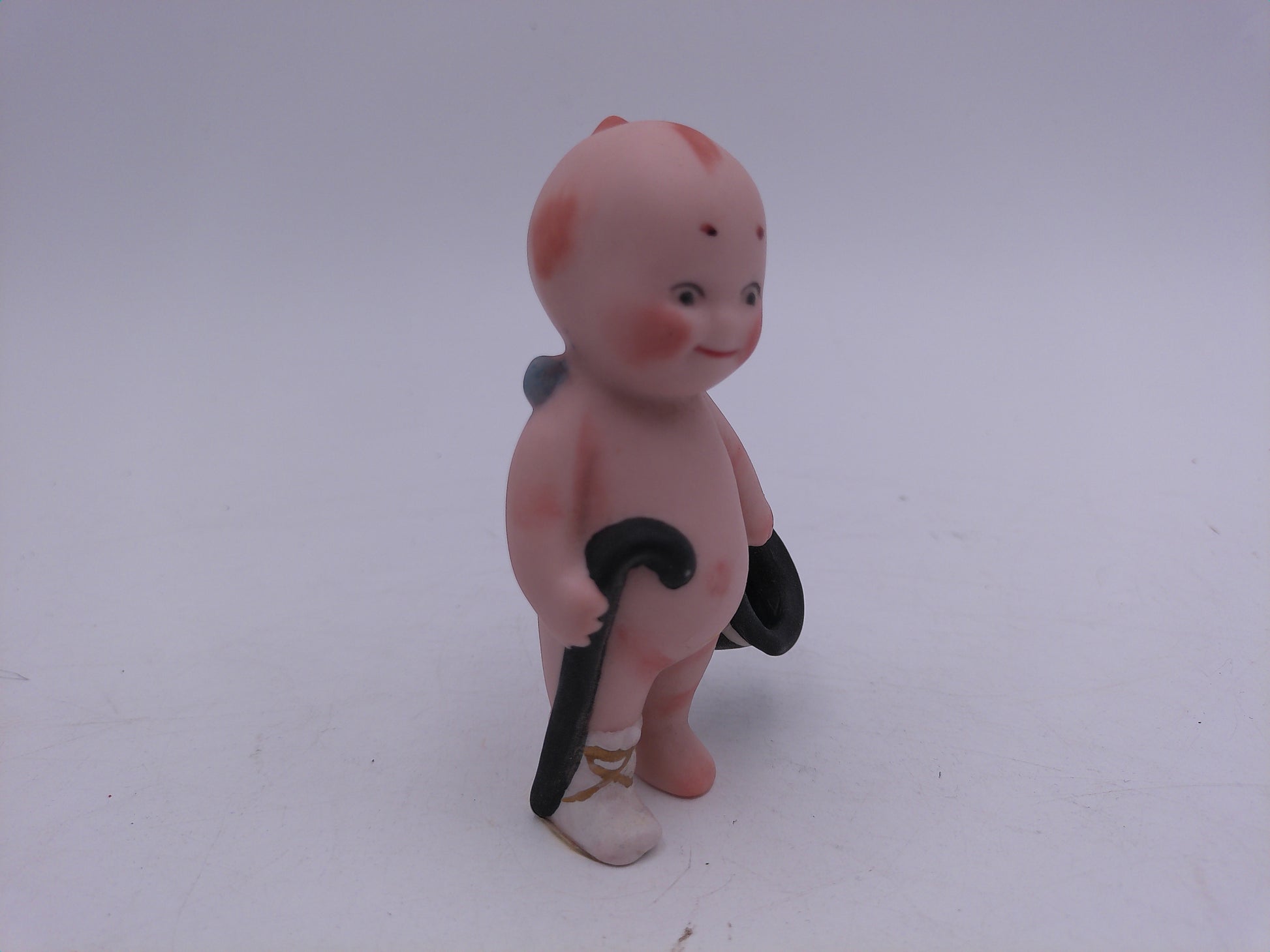 This limited edition Kewpie figurine features a charming design of a Kewpie holding a sleek black top hat and cane. A rare addition to any collection, this figurine showcases intricate details and expert craftsmanship. A must-have for Kewpie enthusiasts and collectors.