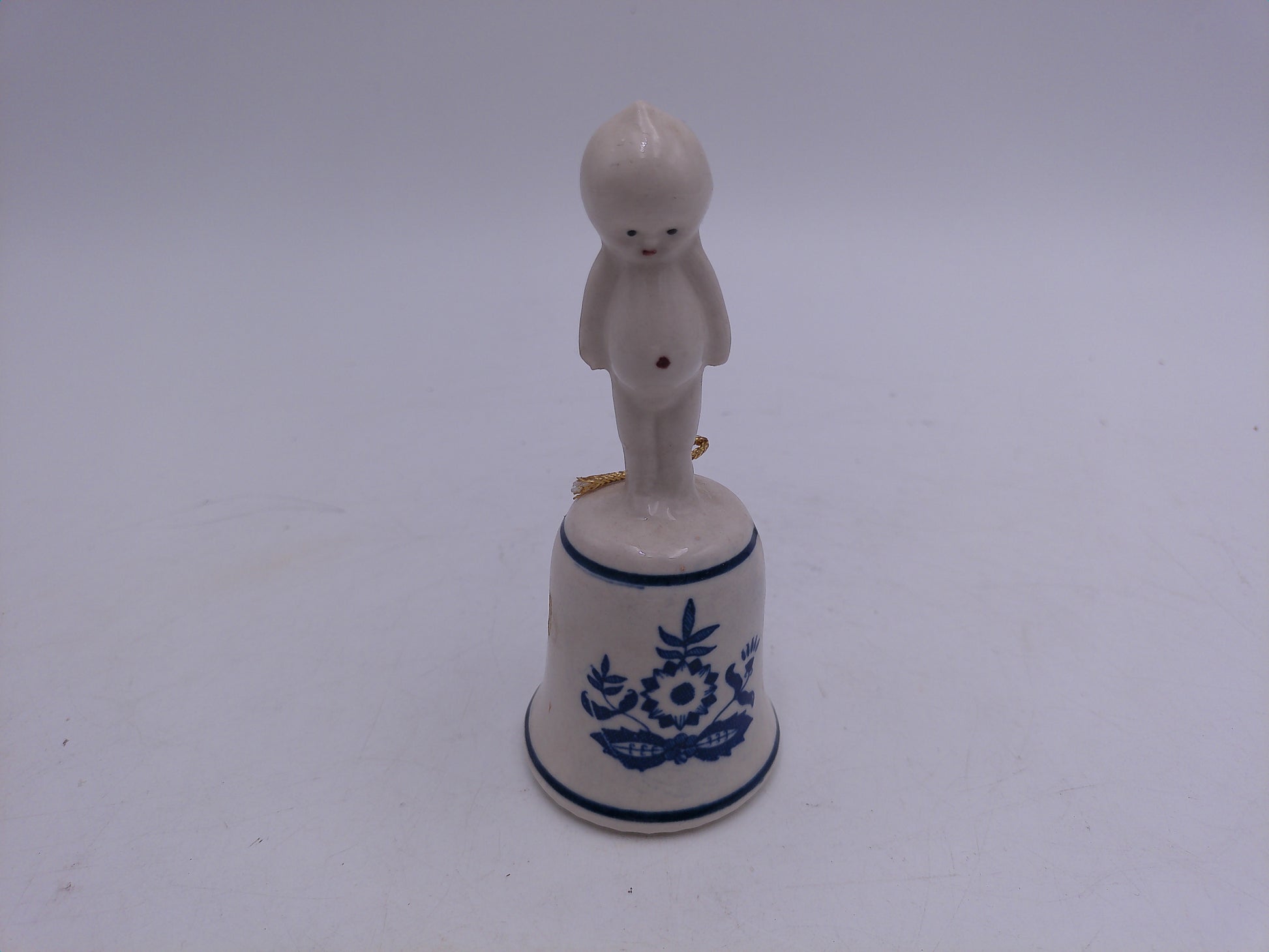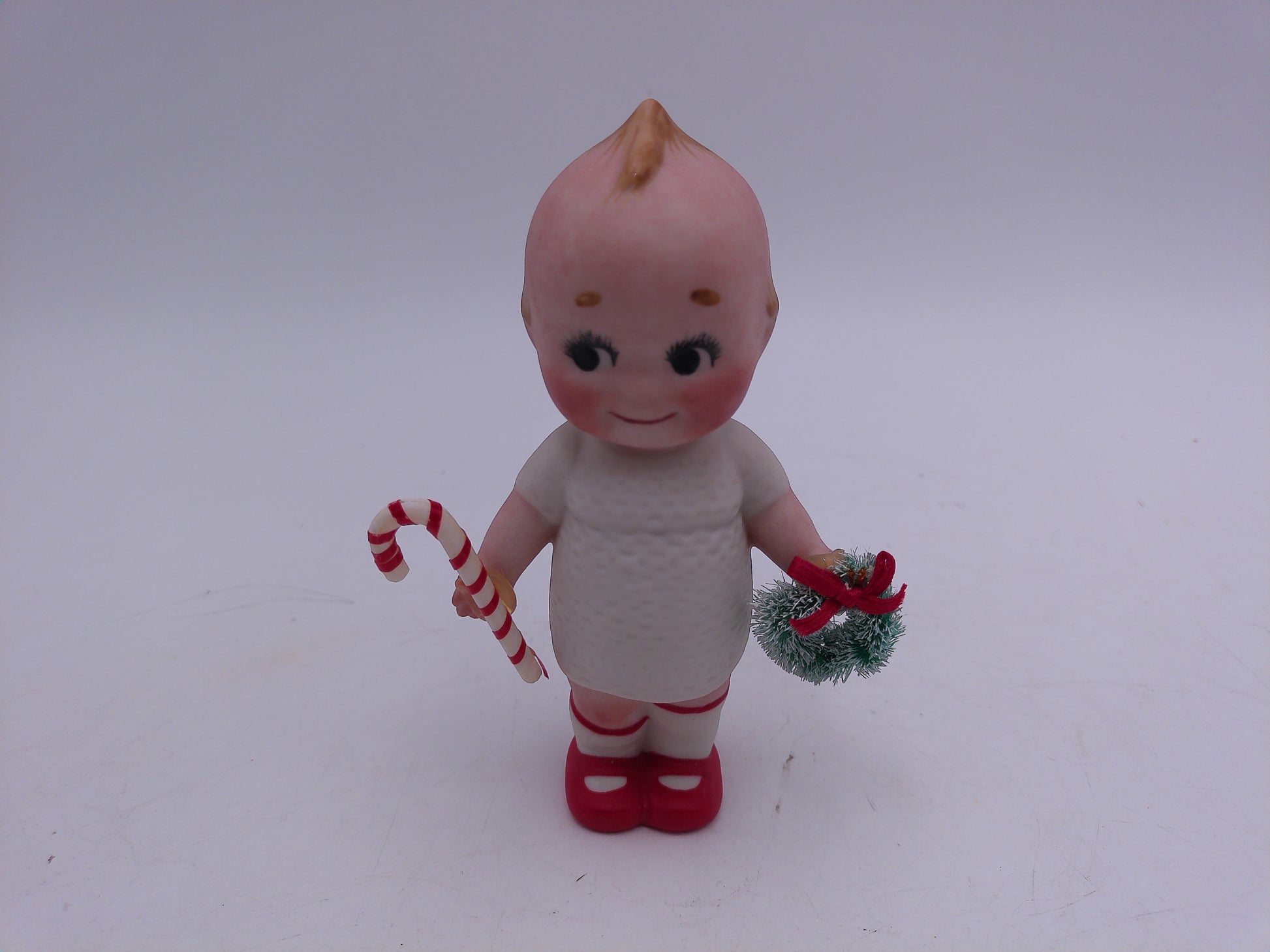 This set of 6 Kewpie dolls adds a festive touch to your holiday decor. Each doll is beautifully crafted, on top of a hand bell and adorned with intricate flower designs. Perfect for collectors or as a unique gift to celebrate the season.