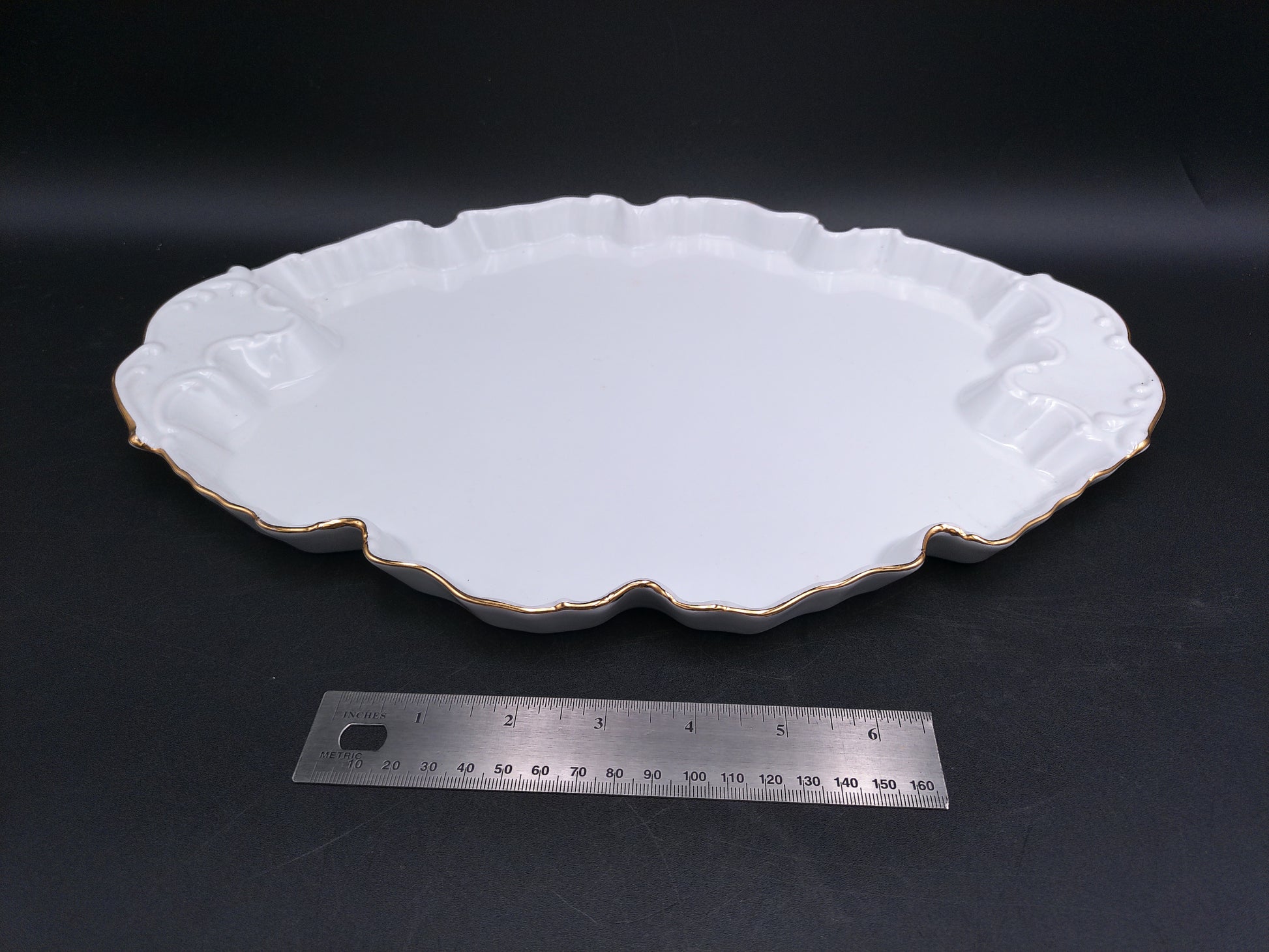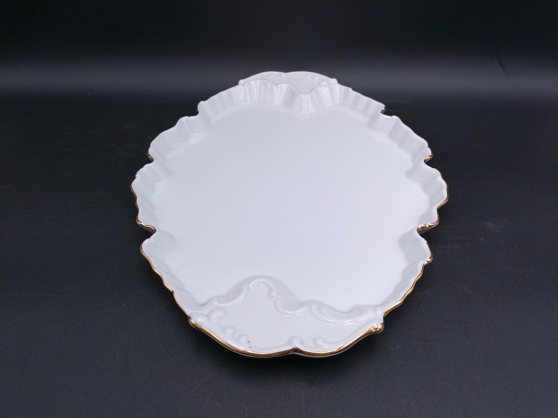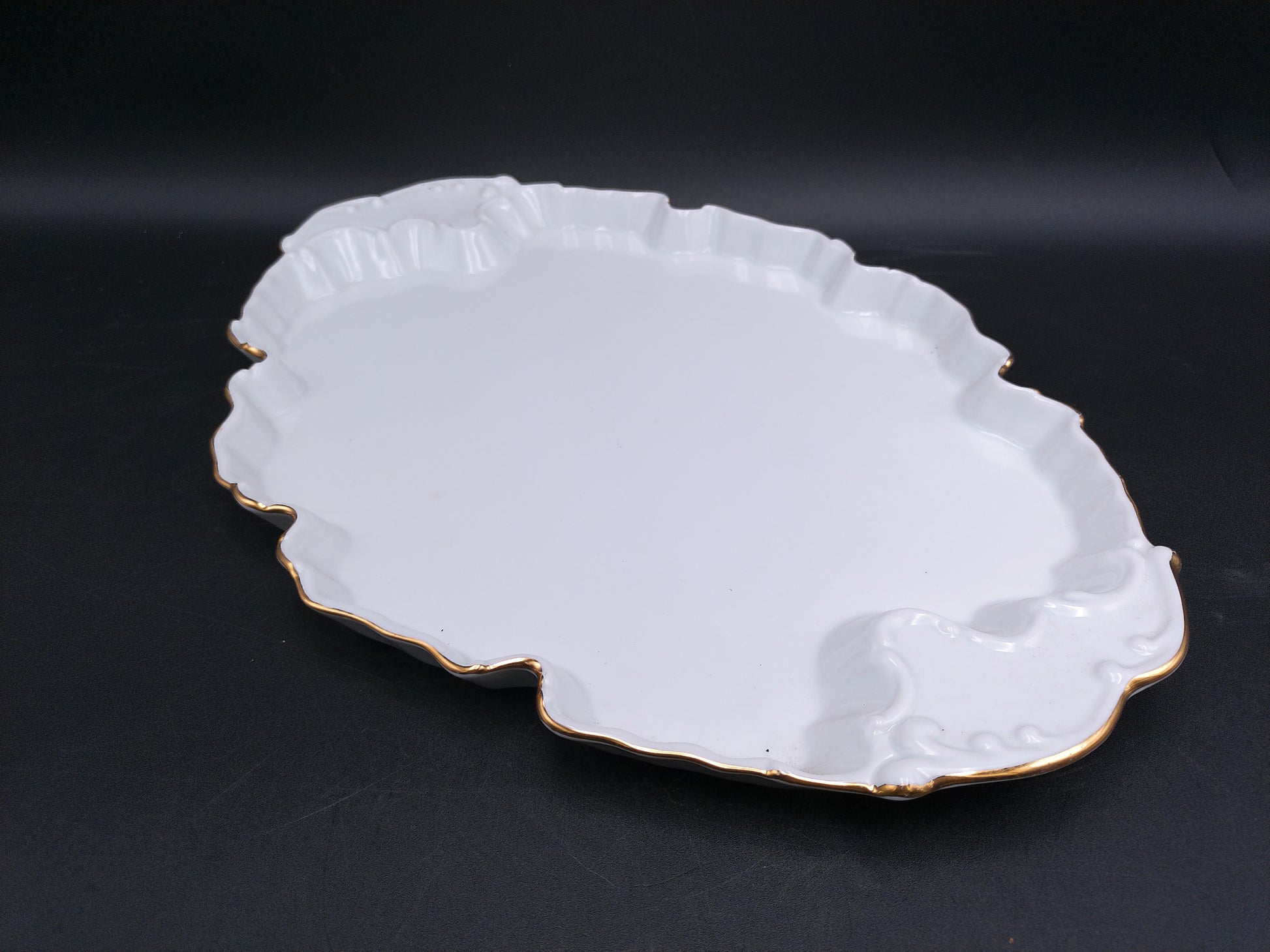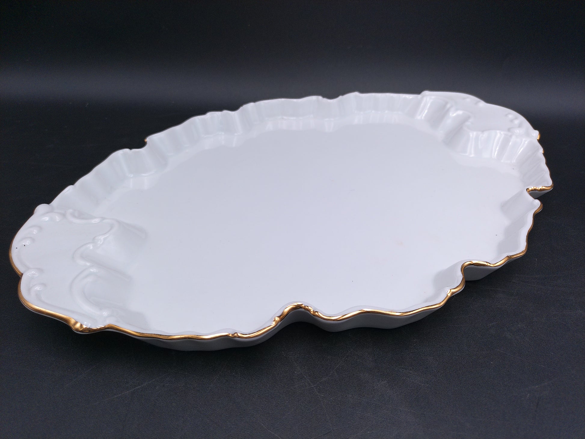 Poreclain Dish Serving Tray with Gold Plated Rim by Haas and Czjzek From Czech Republic