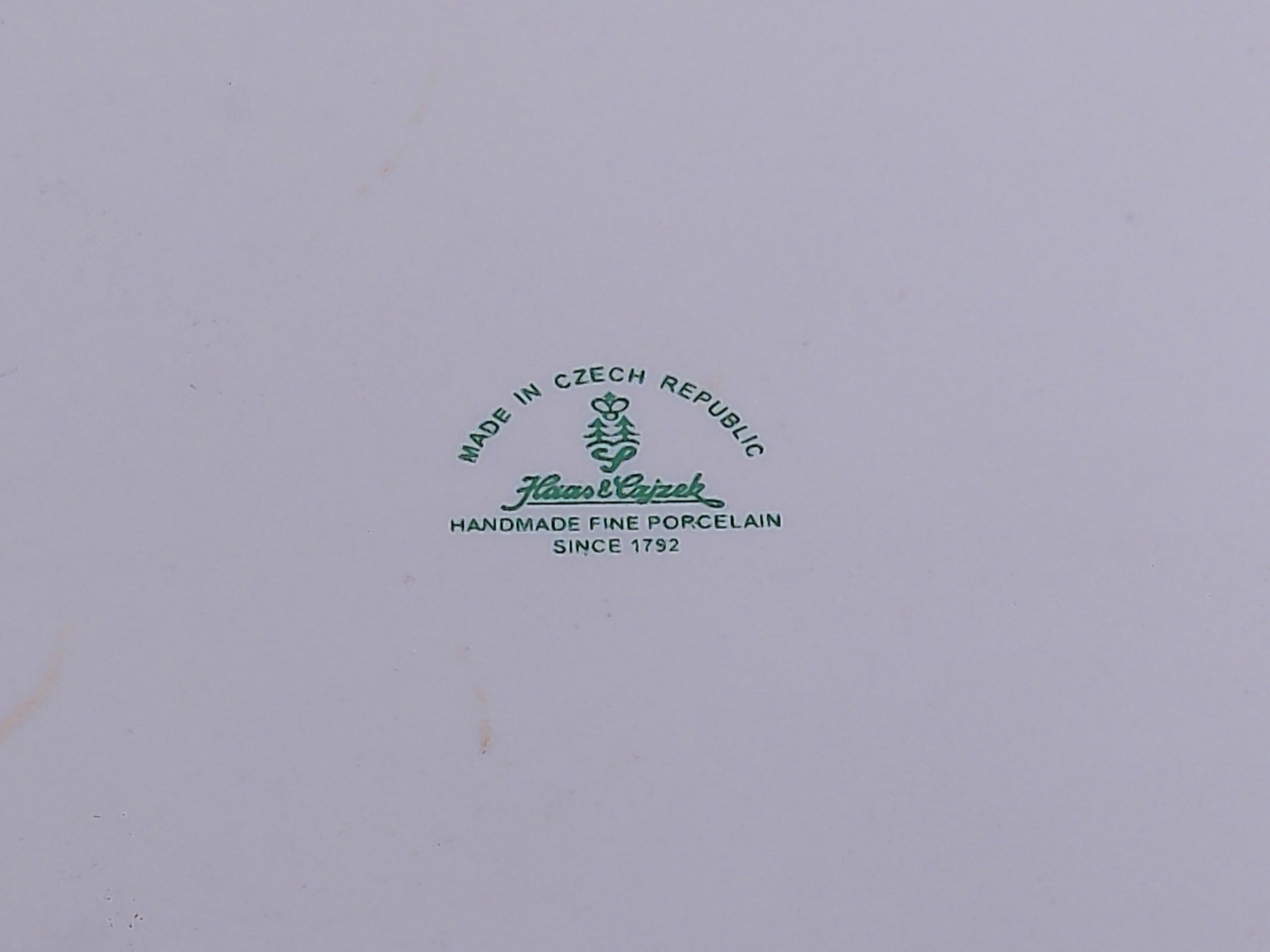 Elevate your dining experience with our Poreclain Dish Serving Tray from Czech brand Haas and Czjzek. Made from high-quality porcelain, this tray boasts a luxurious gold-plated rim, adding a touch of sophistication to any table setting. Made in Czech Republic, it's a true piece of art for your home.