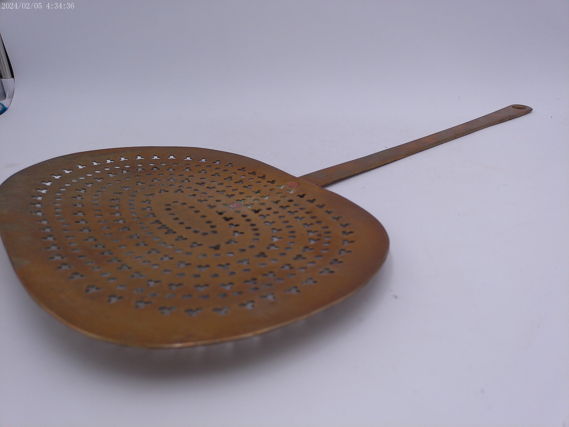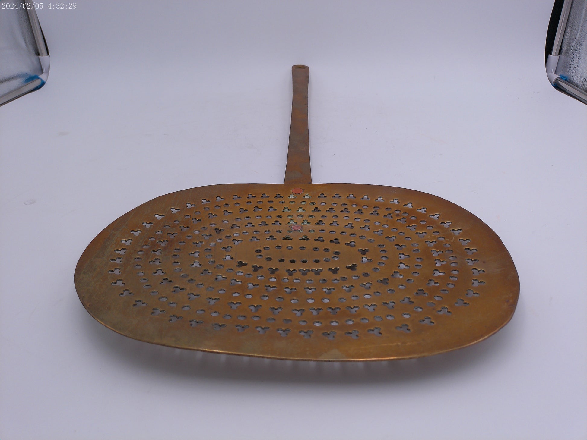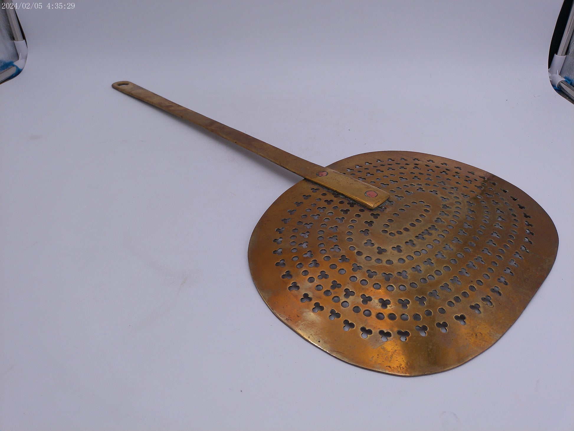 With a generous size of 23", this ladle skimmer is perfect for large pots and deep fryers. Made with high-quality vintage brass, it's a durable and stylish addition to your kitchen tools. Whether you're cooking for a crowd or just need a reliable kitchen utensil, this large brass ladle skimmer is sure to meet your needs.