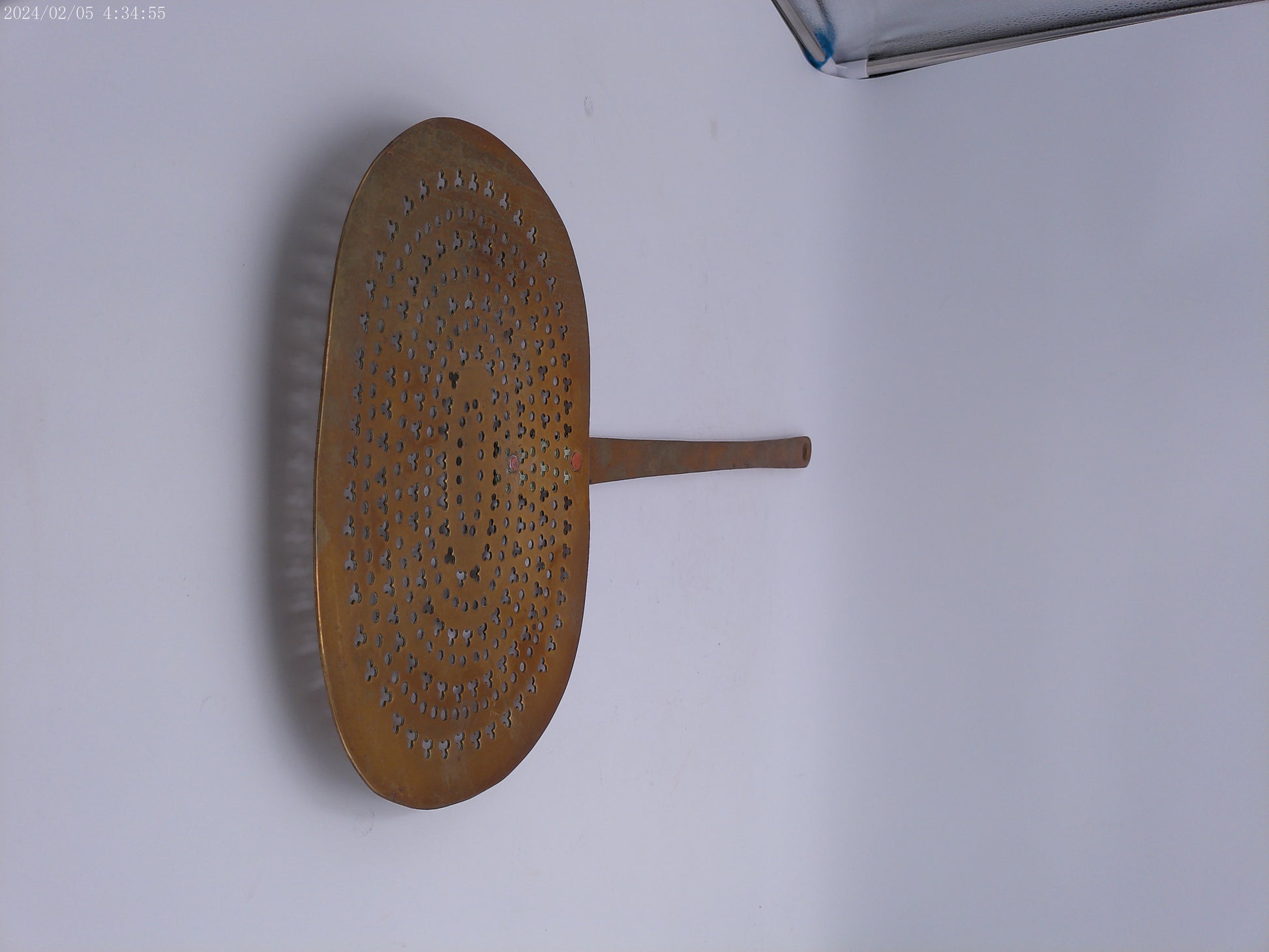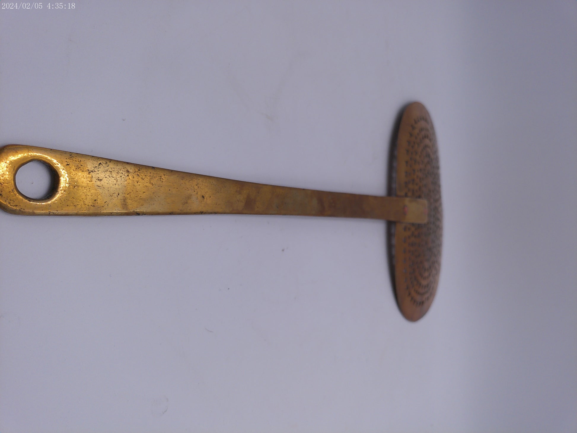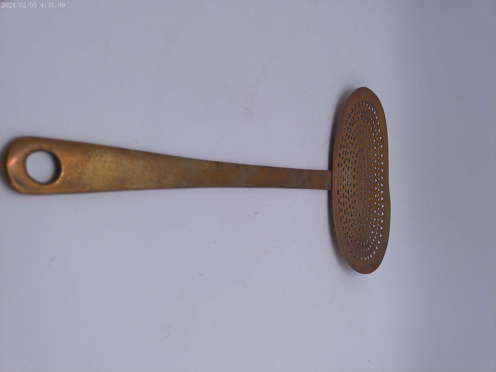 With a generous size of 23", this ladle skimmer is perfect for large pots and deep fryers. Made with high-quality vintage brass, it's a durable and stylish addition to your kitchen tools. Whether you're cooking for a crowd or just need a reliable kitchen utensil, this large brass ladle skimmer is sure to meet your needs.