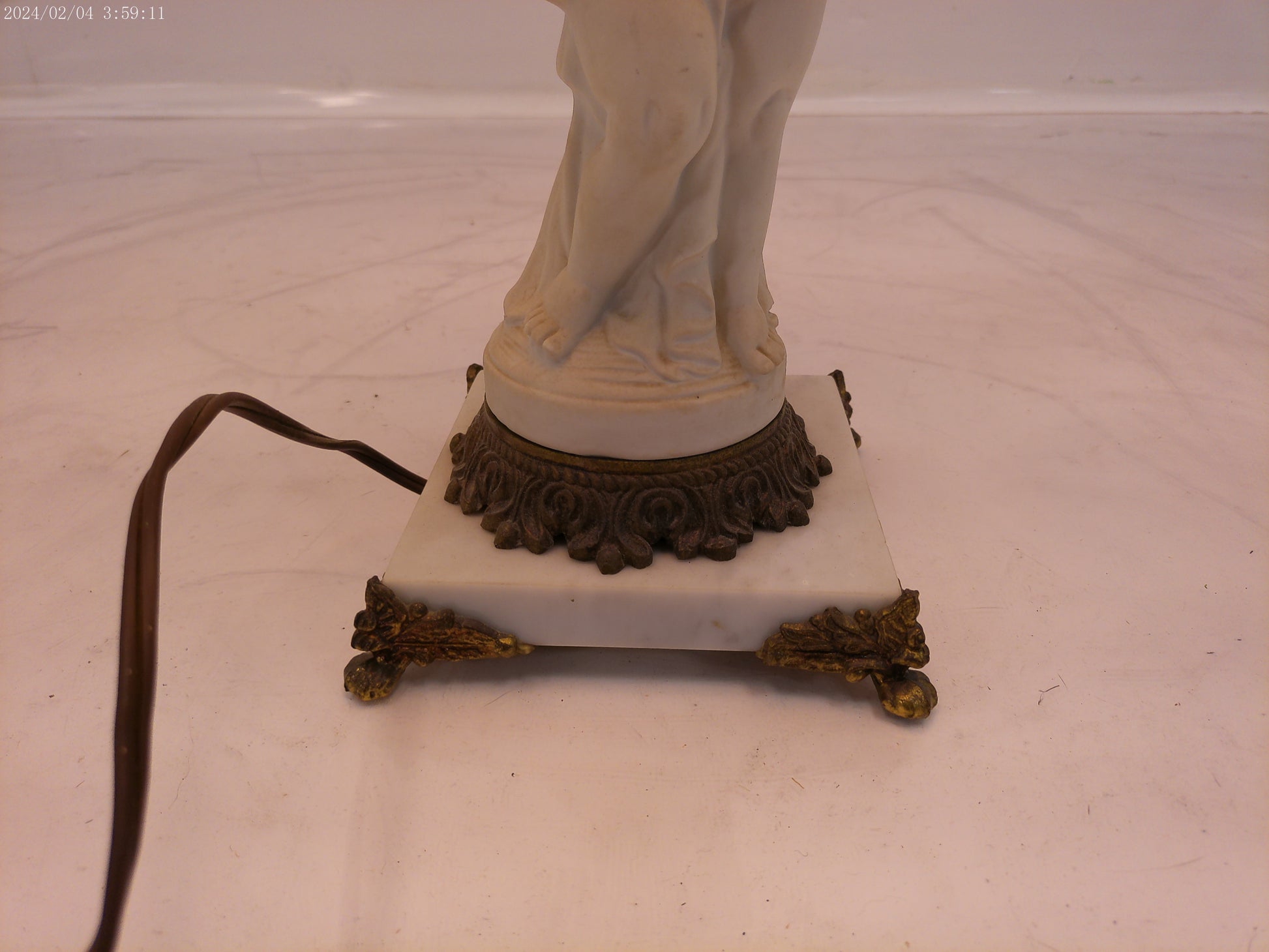 This stunning lamp is crafted with elegance and intricate detail, making it the perfect piece for any room in your home. Its unique design features a beautiful female figurine, adding a touch of sophistication and charm to any space.